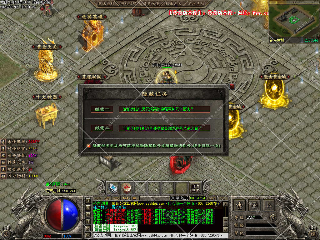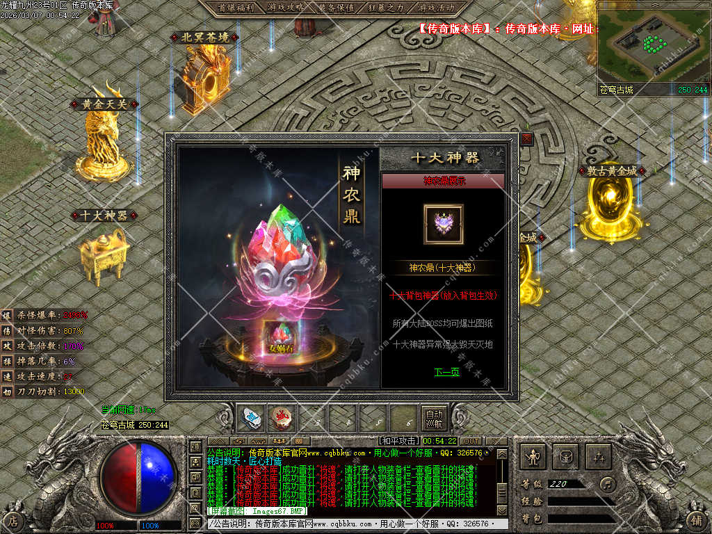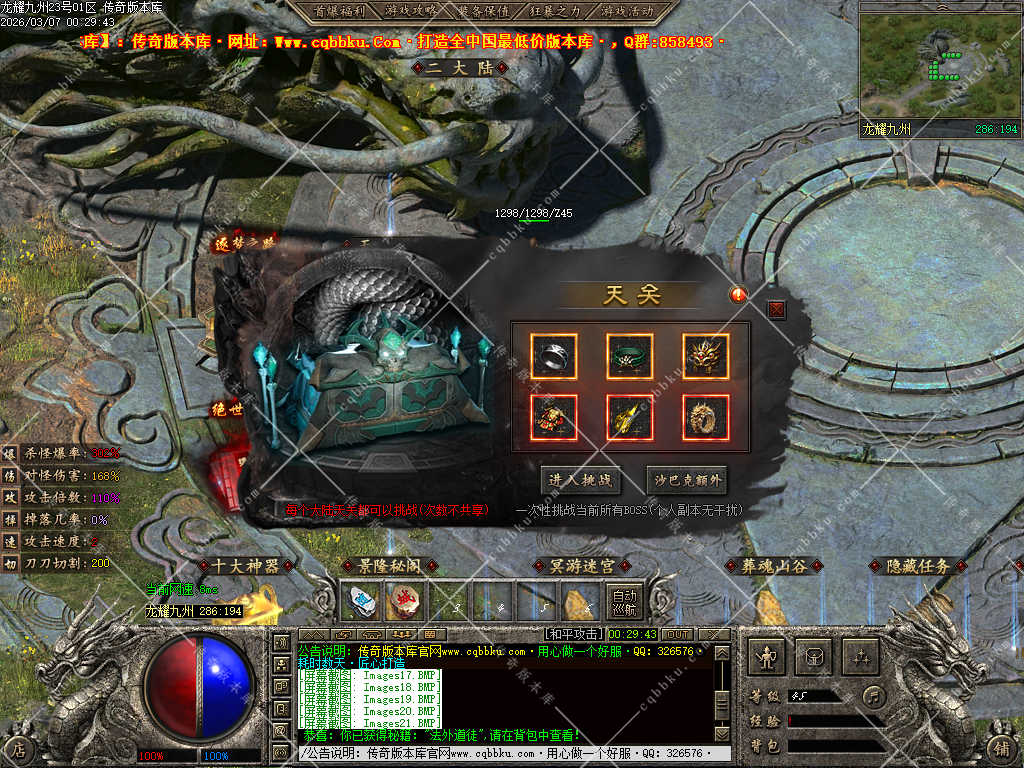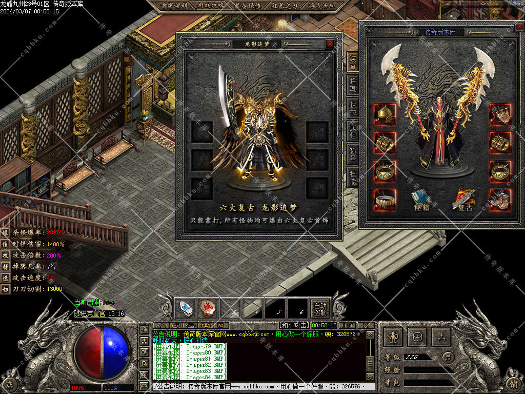 传奇版本库,传奇版本下载,传奇单机资源站,热门传奇版本库,热门传奇私服版本推荐-最全最新游戏版本下载基地 » 02-054独家龙耀九州专属神器正版创新攻速三职业服务端-带假人-自动回收-六大陆