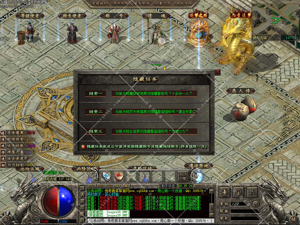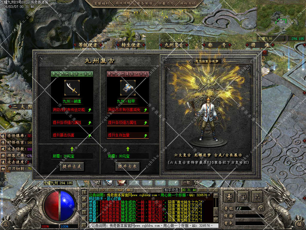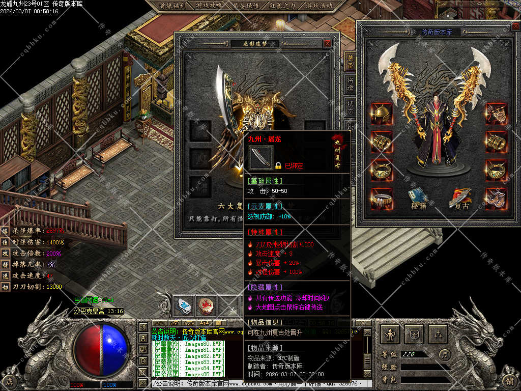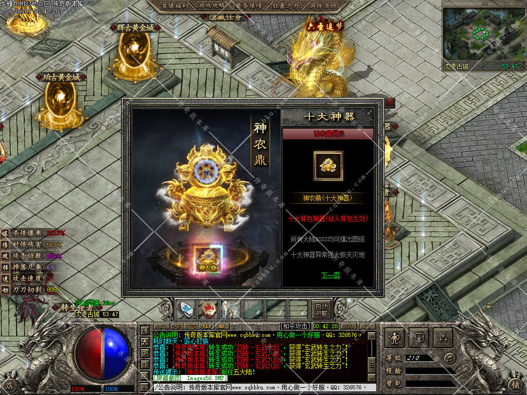 传奇版本库,传奇版本下载,传奇单机资源站,热门传奇版本库,热门传奇私服版本推荐-最全最新游戏版本下载基地 » 02-054独家龙耀九州专属神器正版创新攻速三职业服务端-带假人-自动回收-六大陆