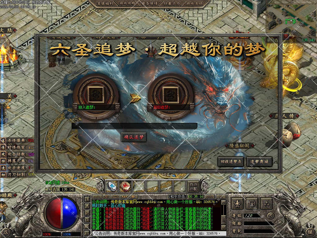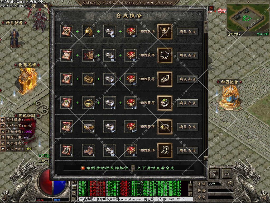 02-054独家龙耀九州专属神器正版创新攻速三职业服务端-带假人-自动回收-六大陆
