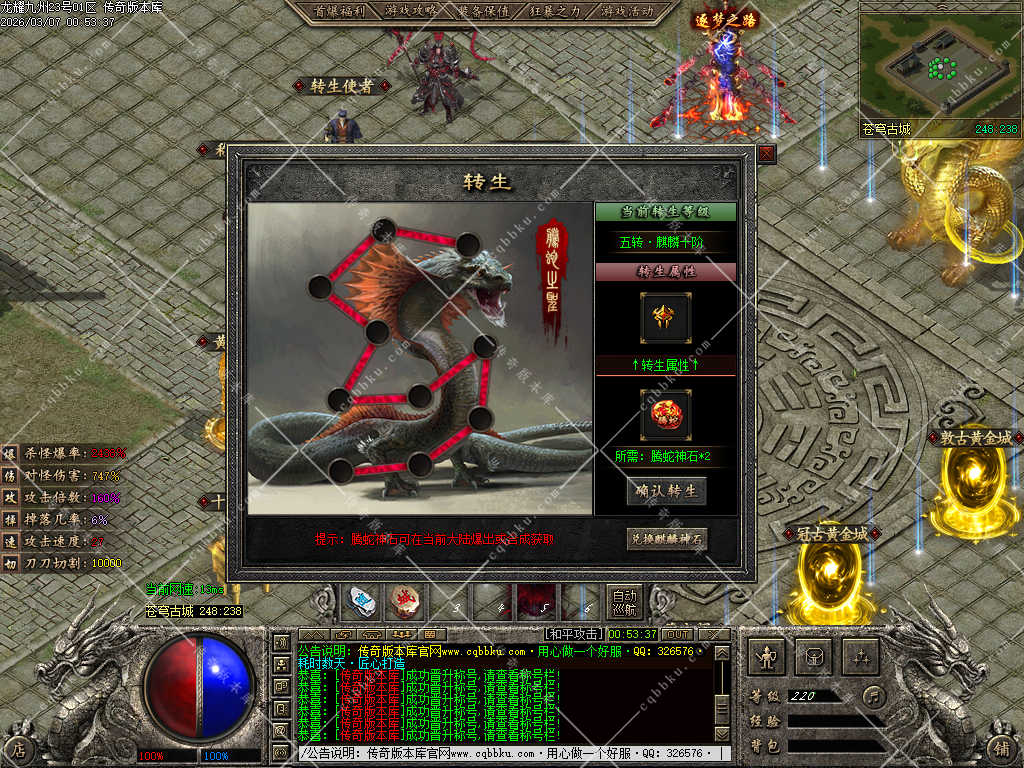 开区1小时后 沃玛神殿刷新一只九州神龙 首次击杀者获得大里元宝