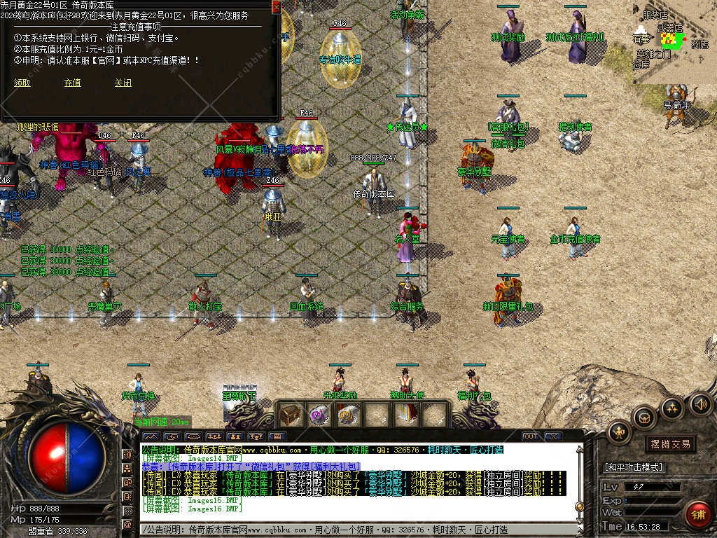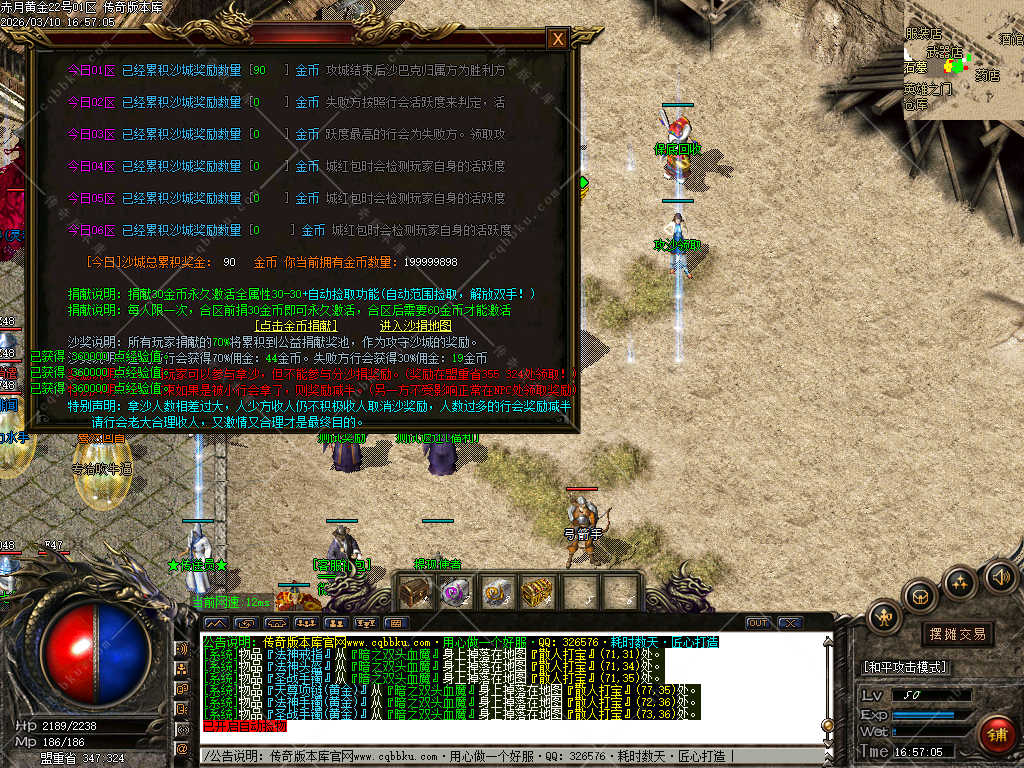 【游戏合区】:开区第二天下午16点合区,晚上统一拿沙,首沙奖励保底红包+沙捐!