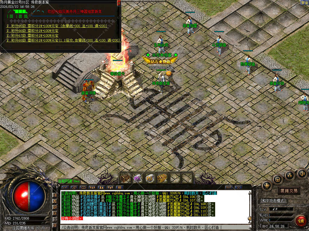【游戏内容】:等级好升,一切靠打,小怪爆终极!三职业平衡,骨灰必选!