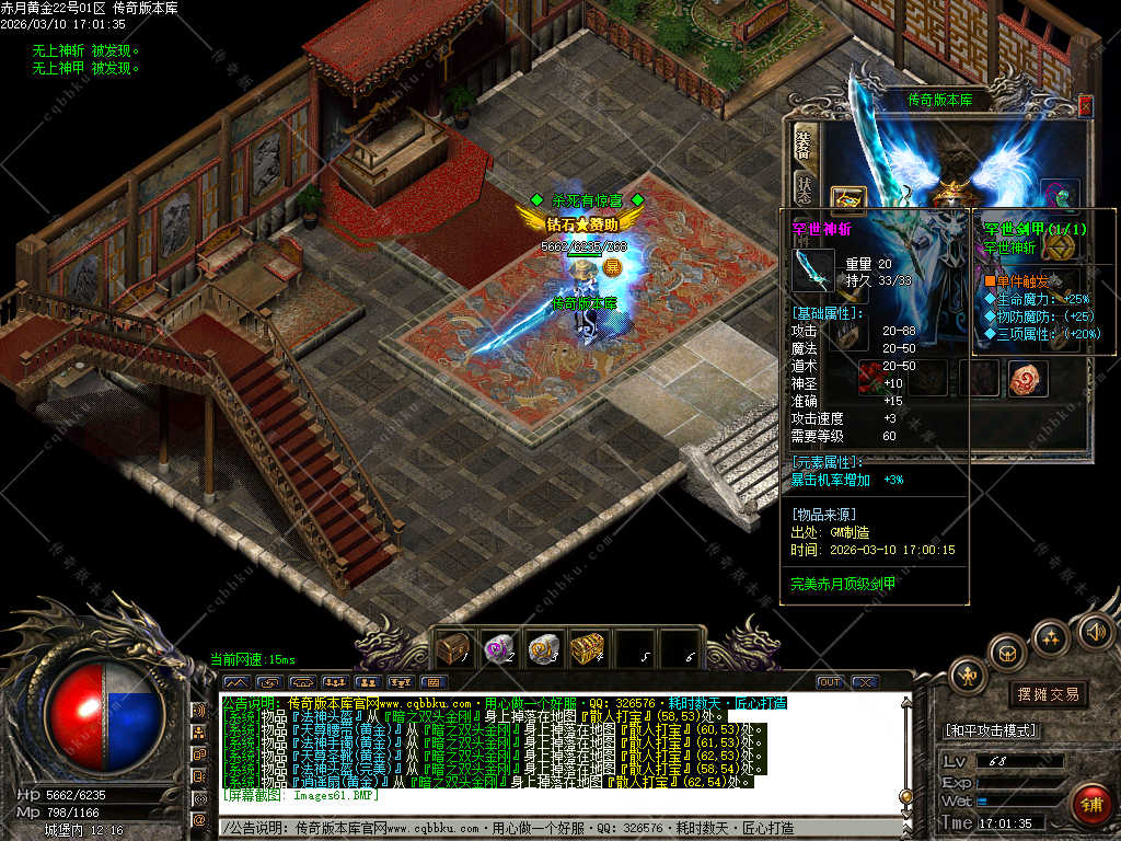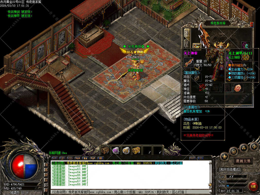 【游戏装备】:赤月-黄金-完美-史诗-传说-无上-罕世!!看脸时代!一切靠打!