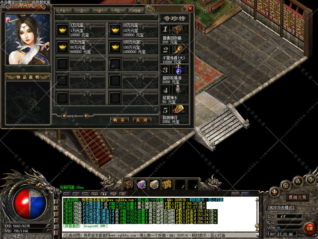 传奇版本库,传奇版本下载,传奇单机资源站,热门传奇版本库,热门传奇私服版本推荐-最全最新游戏版本下载基地 » 02-063独家1.76赤月黄金小极品复古三职业客户端-智能假人-ESP插件-自动回收-大背包
