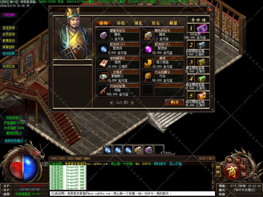 人民币玩家:最高可充值至5.0倍爆率,领取定制仙宠和VIP会员卡,直接进入会员地图打高级装备,加速成长。