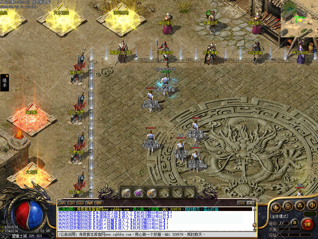 每个地图的每层都有三只BOSS,避免一堆人守着小怪打,怪物刷新时间快。