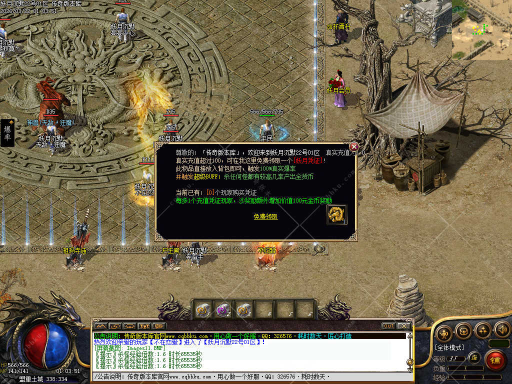 100元完全可白票到终极,只要你耐心玩,。(100真实充值免费领取一个妖月凭证,放入背包即可触发100%真实爆率,并触发超级BUFF:杀任何怪都有较高的几率产出全货币,可快速持续发育。