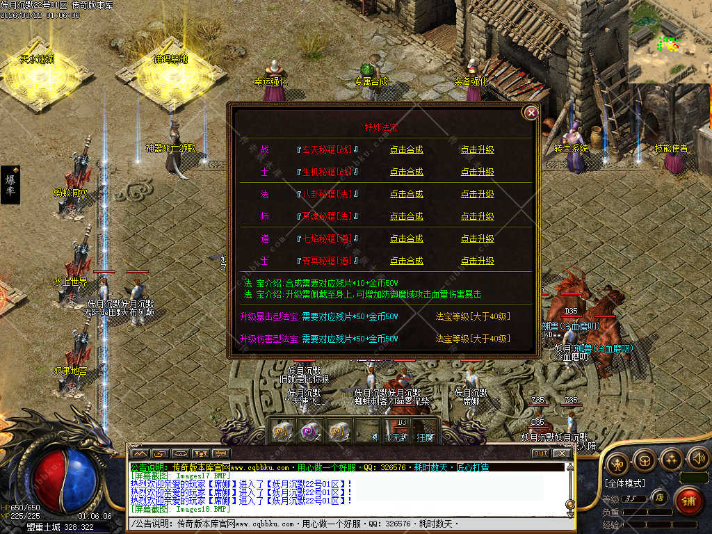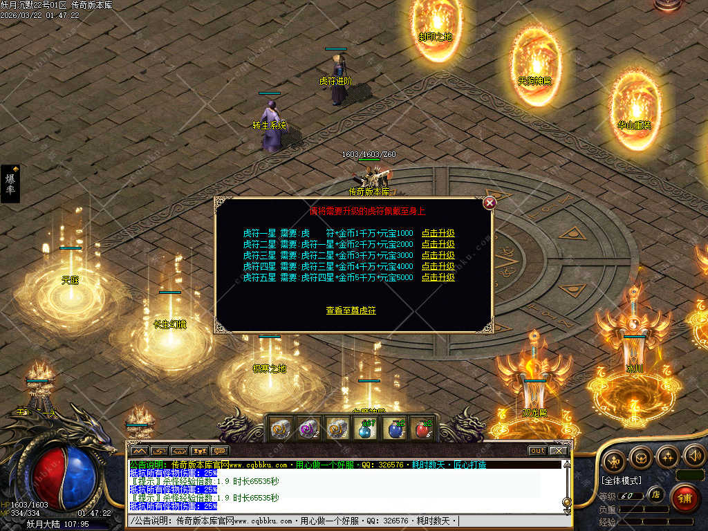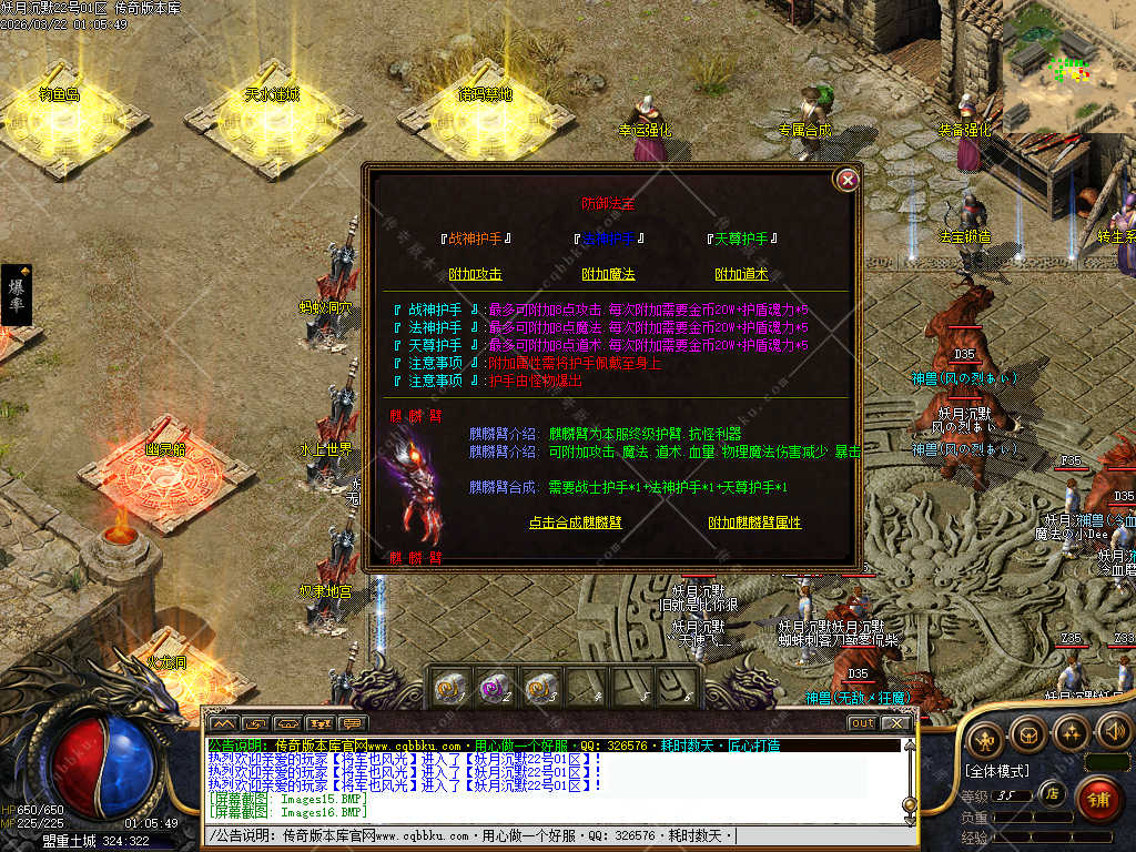 接下来就说下大佬级人物进游有啥可以搞的,一样的,进来先关注了,到土城后把赞助领取,赠送的书页先找技能使者把宝宝兑换,然后F10可以看下自身的命环,经验提升满了,赶紧下图找BOSS进阶命环,命环加泡点,经验倍数,恢复等等(下图前记得买聚灵珠),三职业的护手法宝很好打,打到赶紧回家合成麒麟护手,麒麟护手可以升级各项属性,材料可爆,商场也有售卖,前期能搞的也就这些,还是那句话尽量多打boss,boss强度不高,材料需求还是比较重要的。