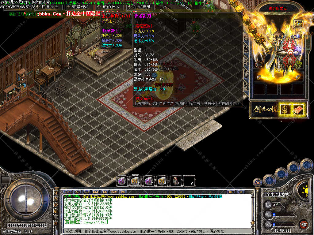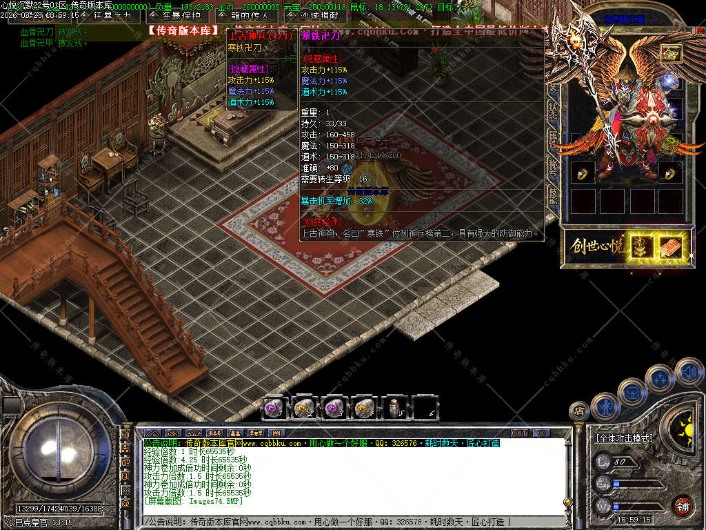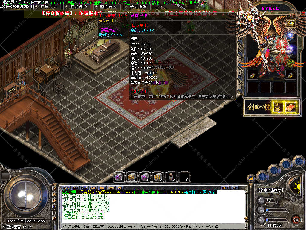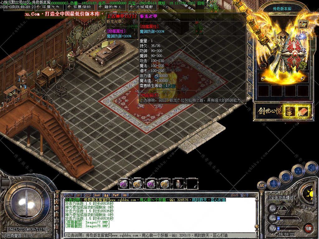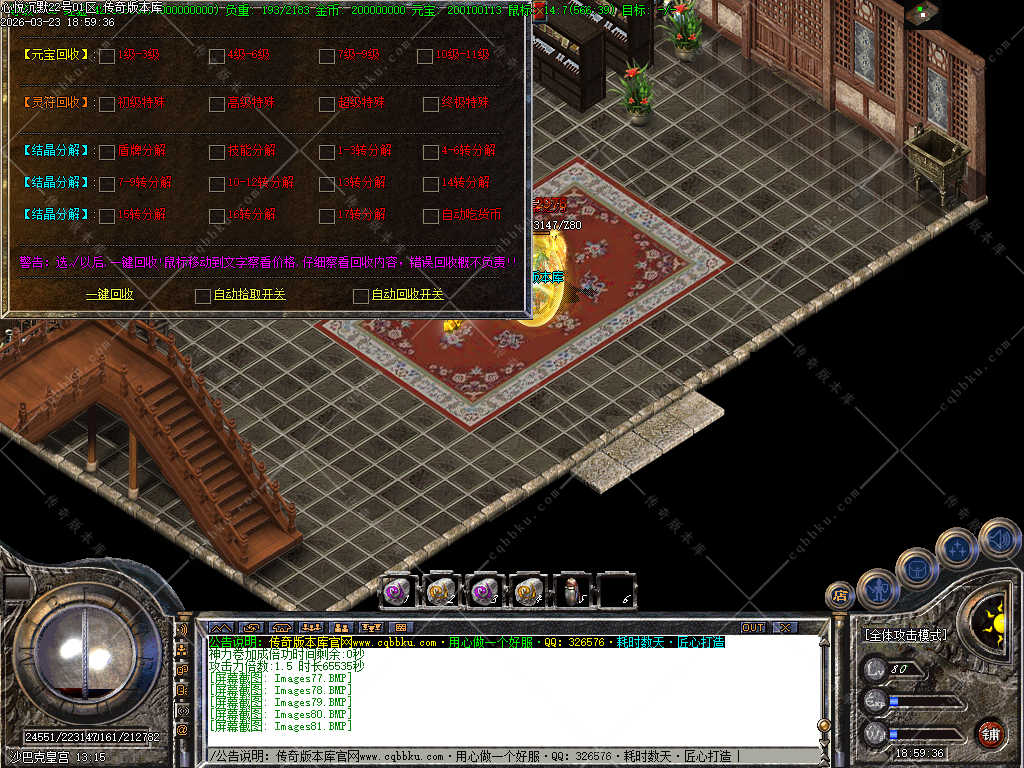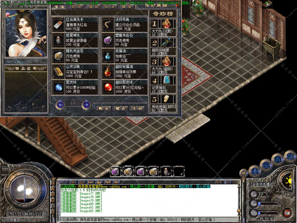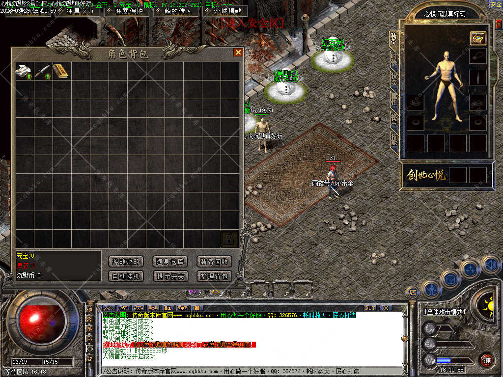 传奇版本库_传奇服务端_传奇版本下载_cqbbku.com » 02-088独家心悦沉默三职业微变版 职业晋级 带假人 封神榜 自动回收 畅玩四大陆服务端