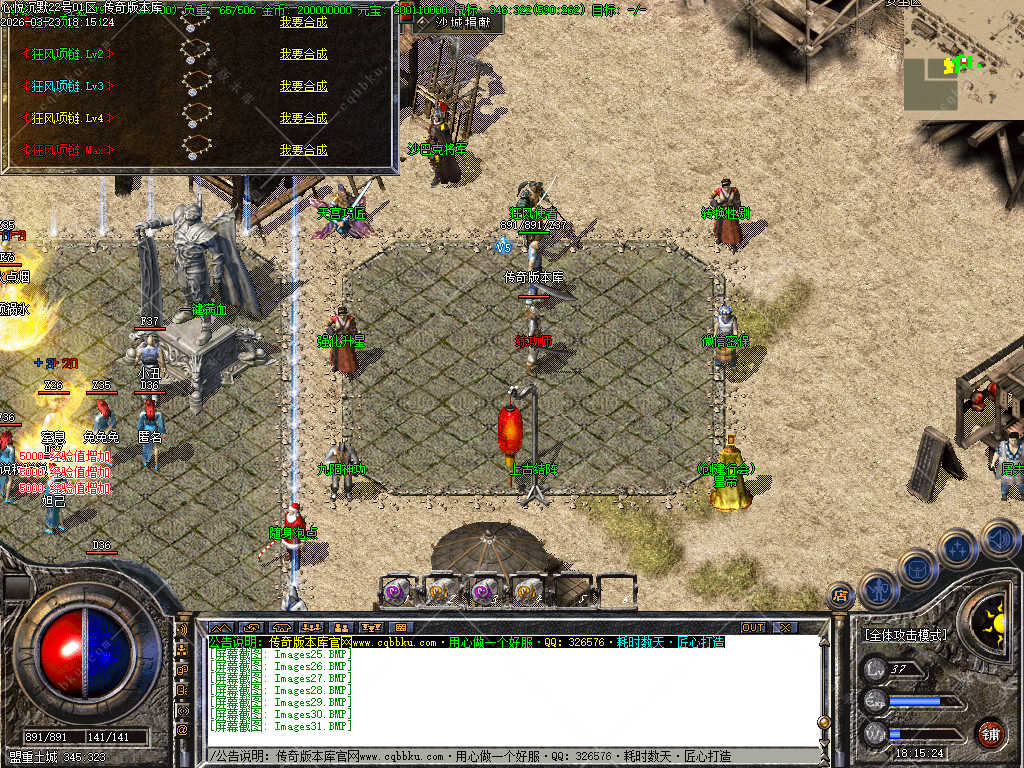 BOSS与装备:BOSS可掉落所有装备,血量越高爆率越高,普通BOSS也能追梦;狂风项链可在土城合成高级款,每升1级增加隐藏倍功。