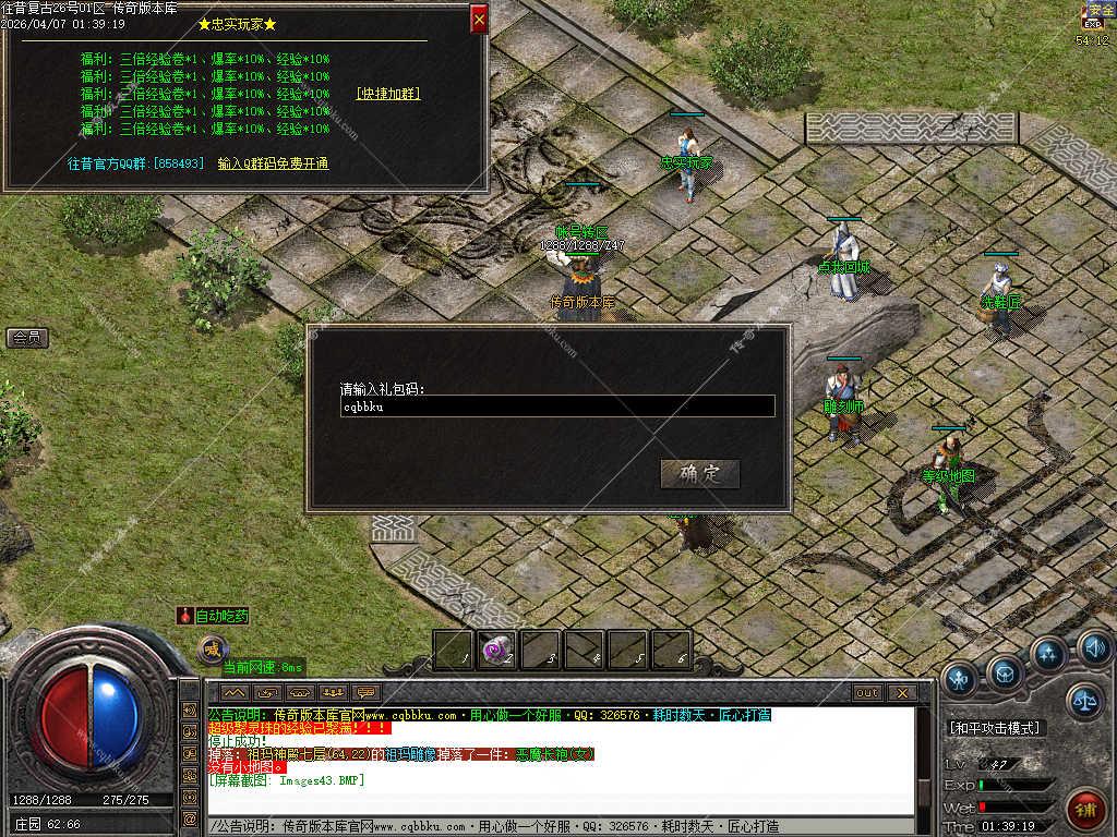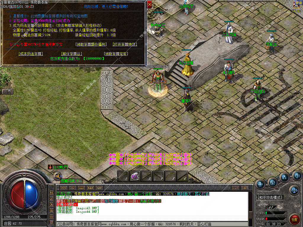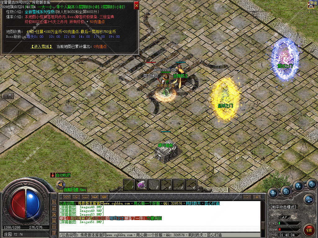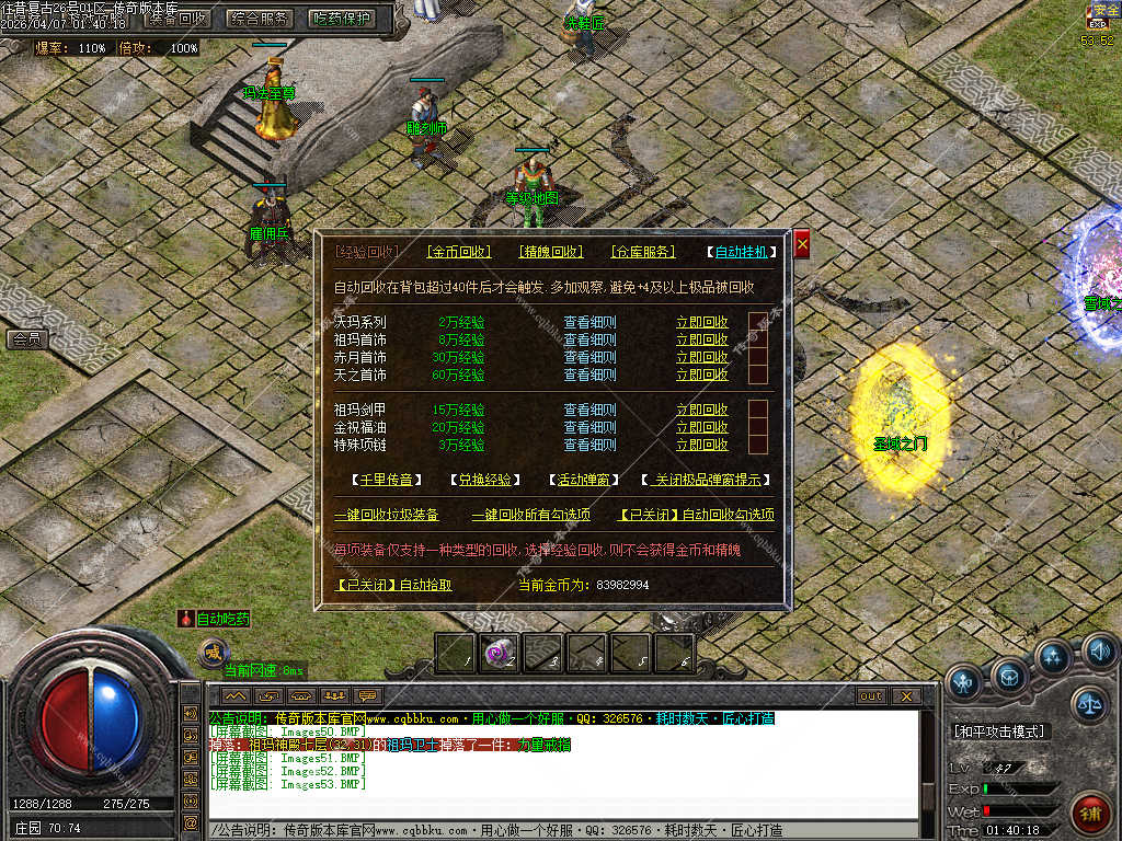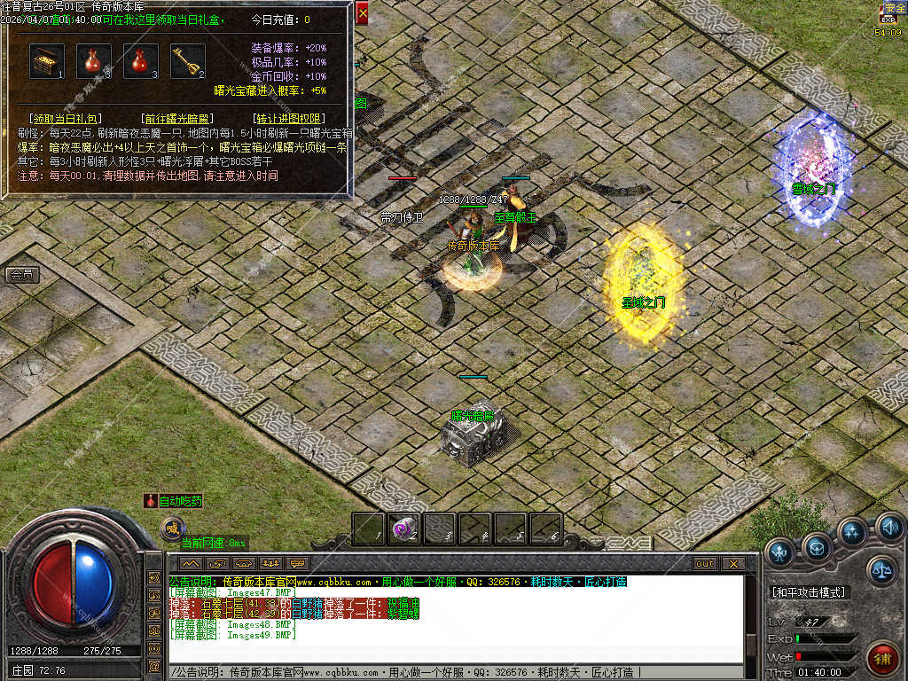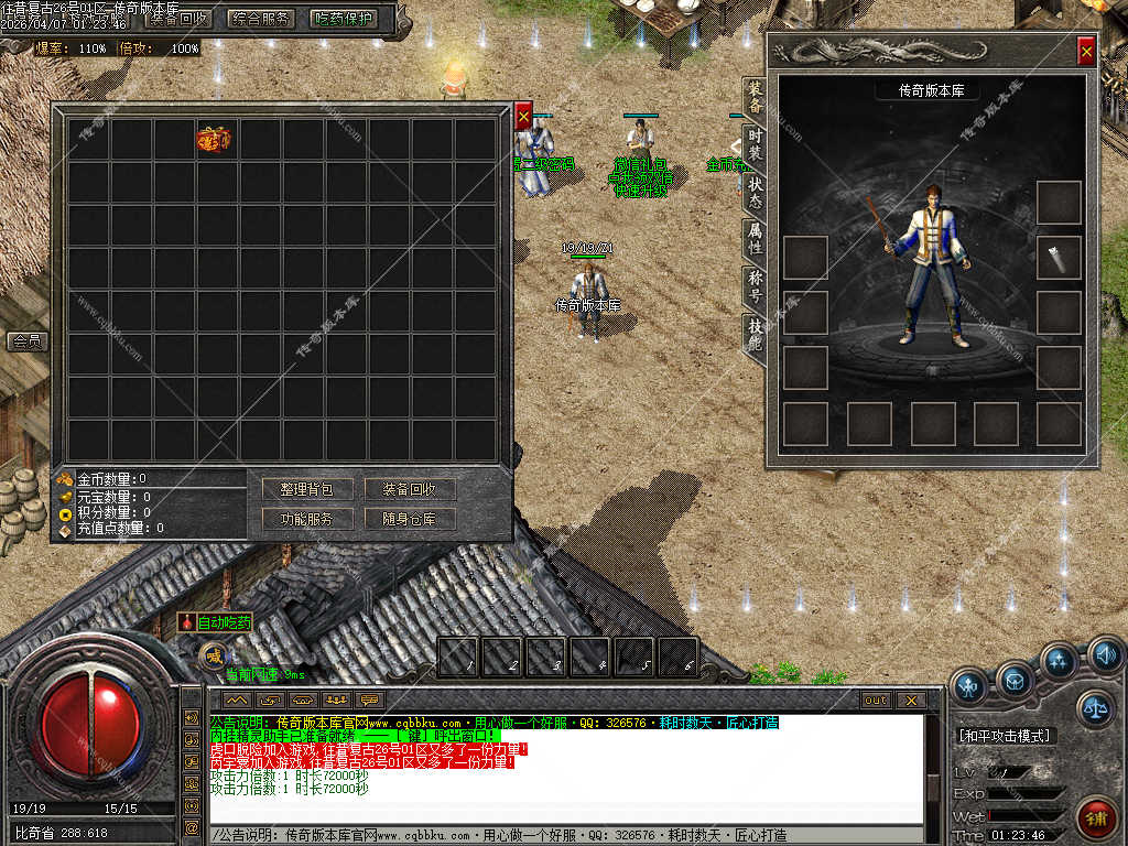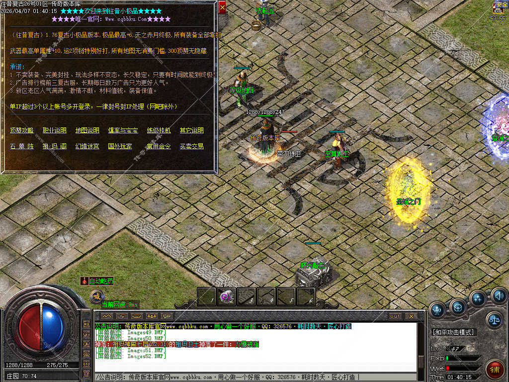 传奇版本库_传奇服务端_传奇版本下载_cqbbku.com » 02-103独家正版1.76 往昔复古三职业服务端金币小极品+6智能假人稳定可开服