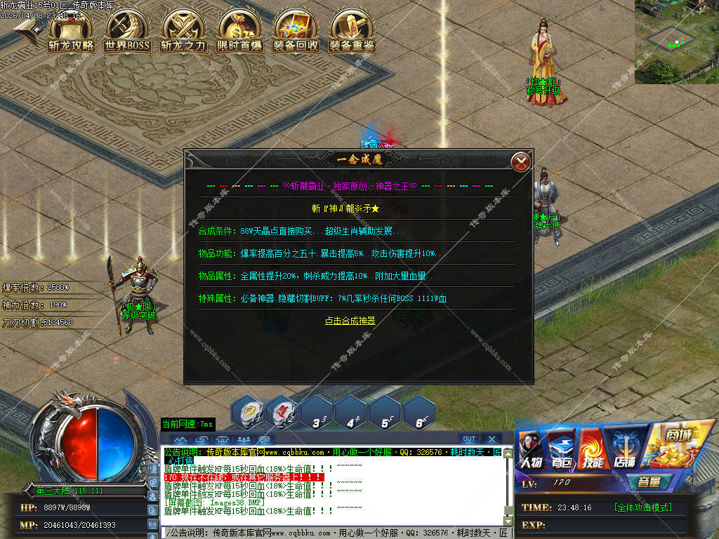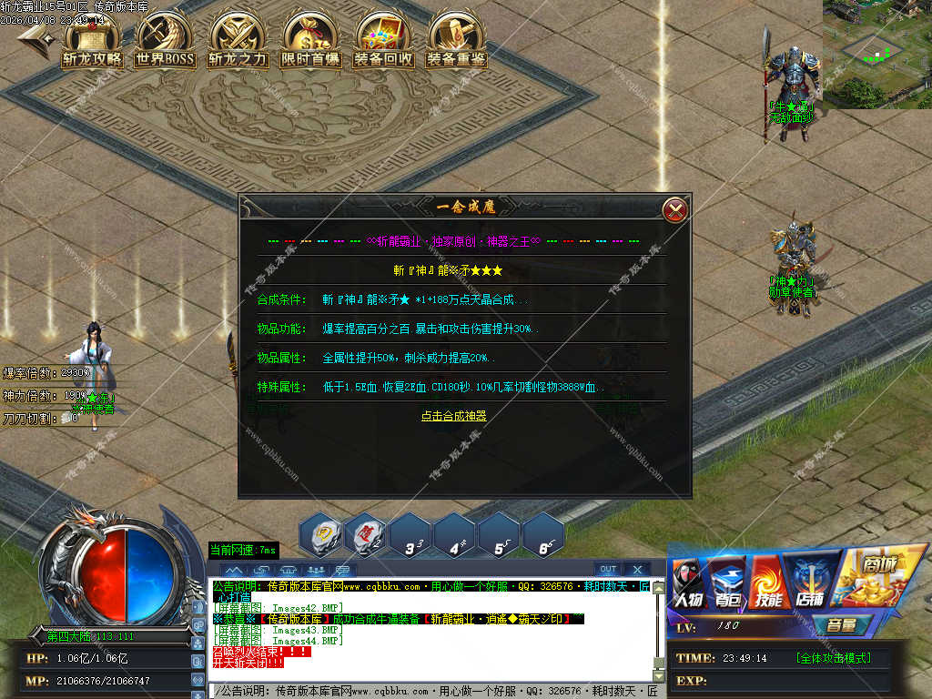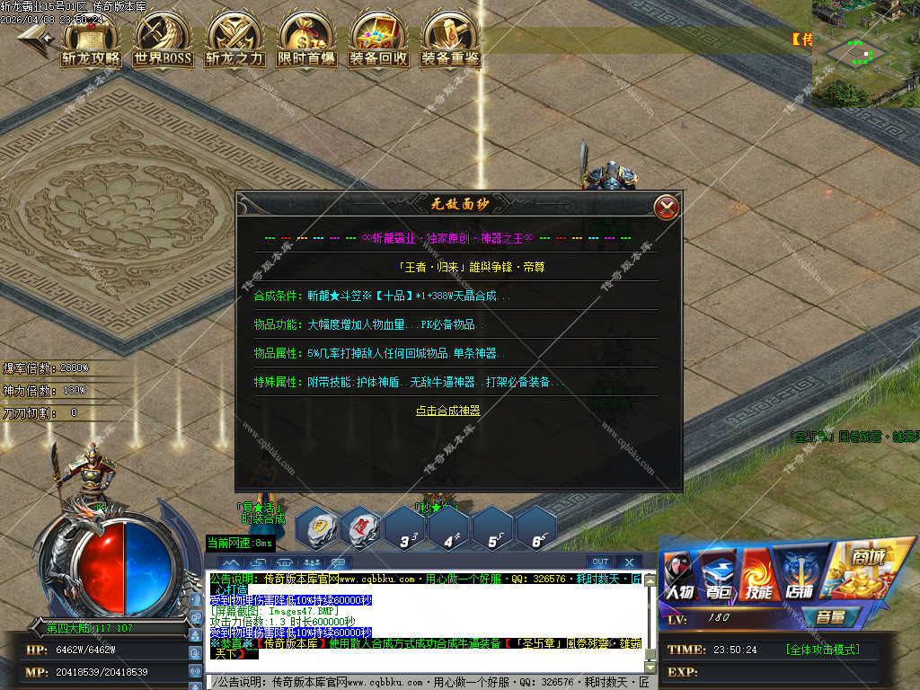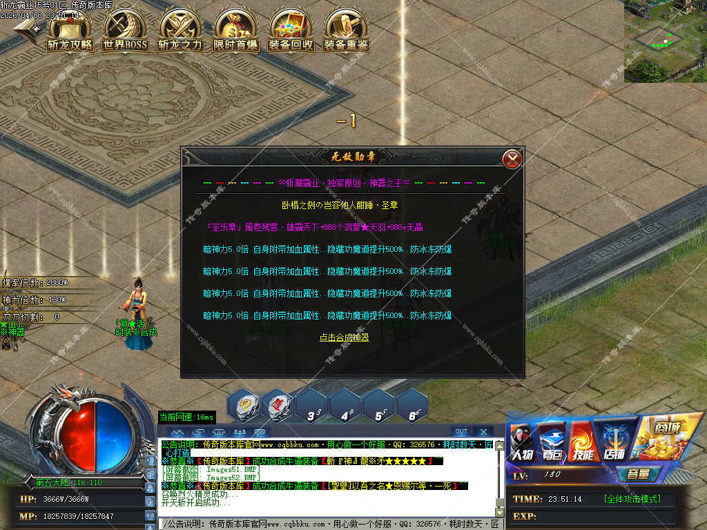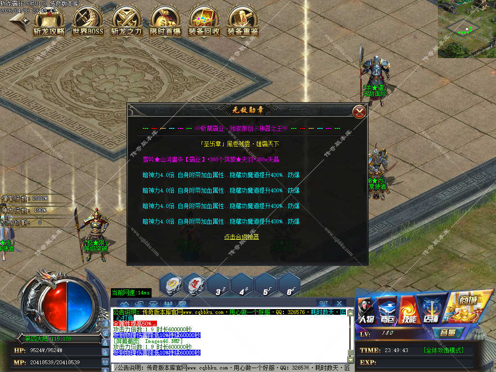 传奇版本库_传奇服务端_传奇版本下载_cqbbku.com » 02-108独家斩龙霸业神器攻速单职业传奇服务端假人陪玩开区版本