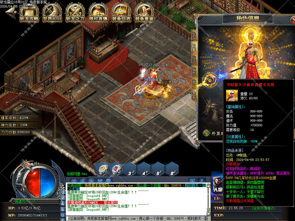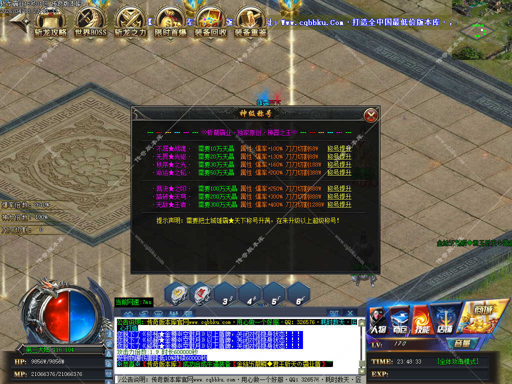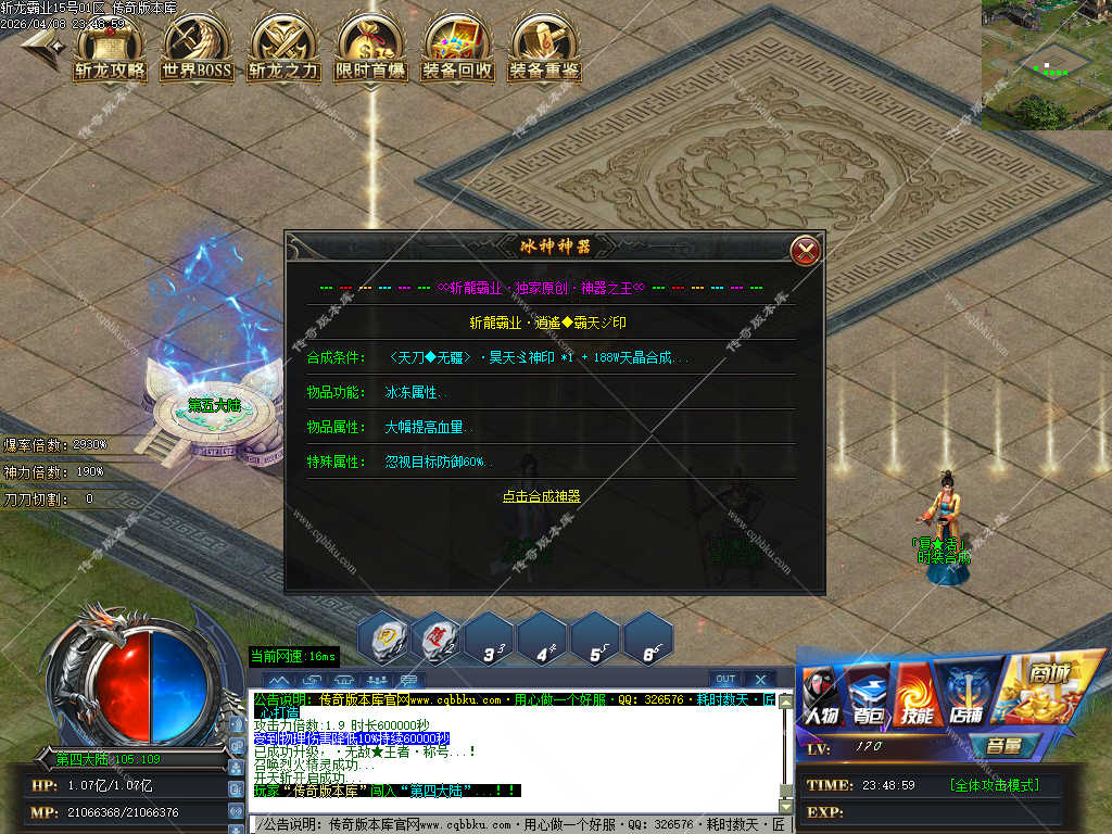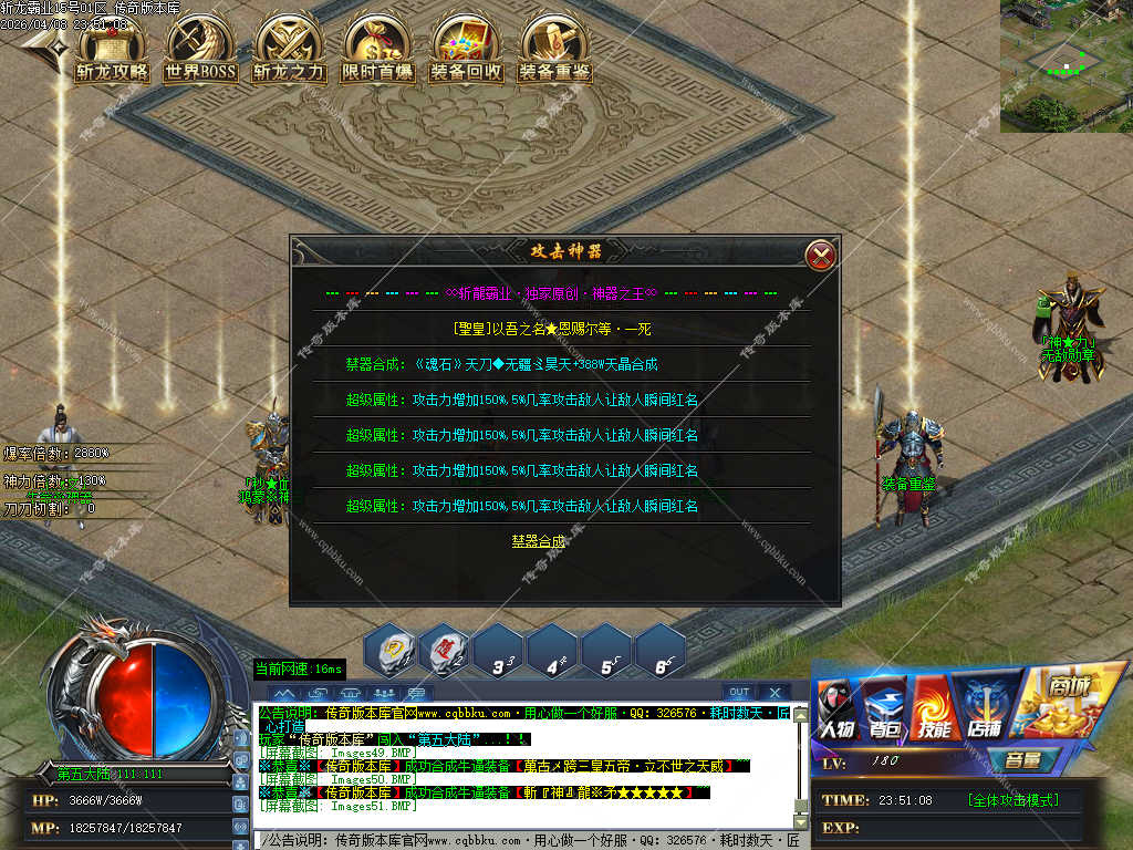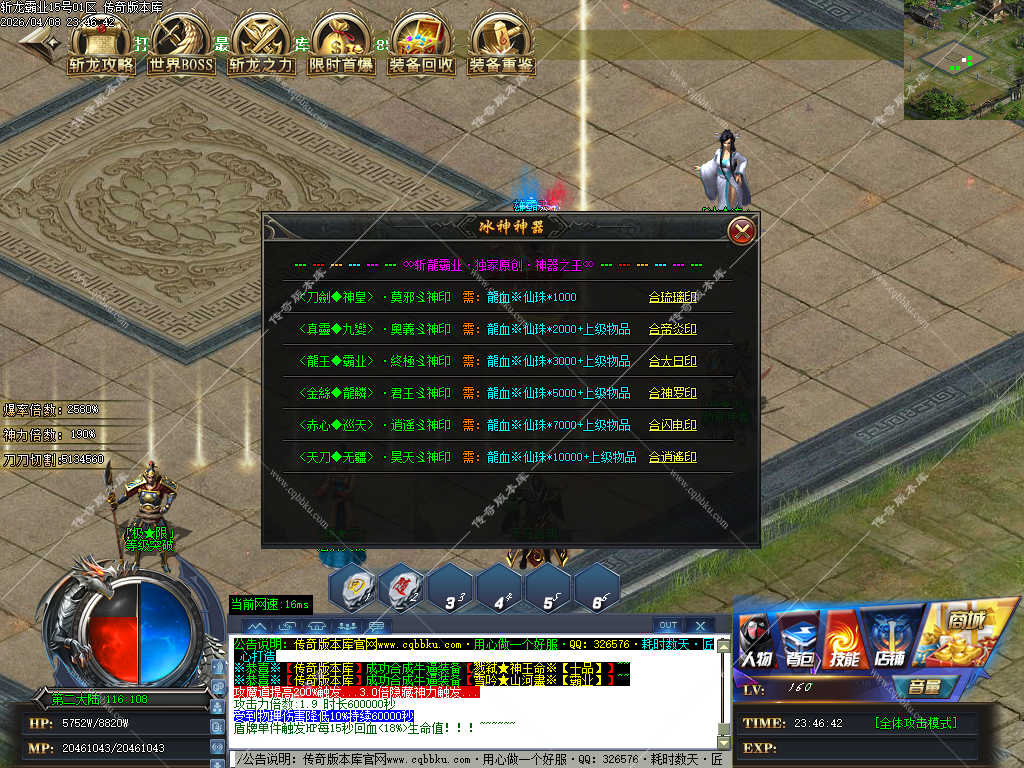 传奇版本库_传奇服务端_传奇版本下载_cqbbku.com » 02-108独家斩龙霸业神器攻速单职业传奇服务端假人陪玩开区版本
