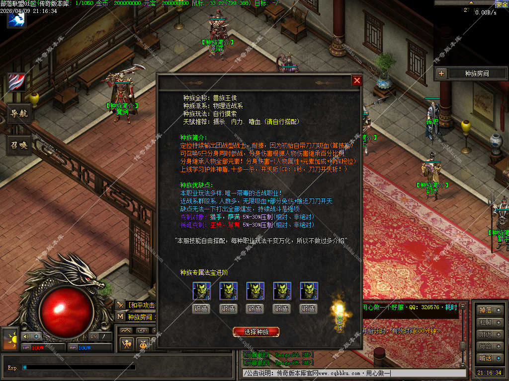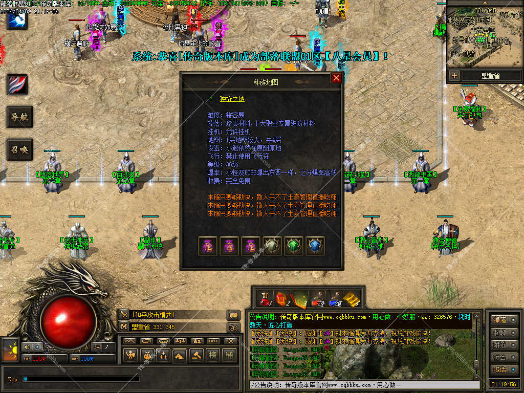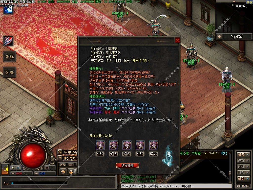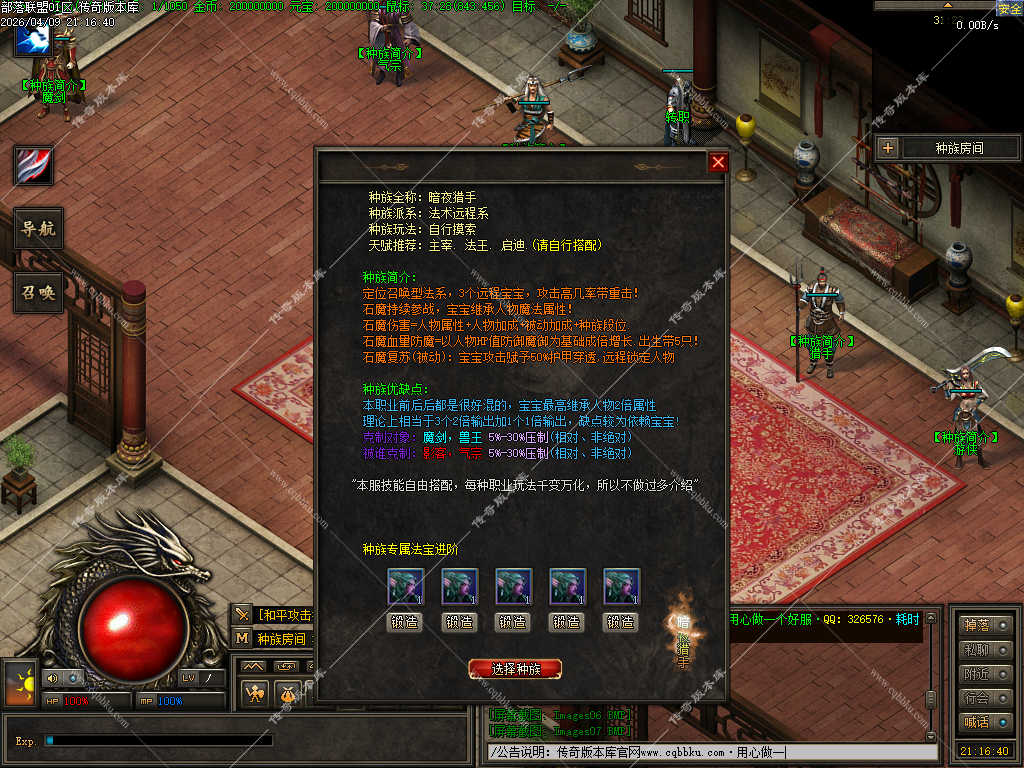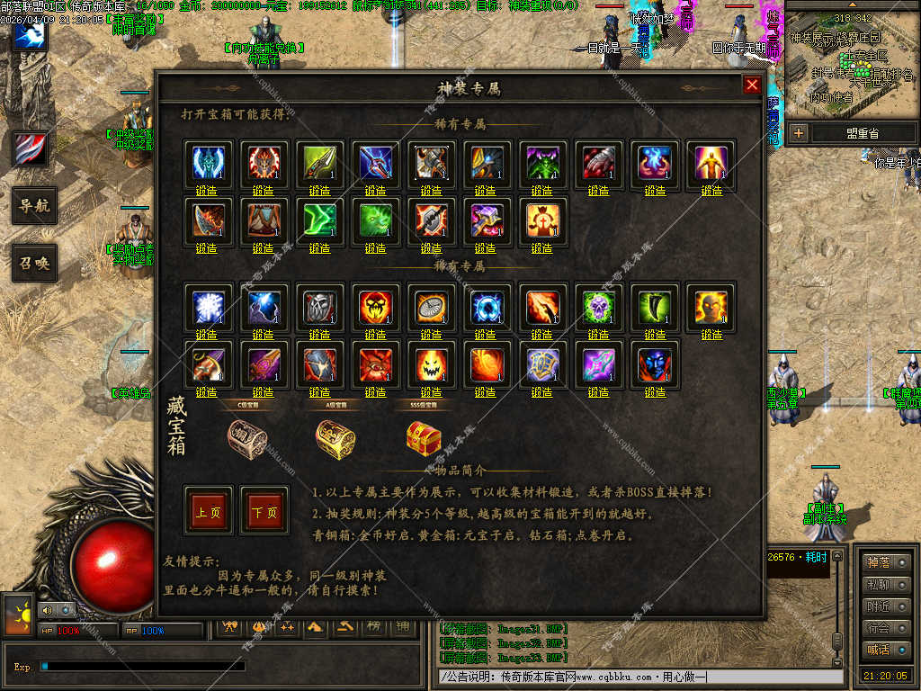 传奇版本库_传奇服务端_传奇版本下载_cqbbku.com » 02-110独家部落联盟噬魂大陆特色暗黑多职业传奇服务端 - 带假人陪玩 - 完整开区版本