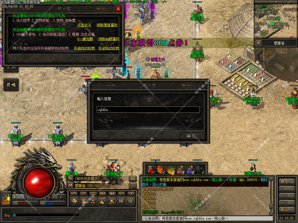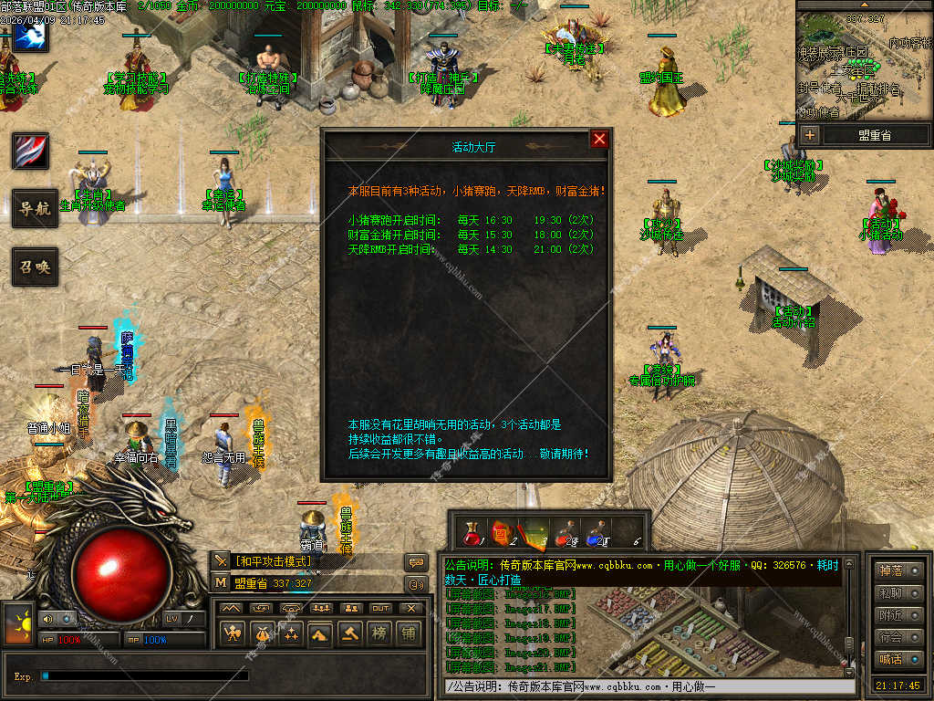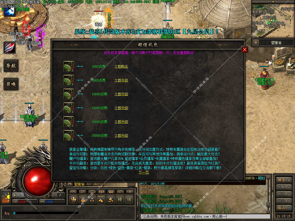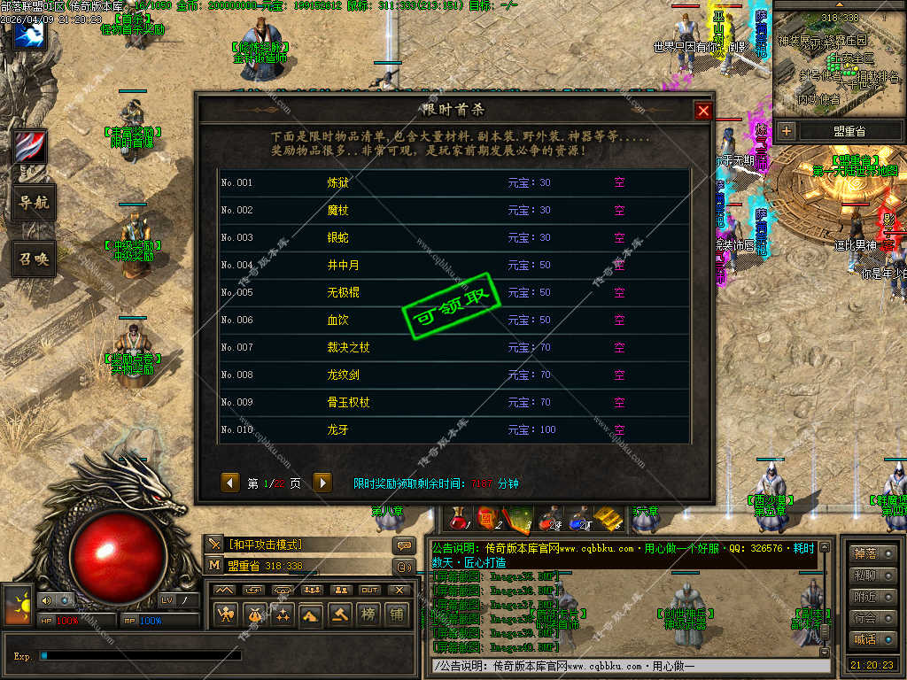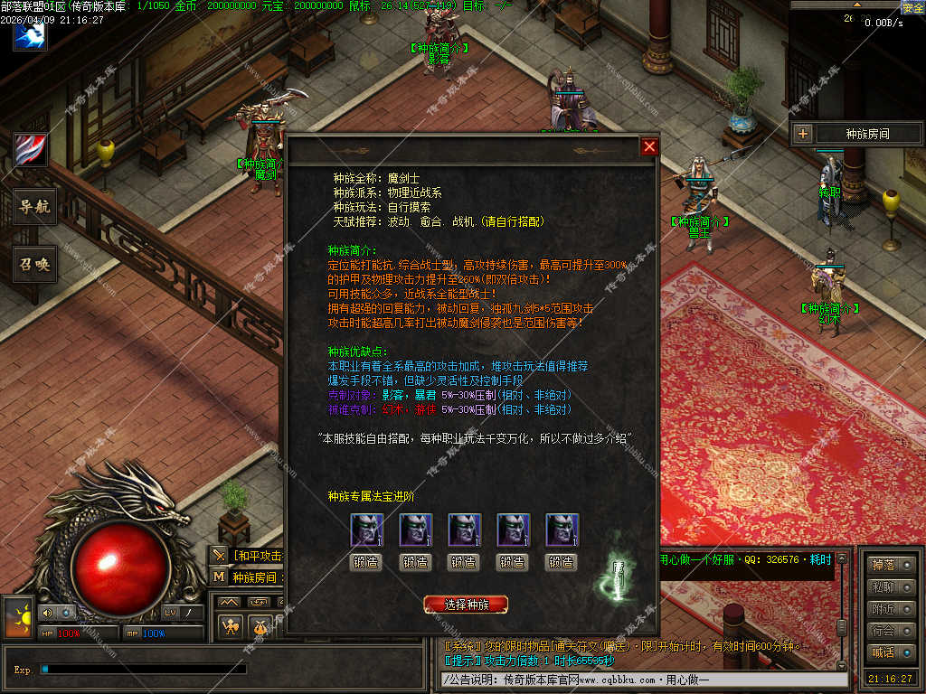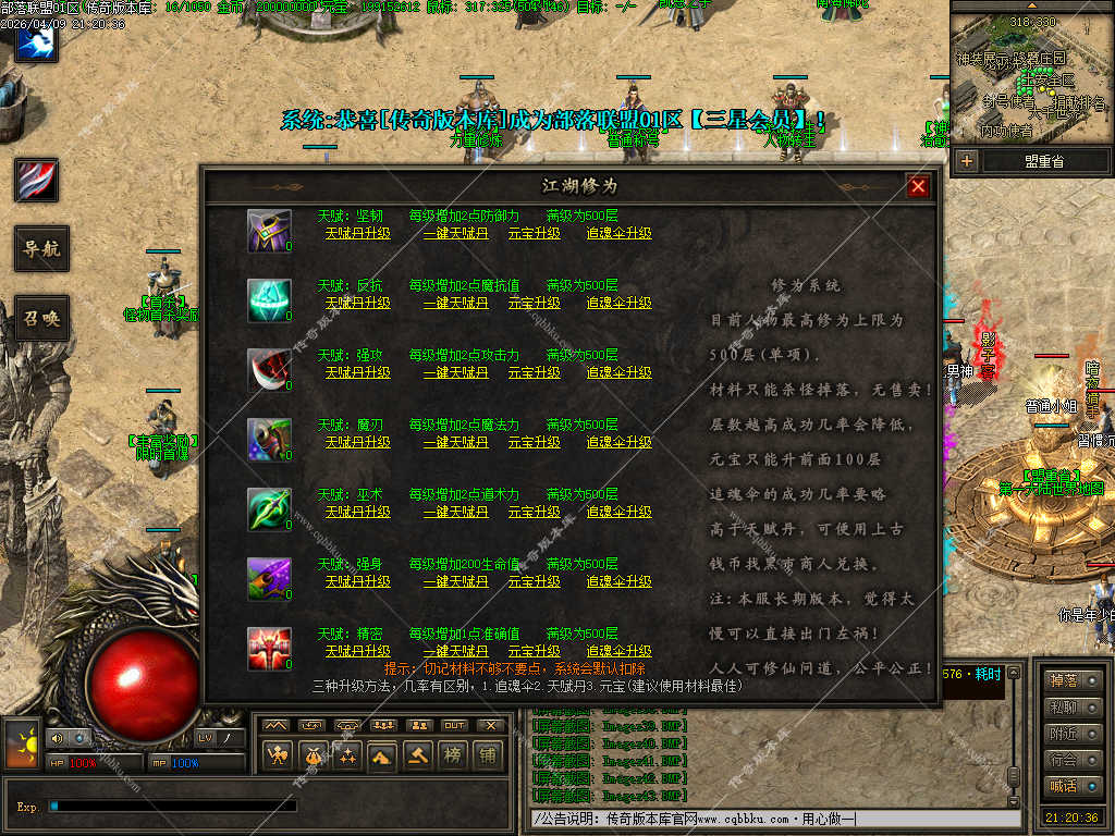 传奇版本库_传奇服务端_传奇版本下载_cqbbku.com » 02-110独家部落联盟噬魂大陆特色暗黑多职业传奇服务端 - 带假人陪玩 - 完整开区版本