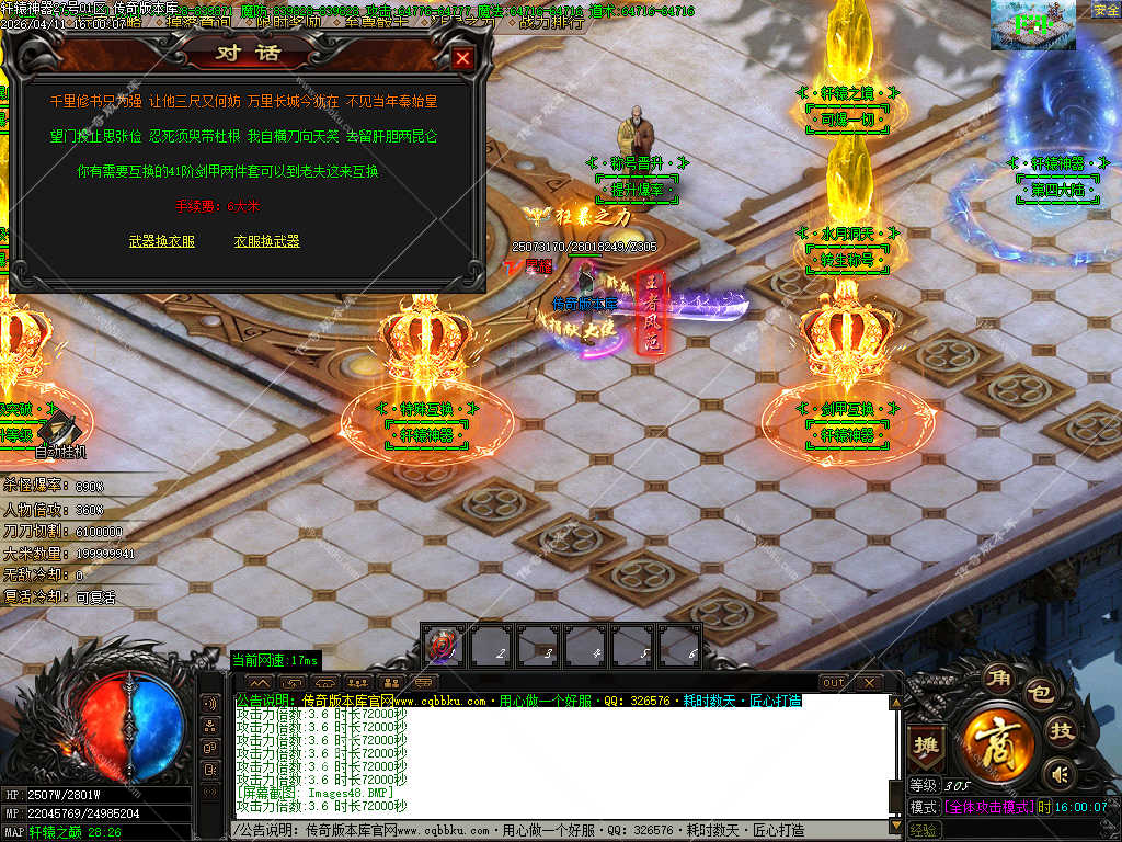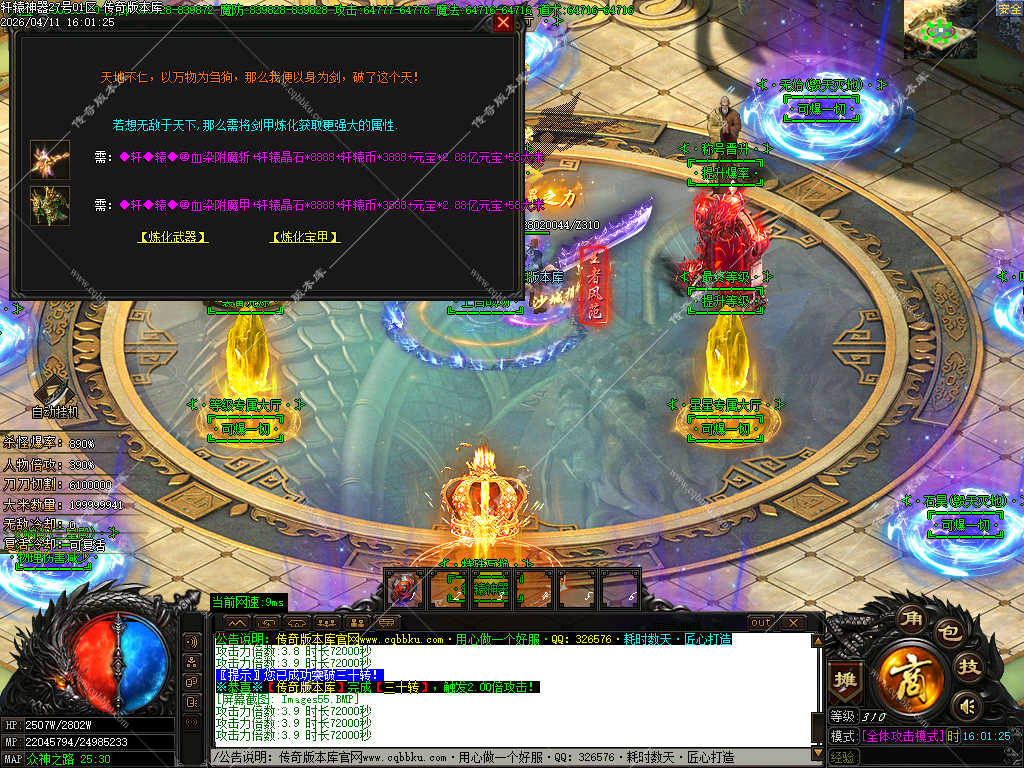 传奇版本库_传奇服务端_传奇版本下载_cqbbku.com » 02-111独家轩辕神器激情攻速单职业-无限刀假人陪玩传奇服务端