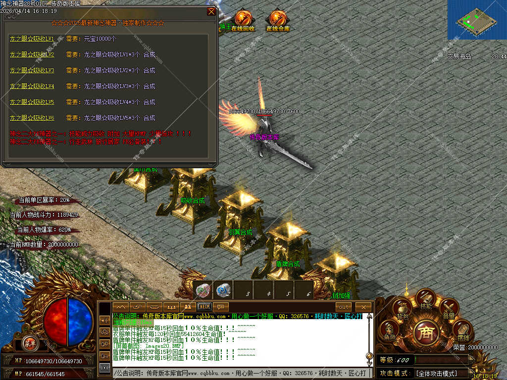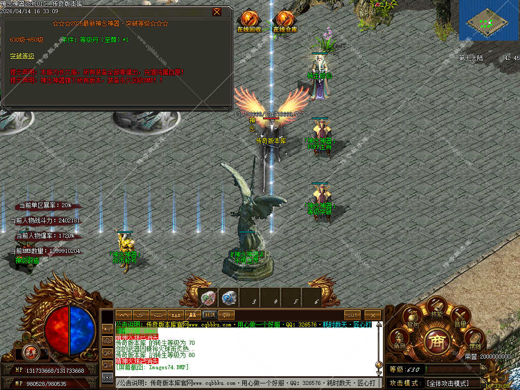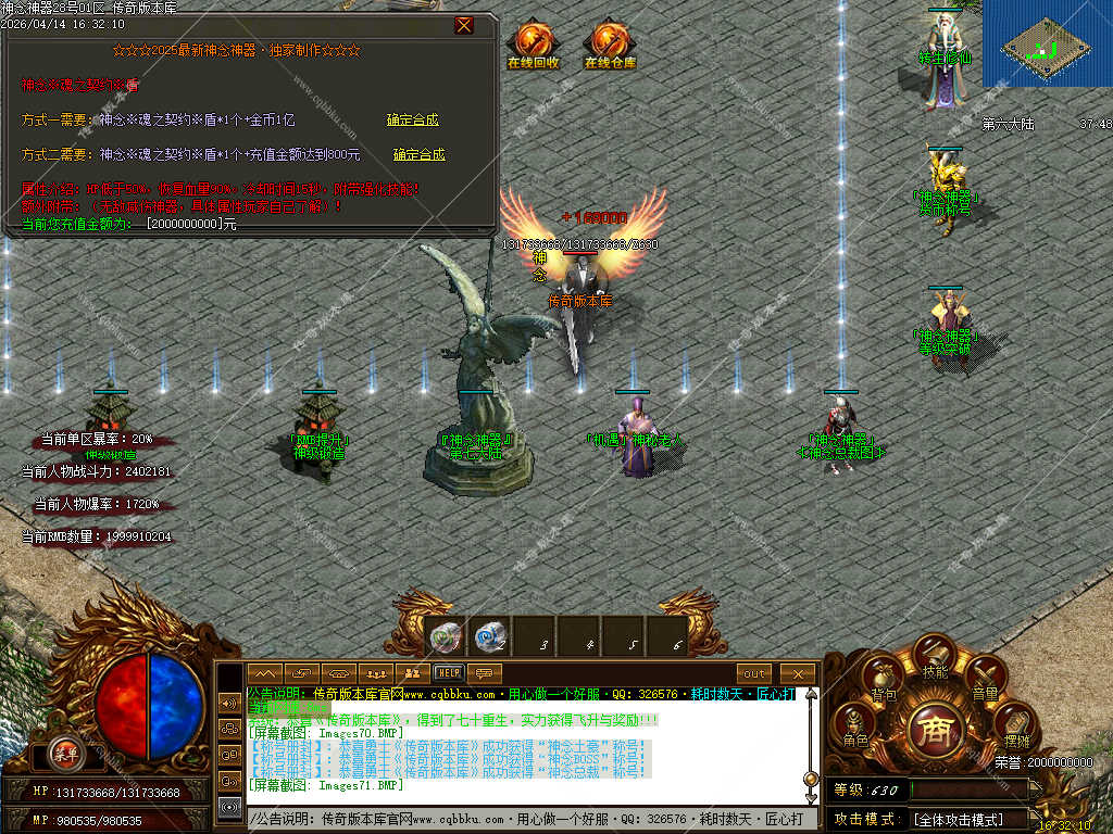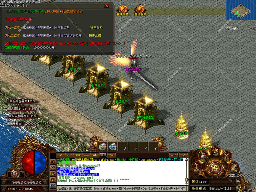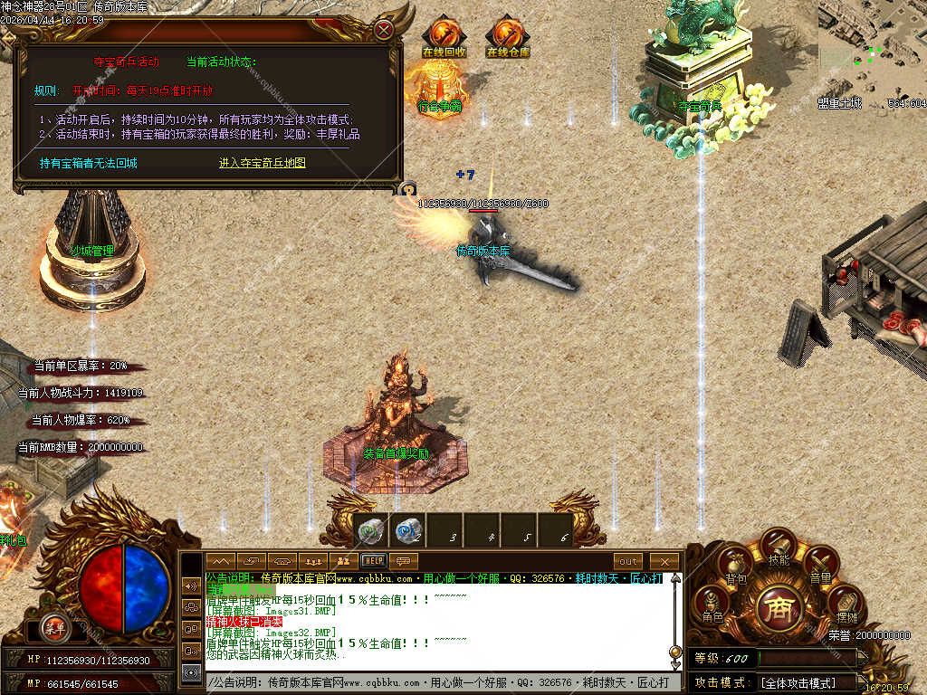 版本主打神器专属玩法,各大地图均有专属BOSS刷新,击杀可掉落高阶神器与稀有材料,光柱高频触发,爆率良心。