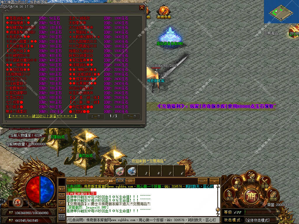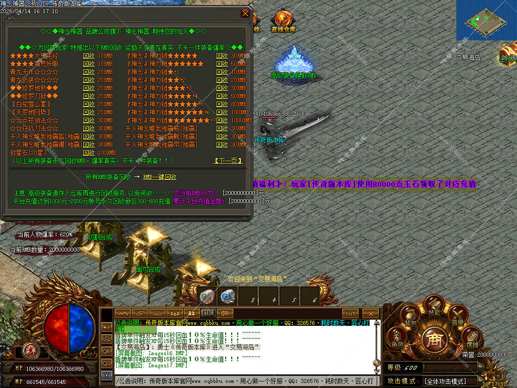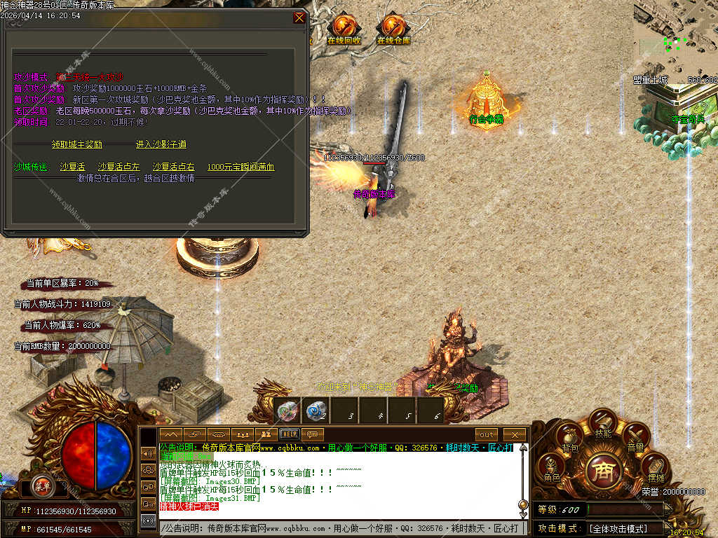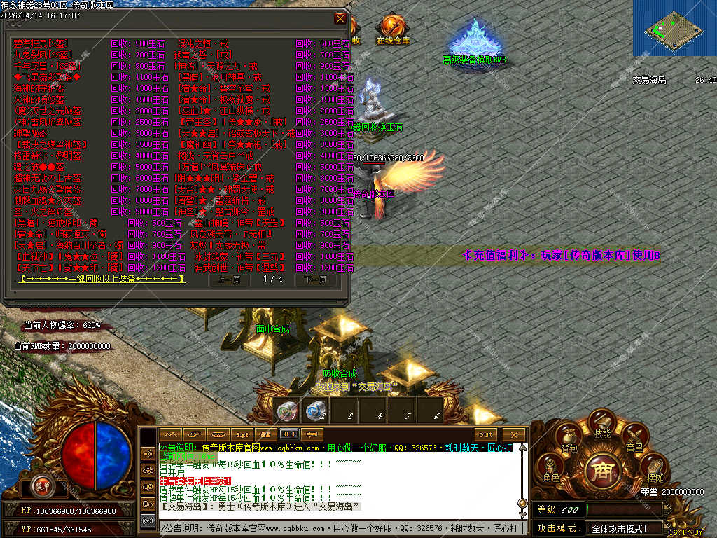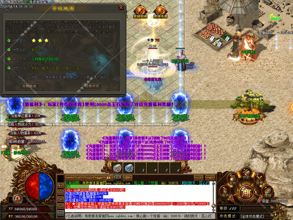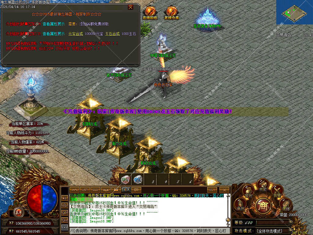 版本主打神器专属玩法,各大地图均有专属BOSS刷新,击杀可掉落高阶神器与稀有材料,光柱高频触发,爆率良心。