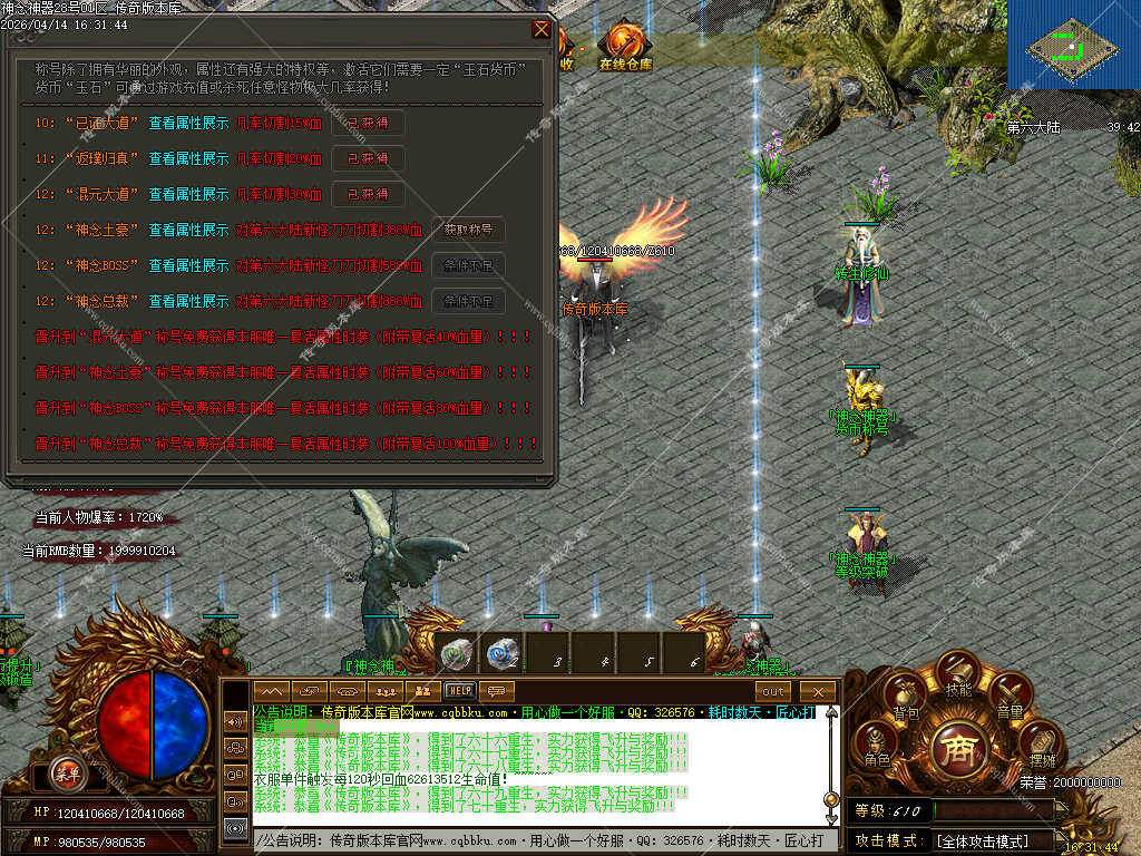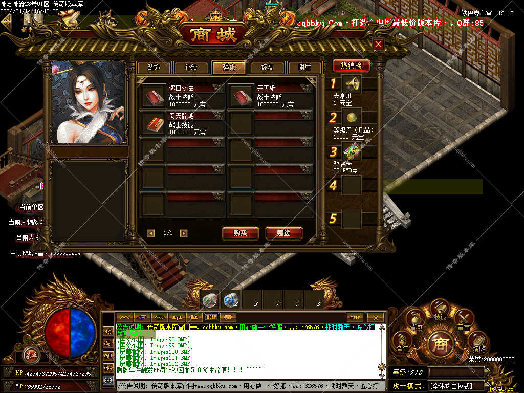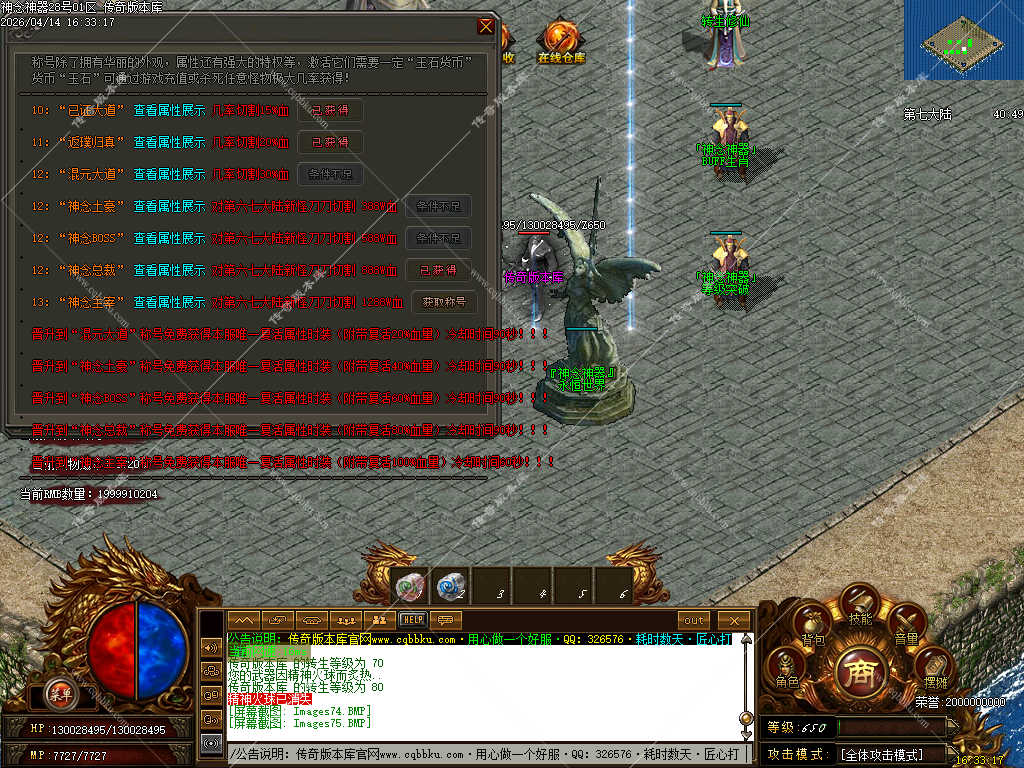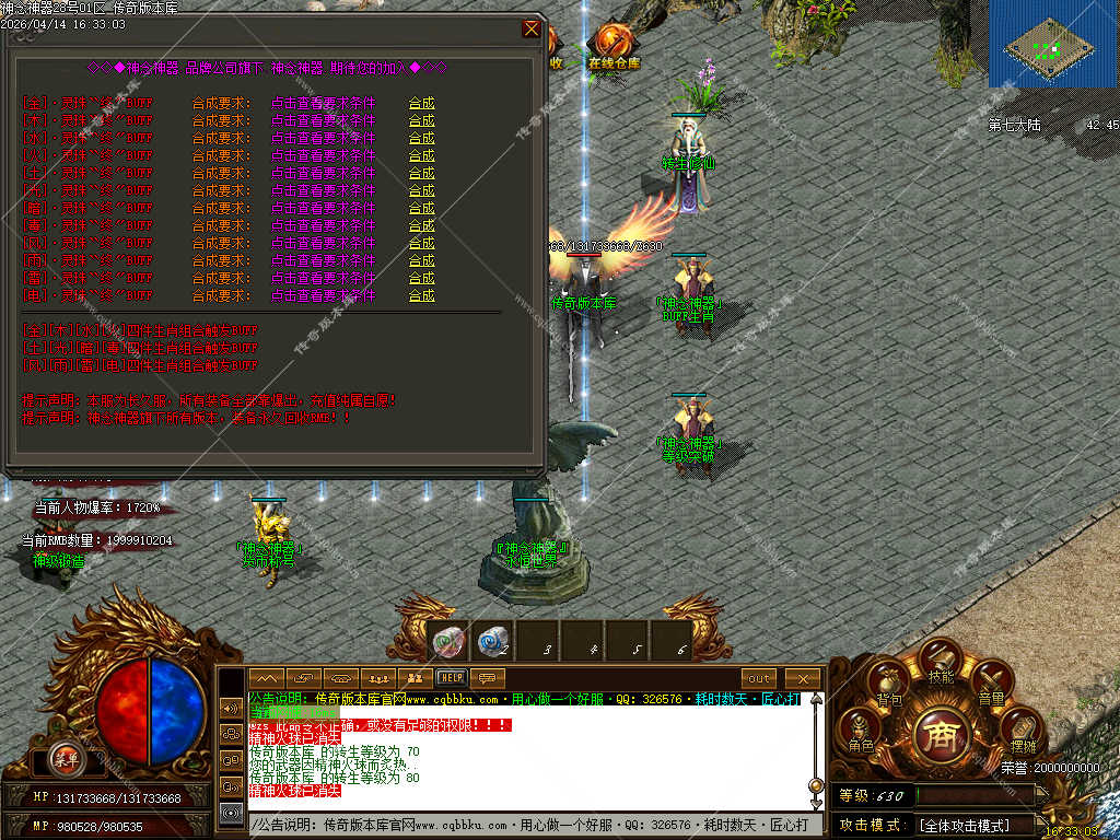 传奇版本库_传奇服务端_传奇版本下载_cqbbku.com » 02-117独家神念神器之修罗界第四季单职业智能假人陪玩完整传奇服务端
