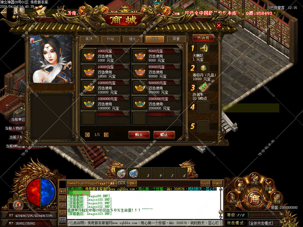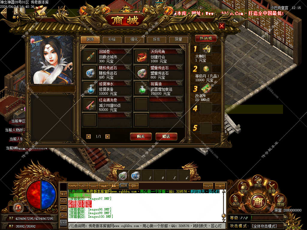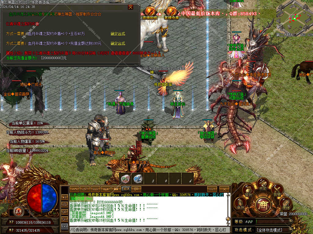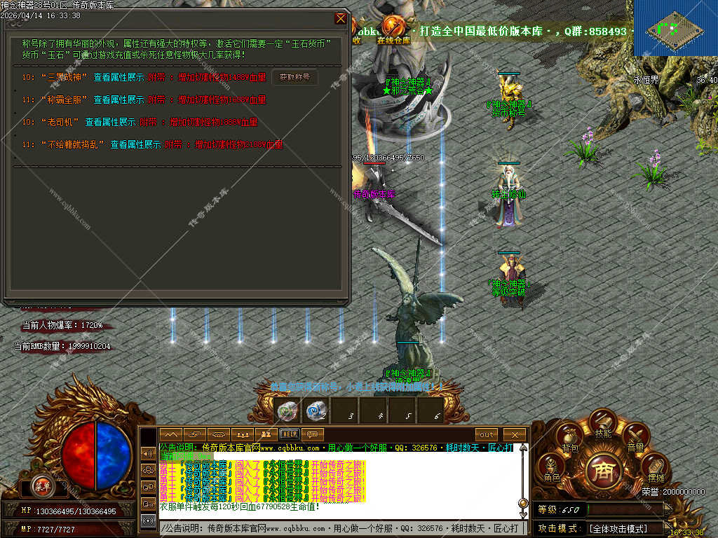 传奇版本库_传奇服务端_传奇版本下载_cqbbku.com » 02-117独家神念神器之修罗界第四季单职业智能假人陪玩完整传奇服务端