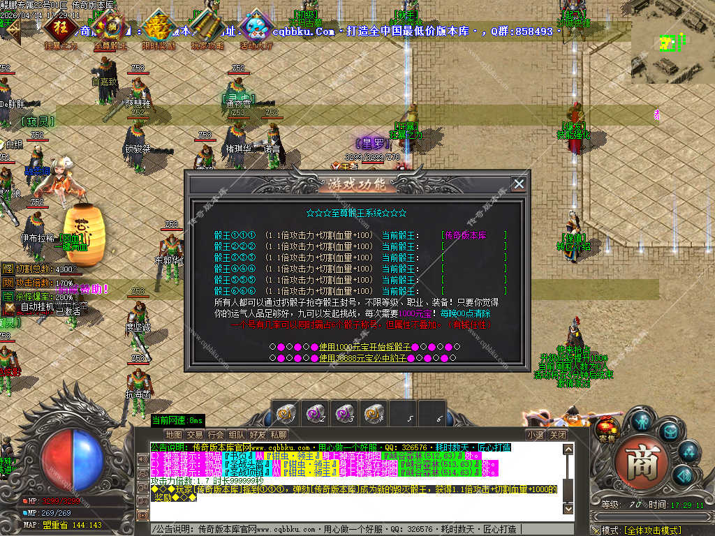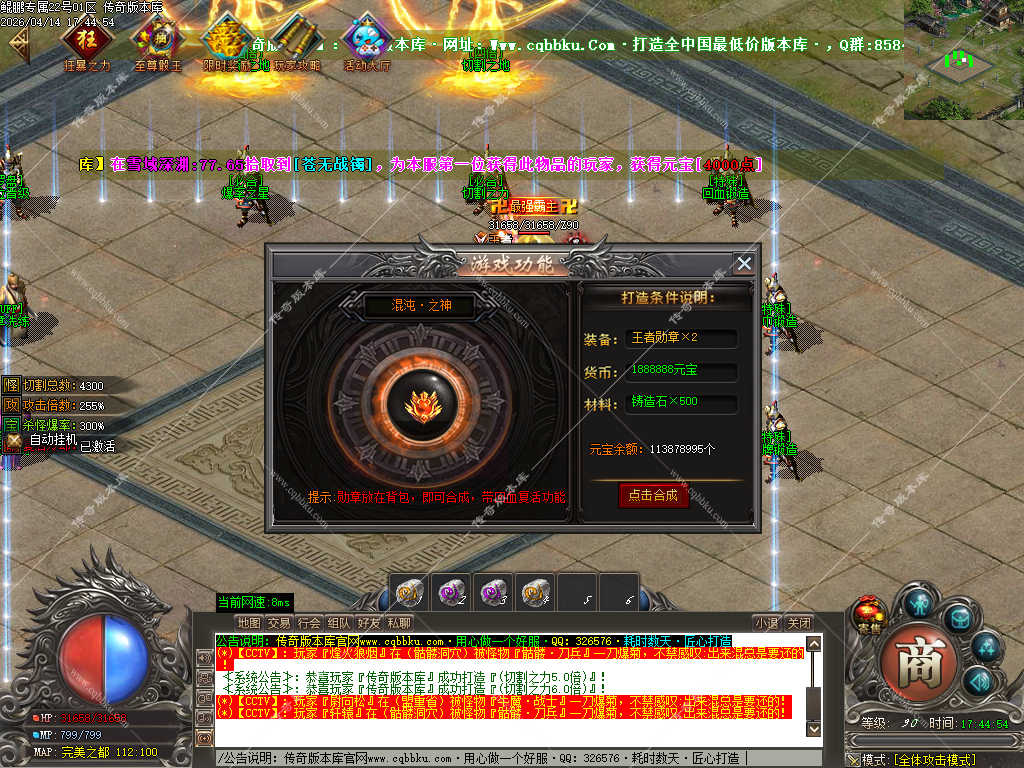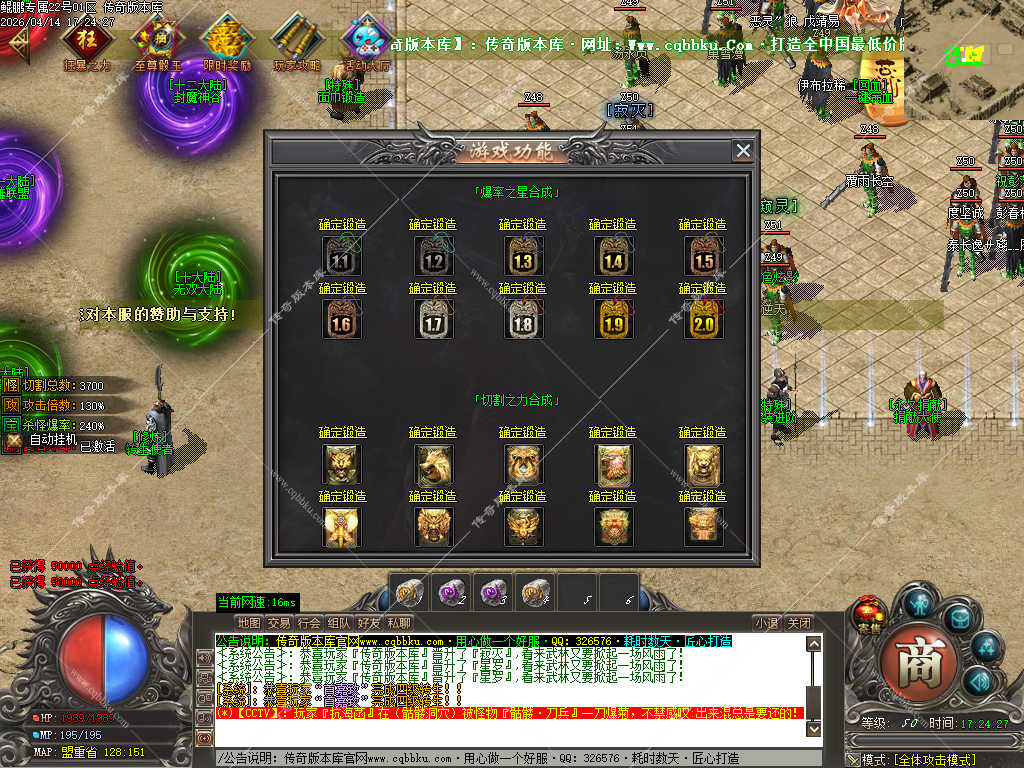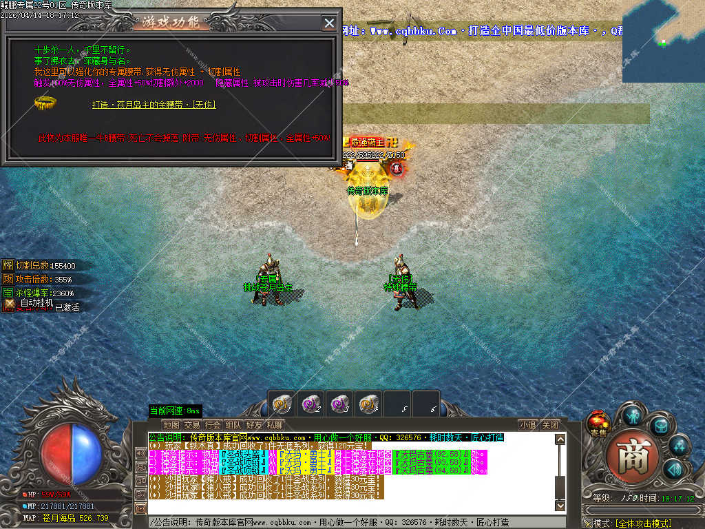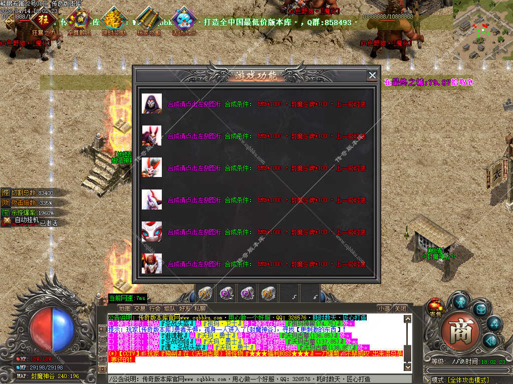 传奇版本库_传奇服务端_传奇版本下载_cqbbku.com » 02-118独家鲲鹏专属微变单职业传奇16大陆激情攻速智能假人陪玩客户端