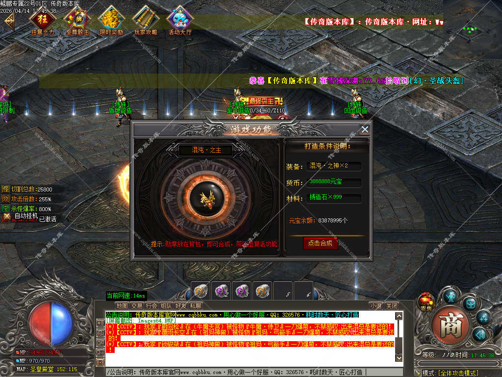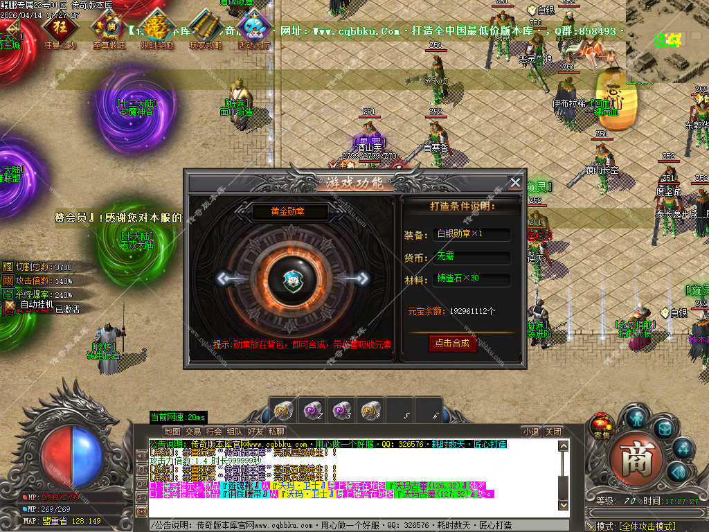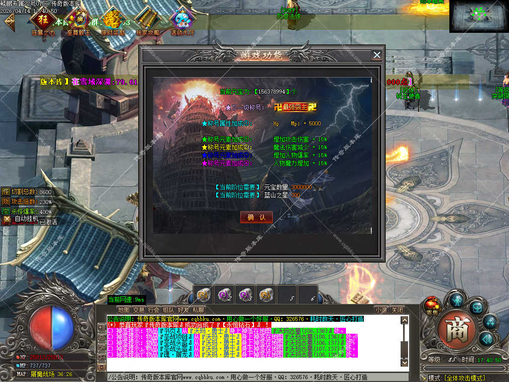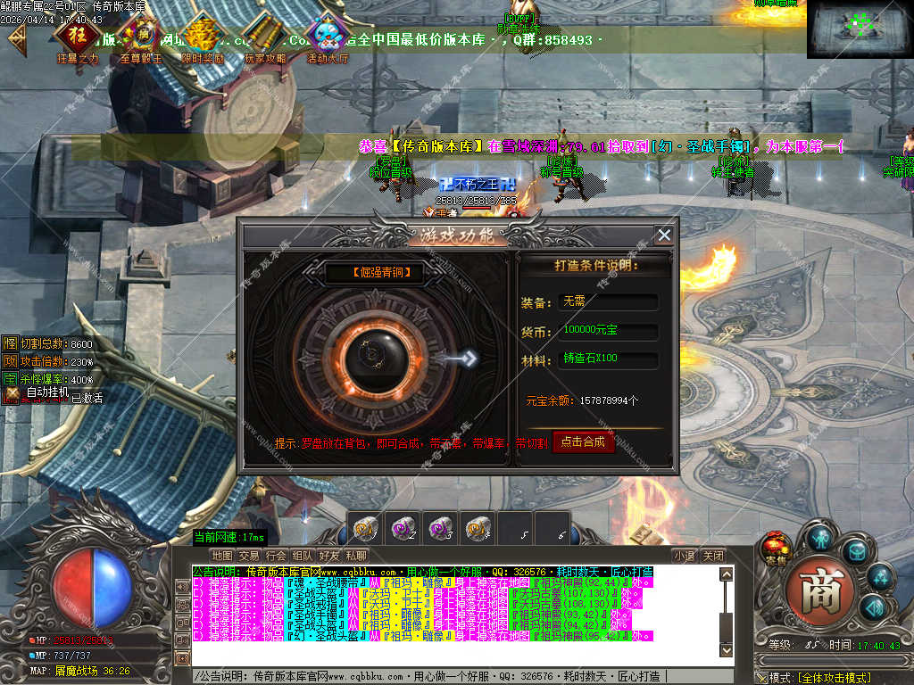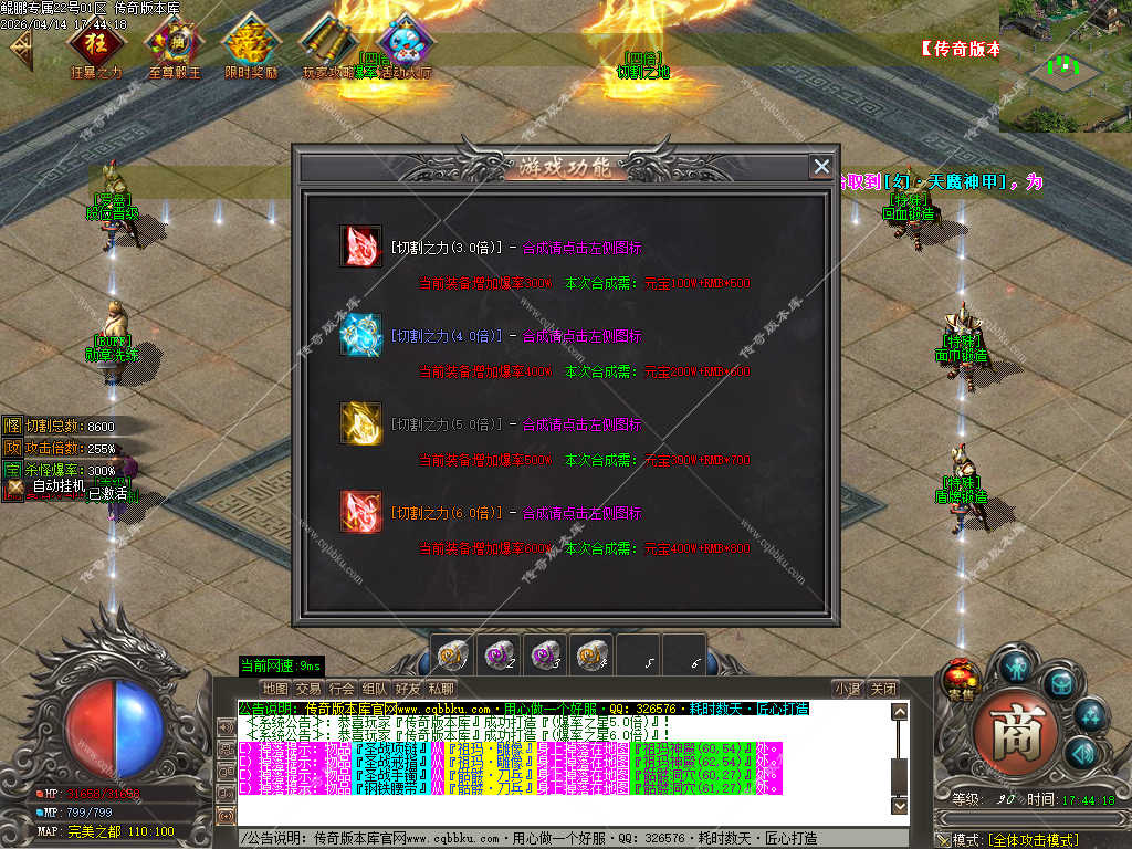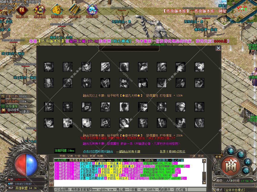 传奇版本库_传奇服务端_传奇版本下载_cqbbku.com » 02-118独家鲲鹏专属微变单职业传奇16大陆激情攻速智能假人陪玩客户端