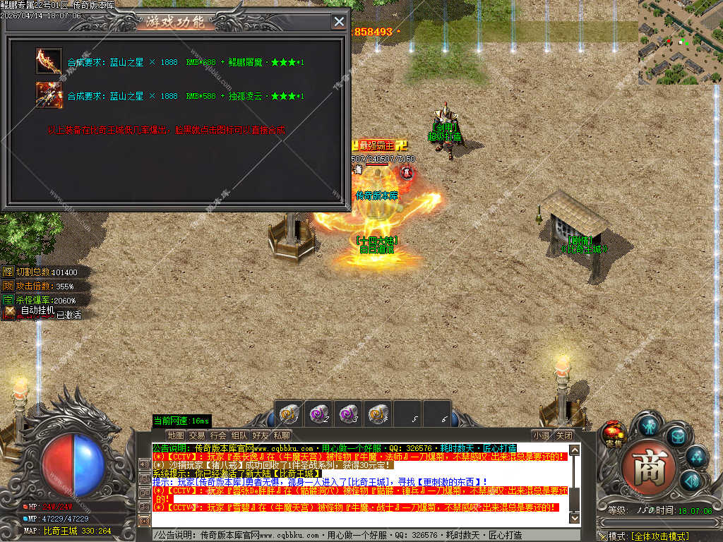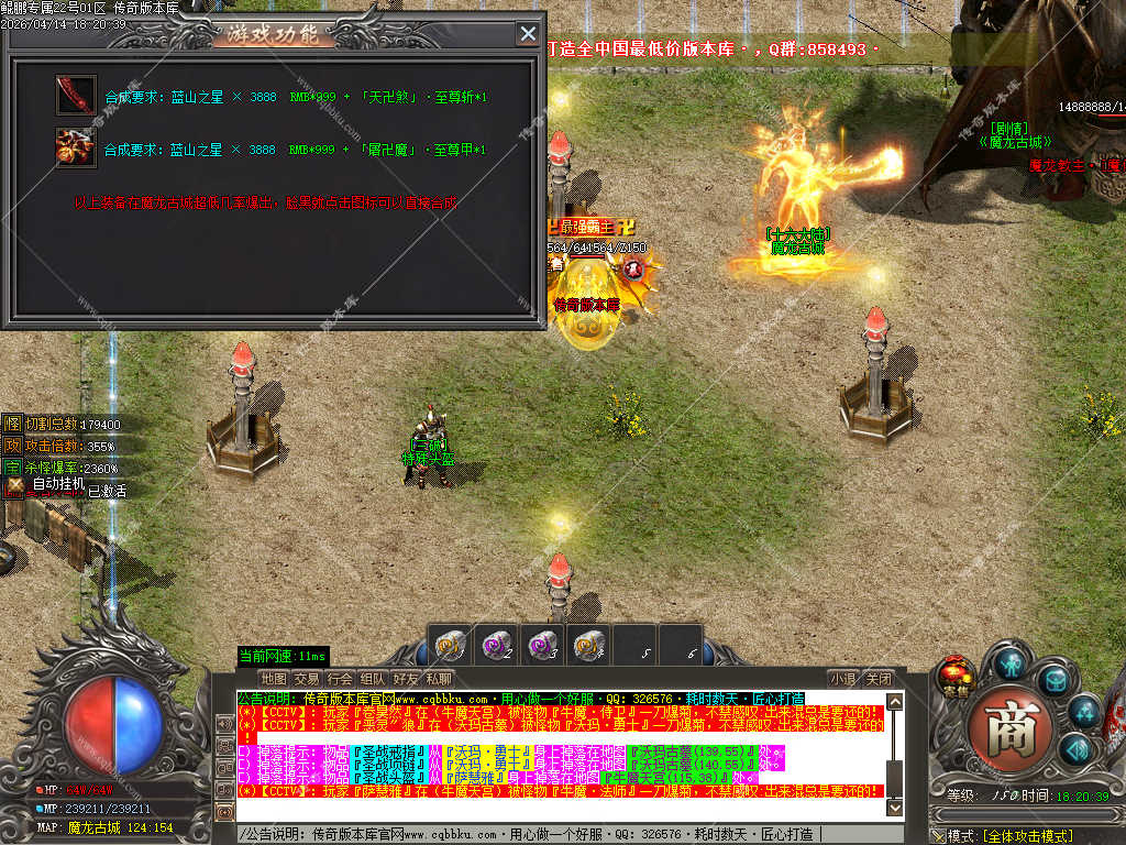 版本主打微变节奏,装备无复杂合成,高阶道具全靠野外BOSS与副本掉落,光柱频繁触发,散人也能逆袭。
