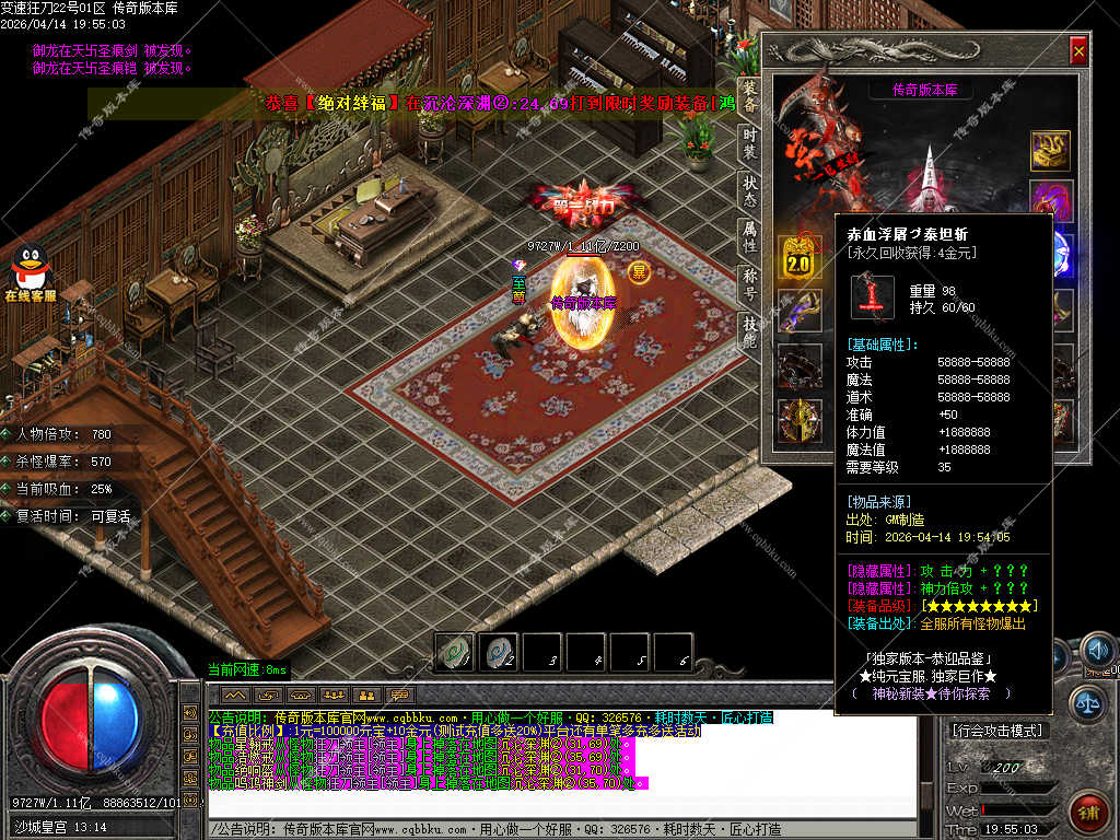 传奇版本库_传奇服务端_传奇版本下载_cqbbku.com » 02-119独家变速狂刀神器无限刀正版开区单职业智能假人陪玩开放三大陆传奇服务端