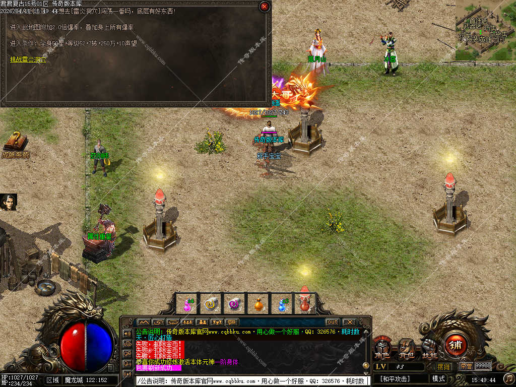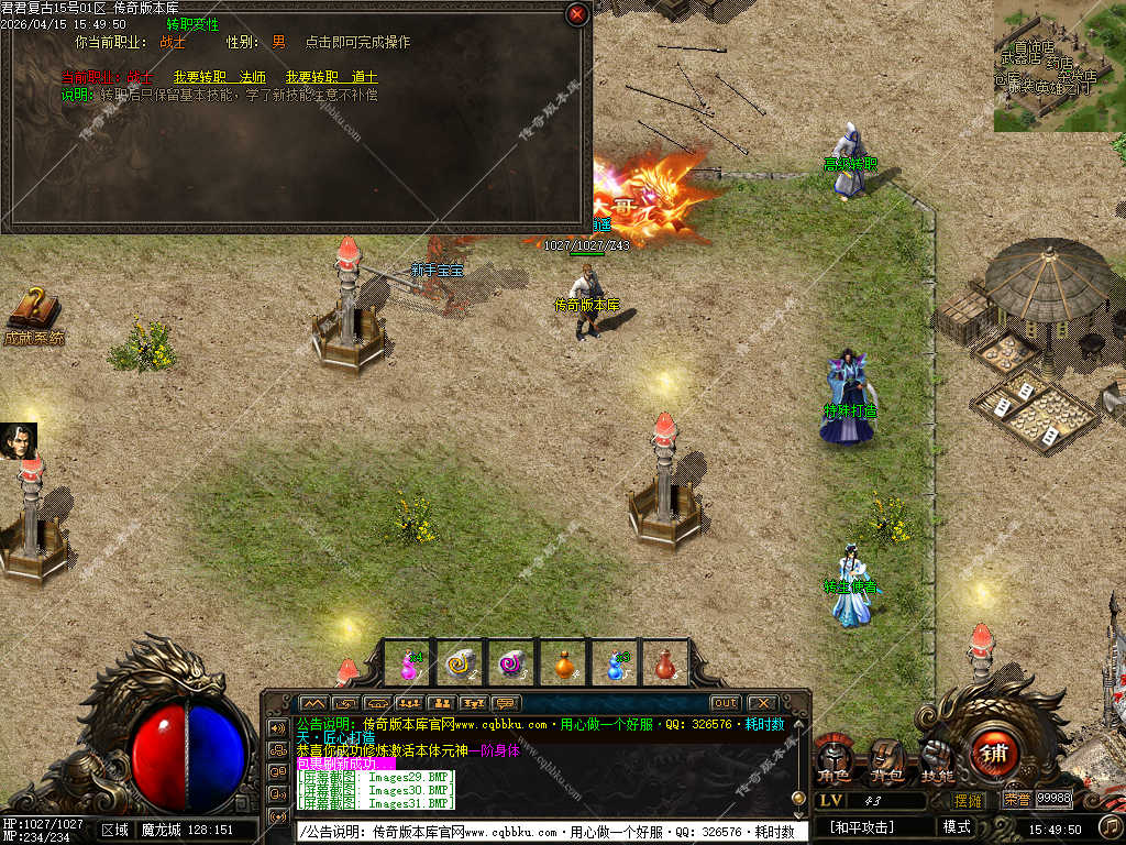 新手进入1.90君君复古传奇后,优先选择适合自己的职业(战士、法师、道士),