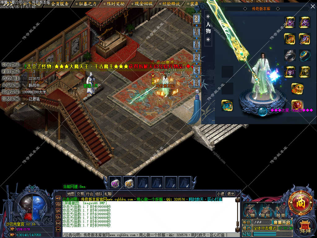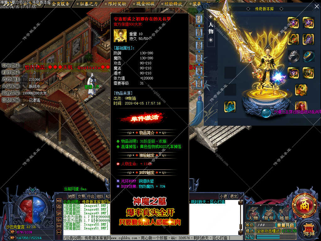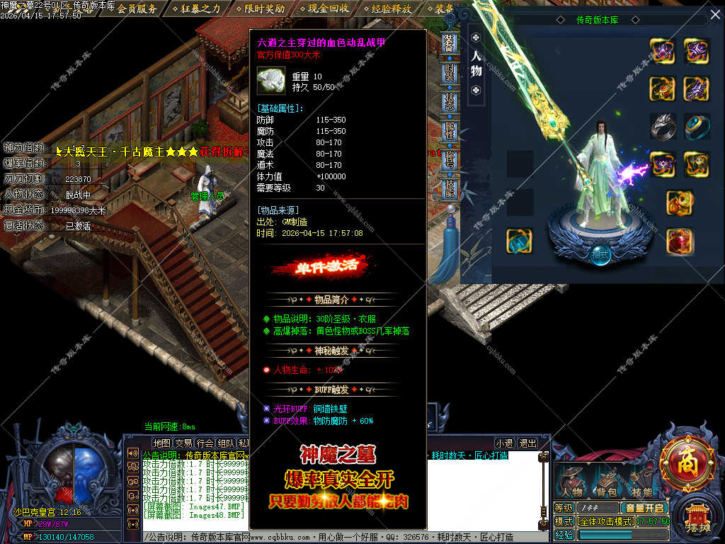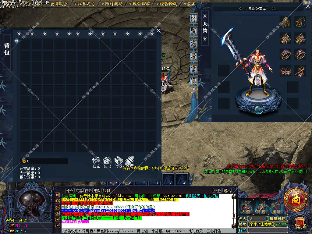 传奇版本库_传奇服务端_传奇版本下载_cqbbku.com » 02-122独家神魔之墓专属神器公益单职业传奇服务端-大背包-自动拾取回收-三大陆端