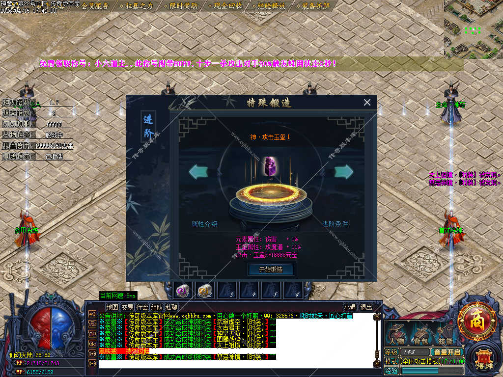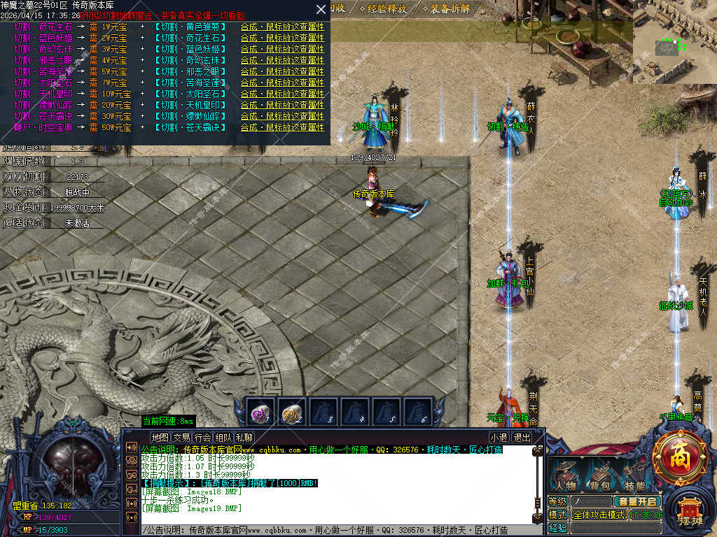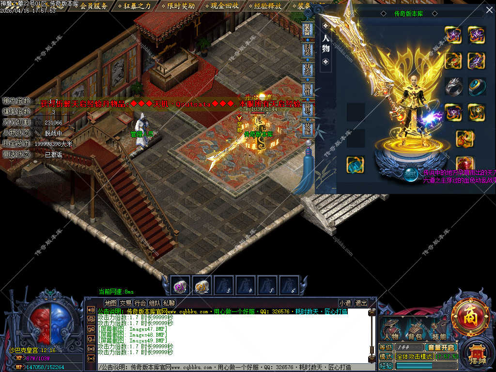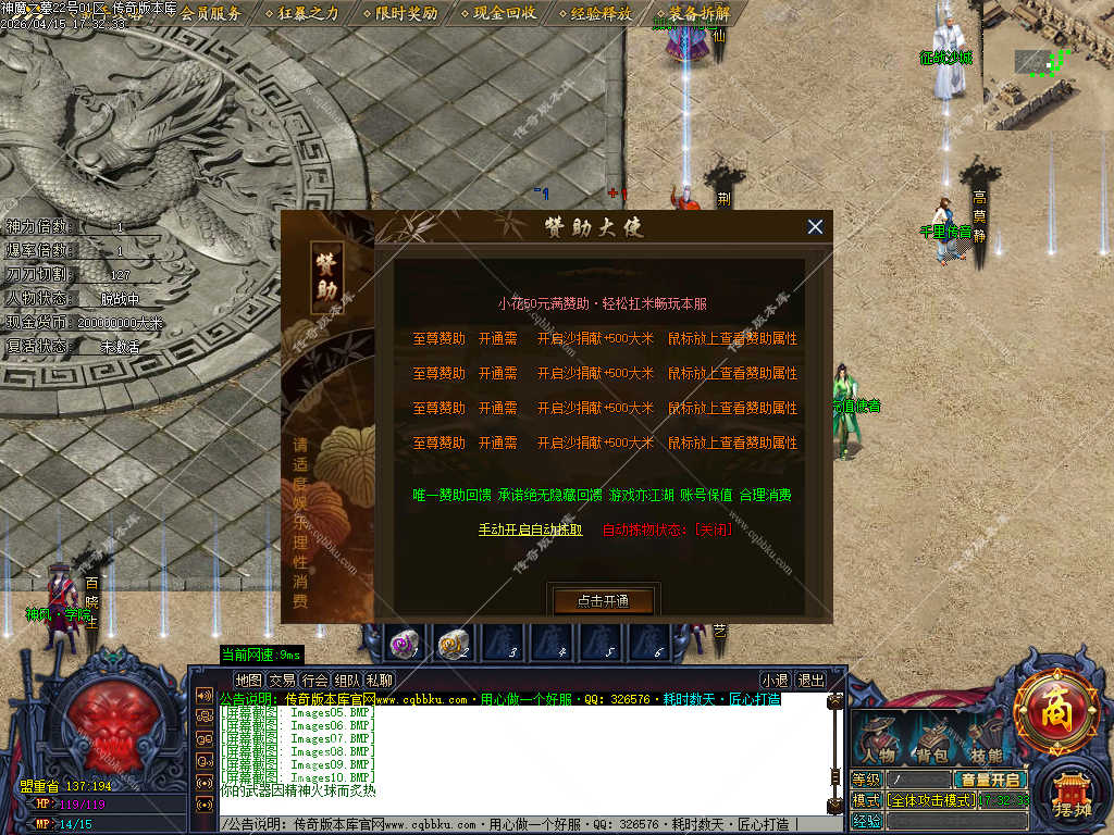 传奇版本库_传奇服务端_传奇版本下载_cqbbku.com » 02-122独家神魔之墓专属神器公益单职业传奇服务端-大背包-自动拾取回收-三大陆端