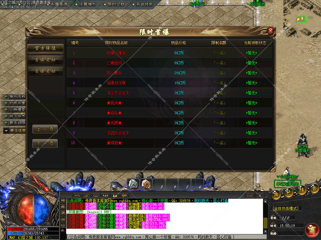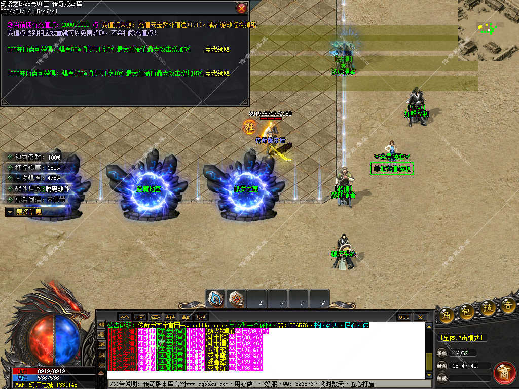 传奇版本库_传奇服务端_传奇版本下载_cqbbku.com » 02-125独家幻塔之城神器单职业炫酷光柱智能假人陪玩专属客户端