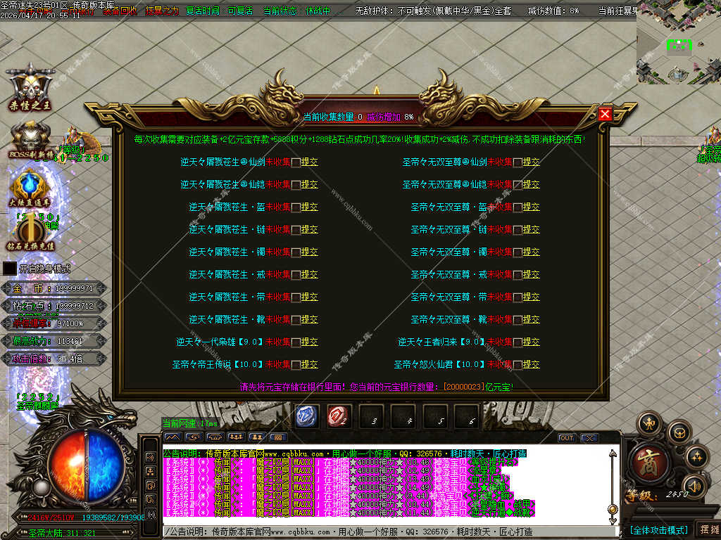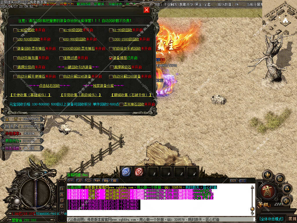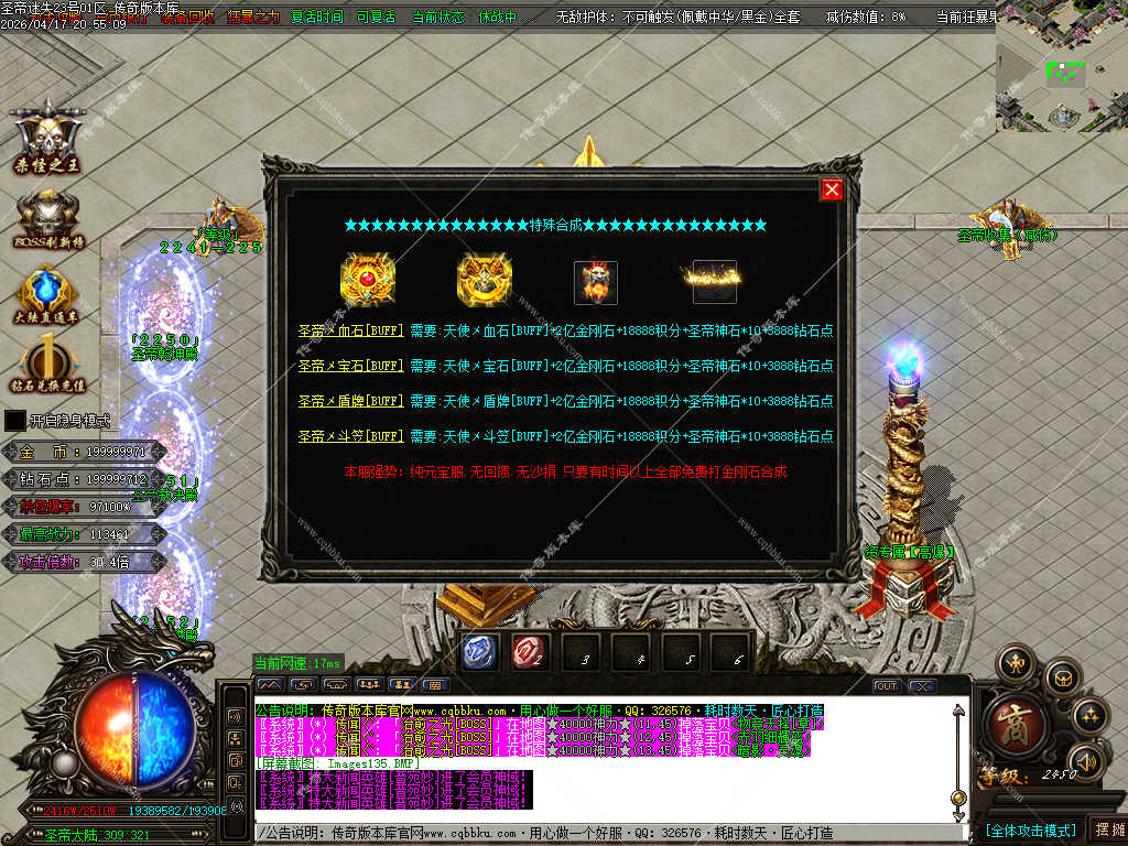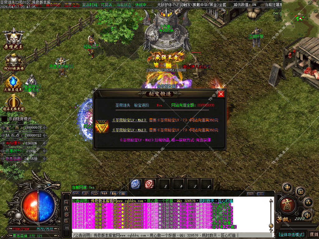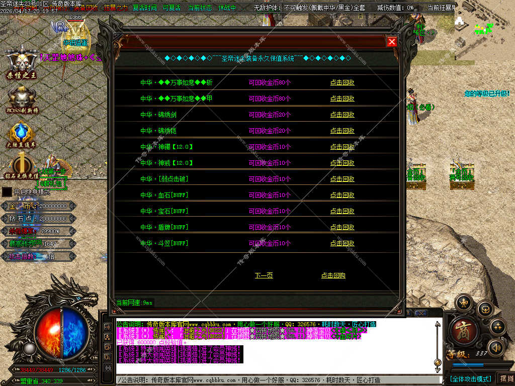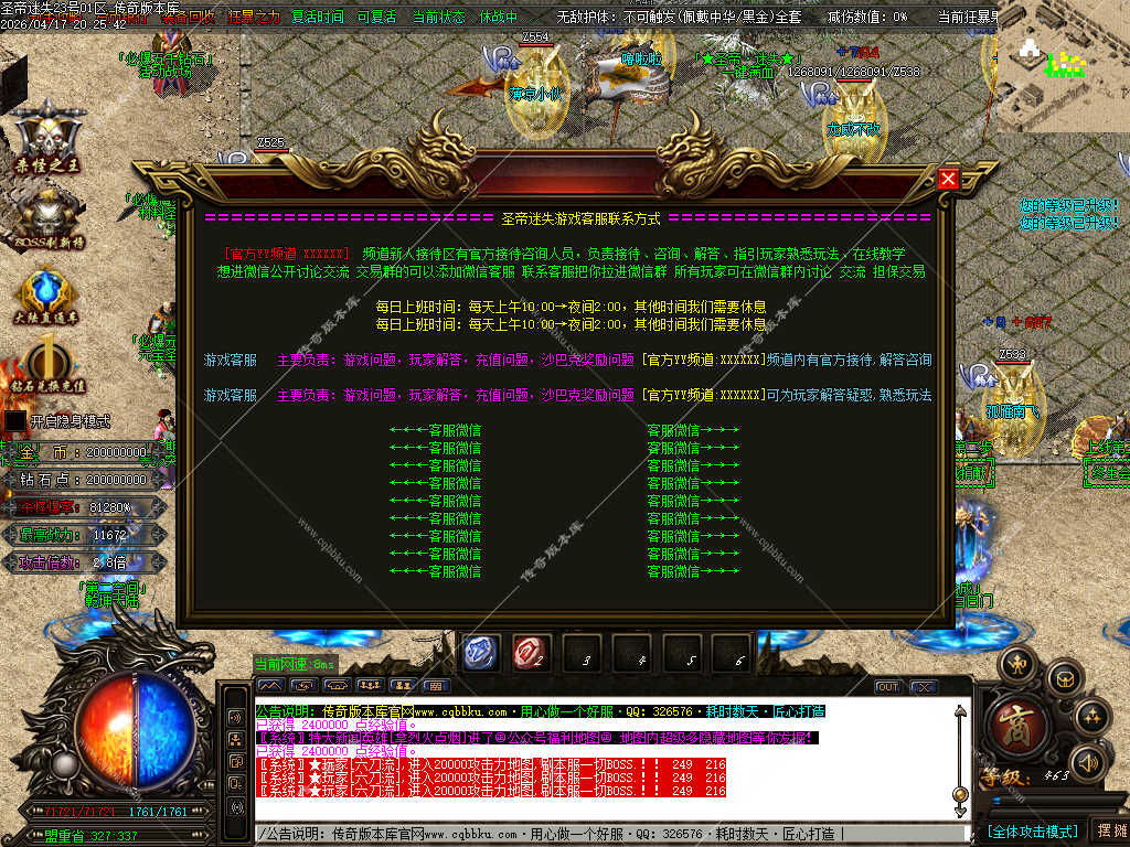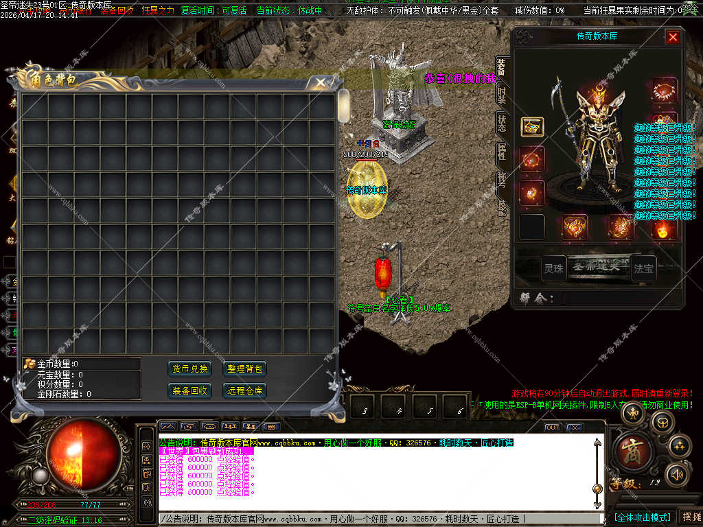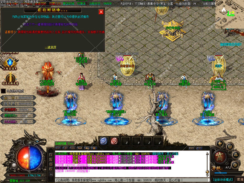 传奇版本库_传奇服务端_传奇版本下载_cqbbku.com » 02-132独家圣帝迷失超变无限刀单职业客户端智能假人陪玩高爆高攻速稳定流畅迷失爽玩