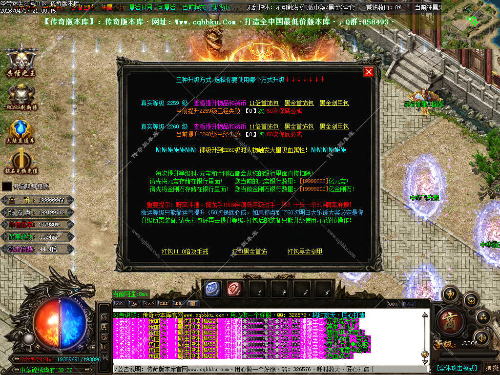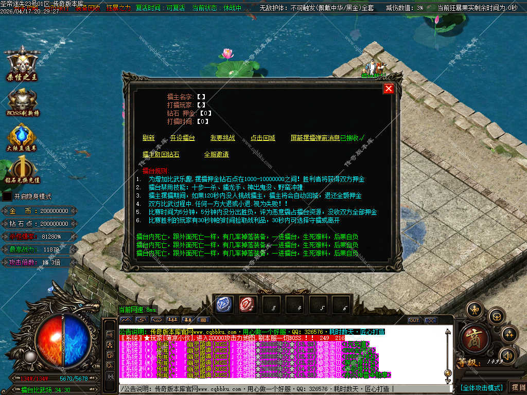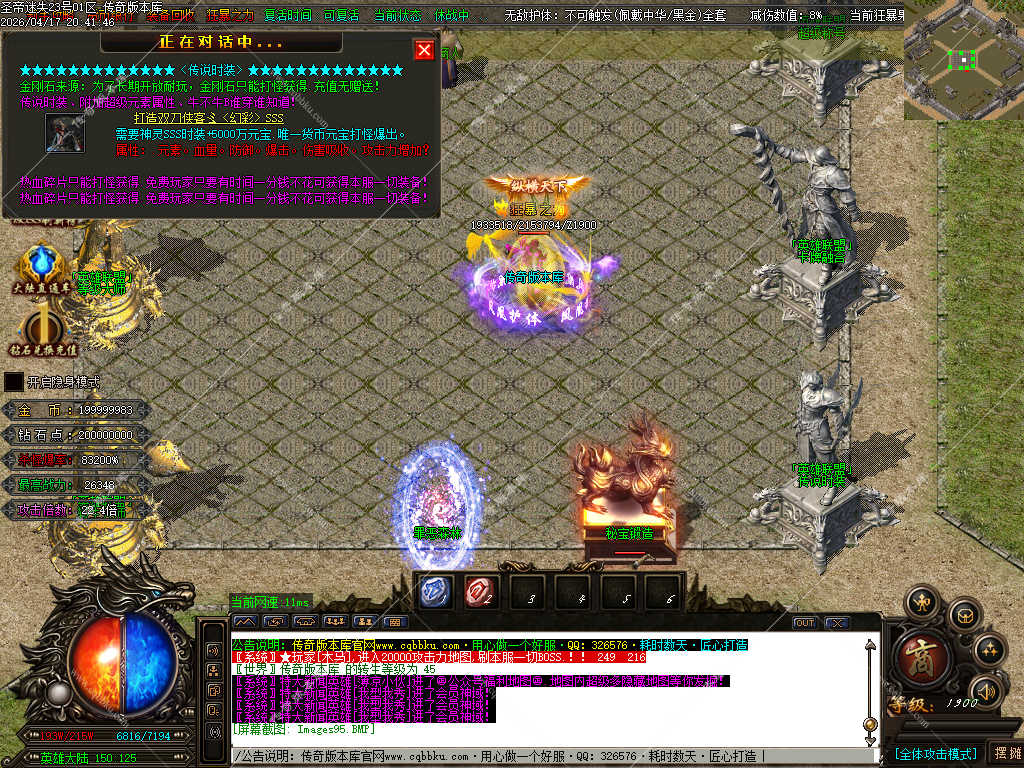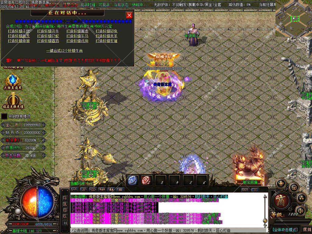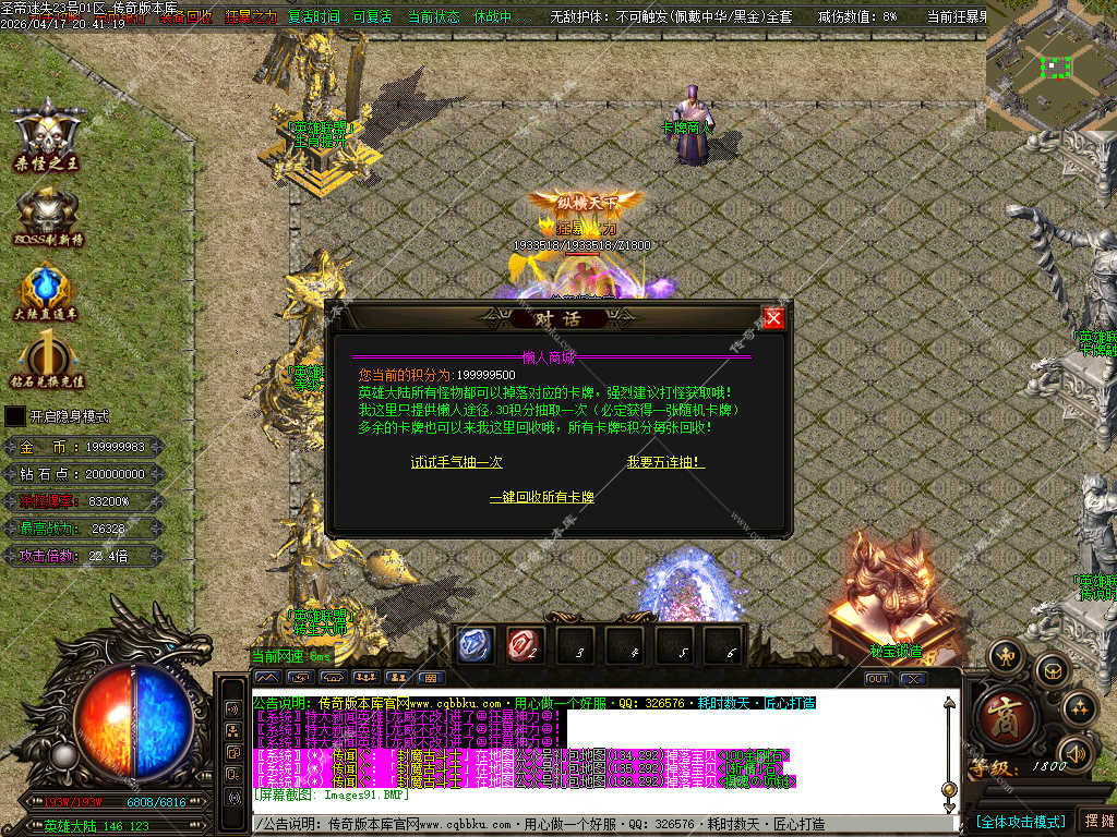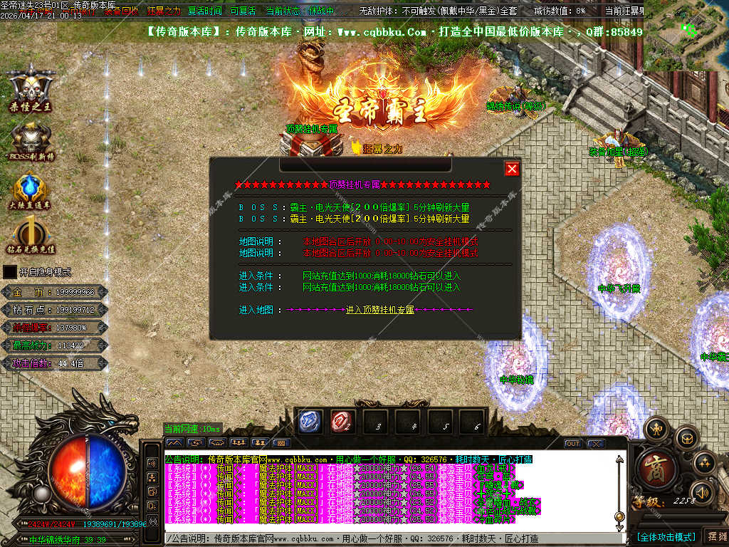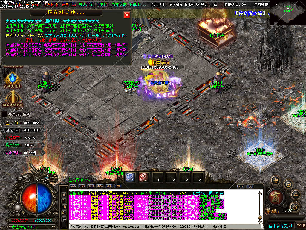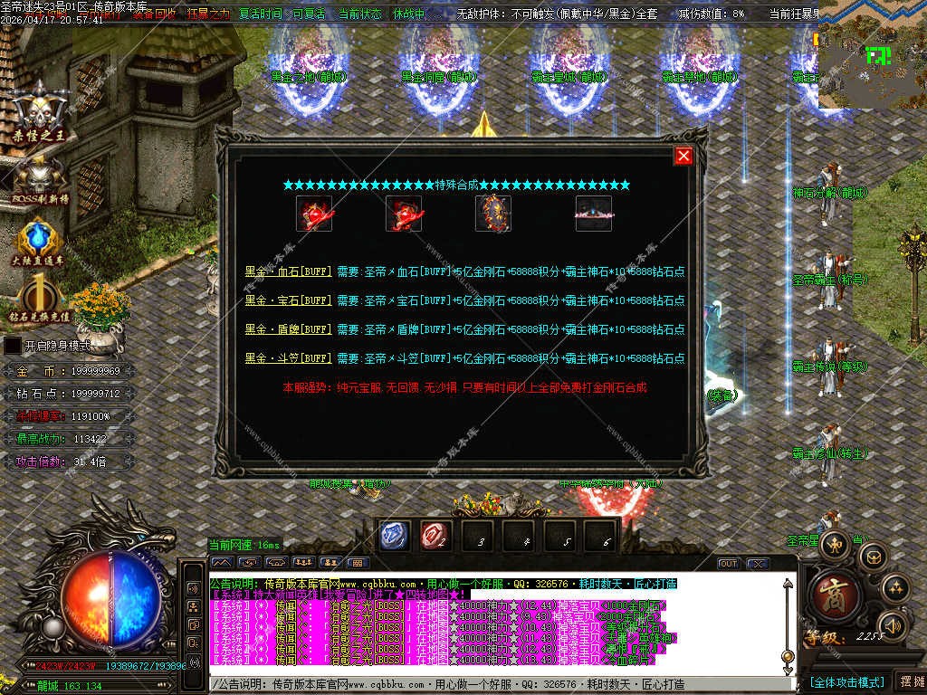 传奇版本库_传奇服务端_传奇版本下载_cqbbku.com » 02-132独家圣帝迷失超变无限刀单职业客户端智能假人陪玩高爆高攻速稳定流畅迷失爽玩