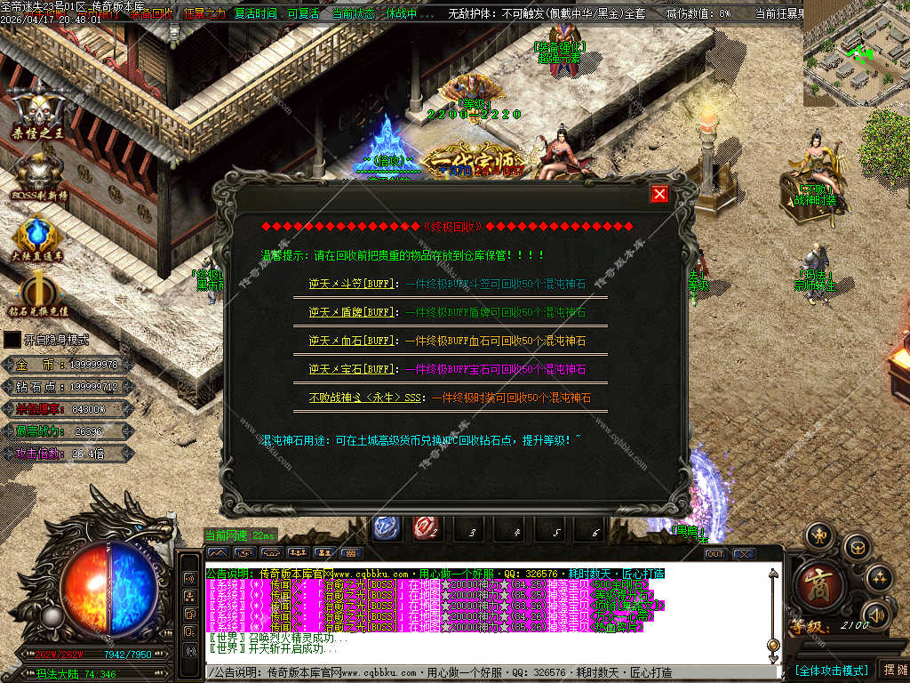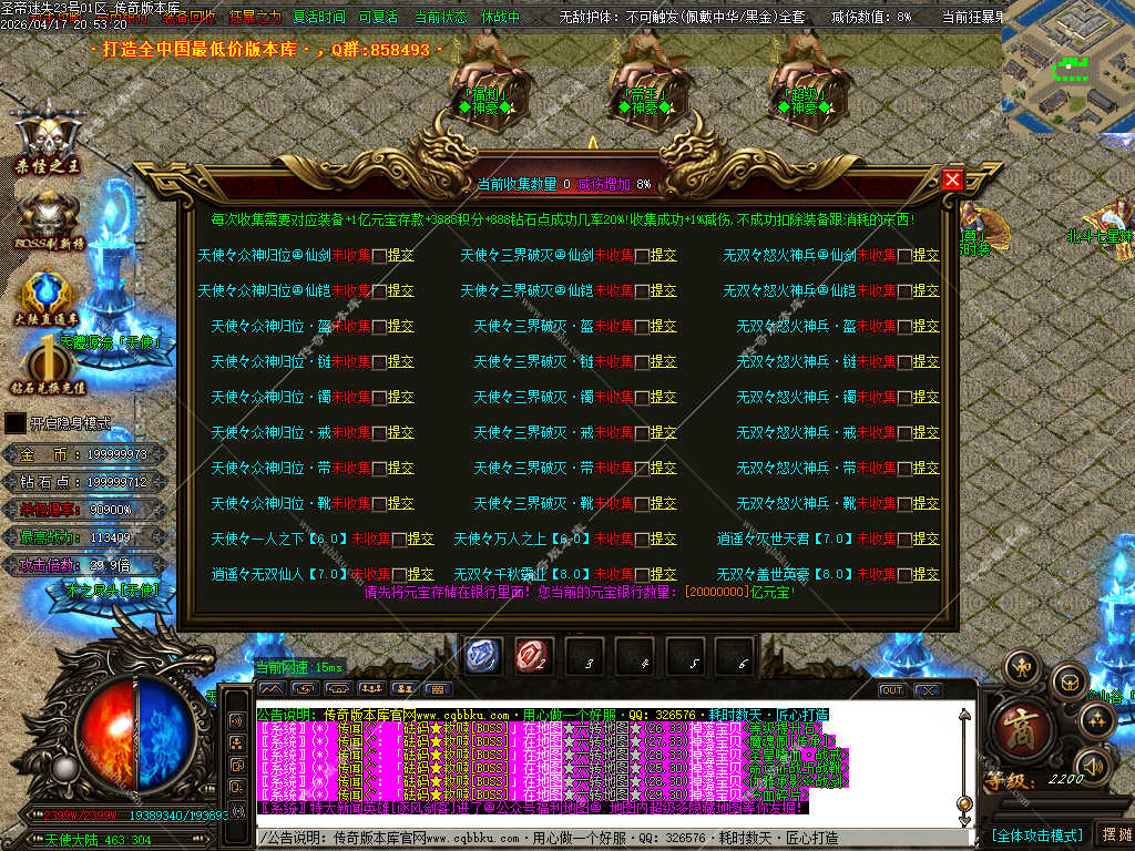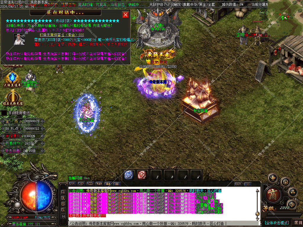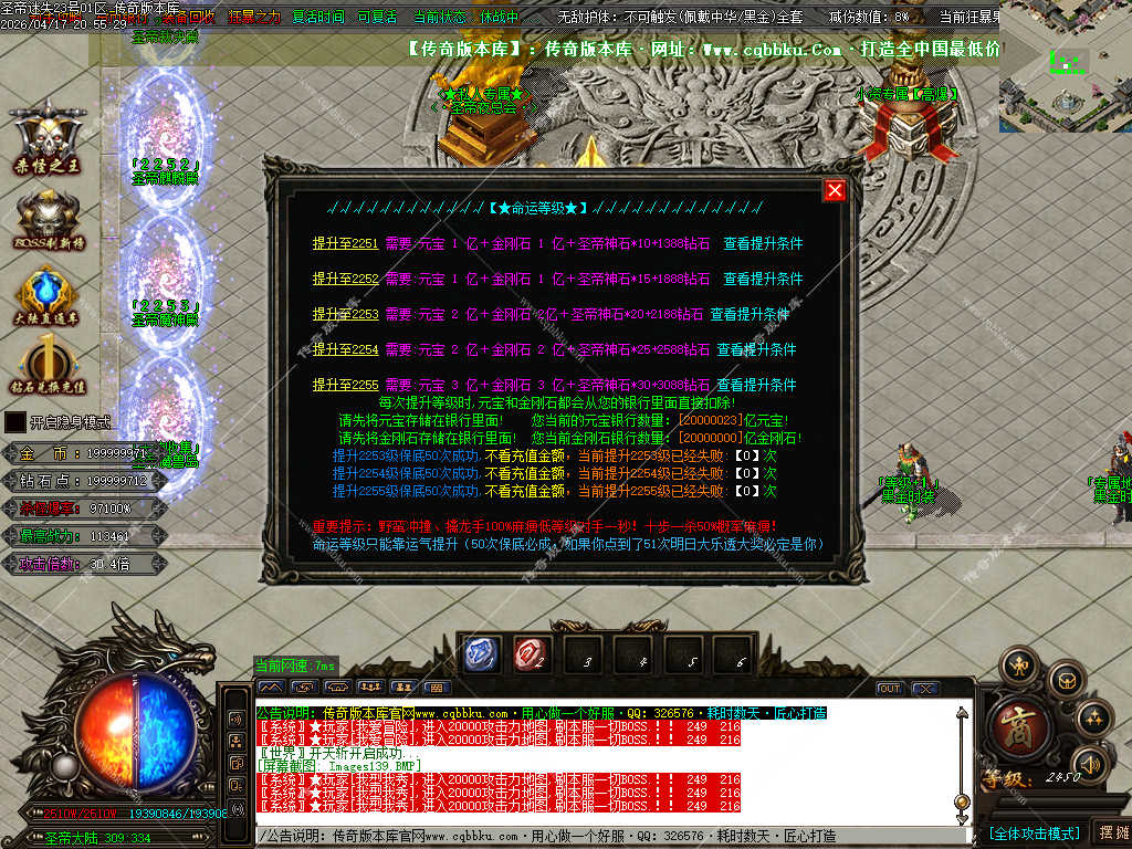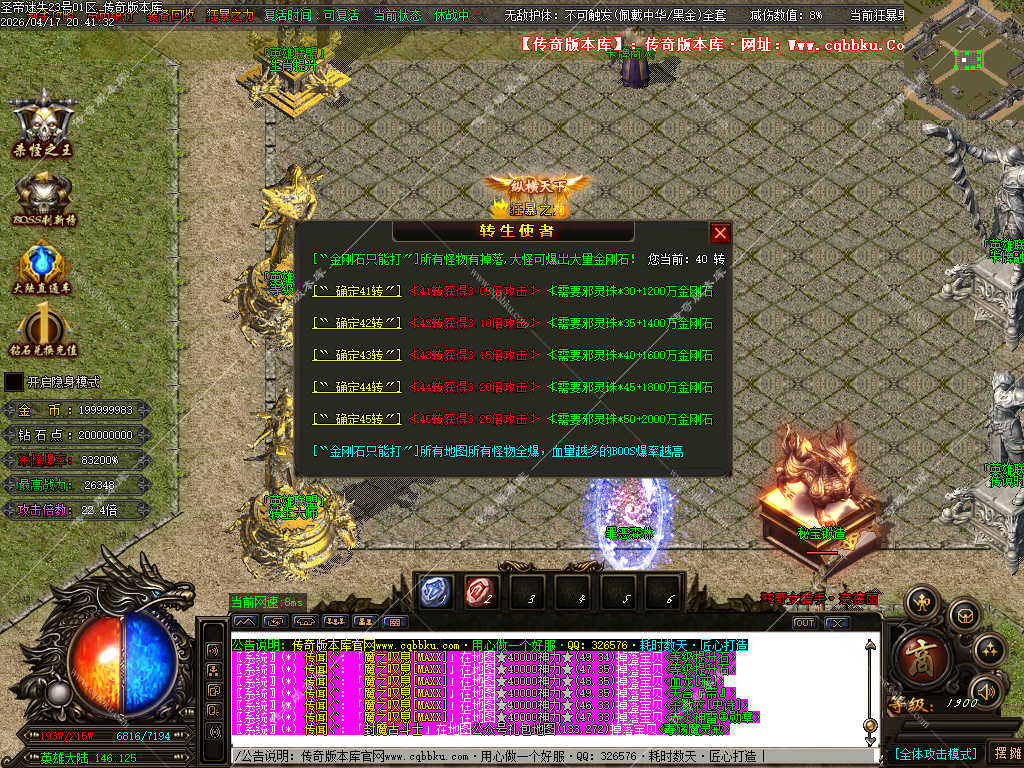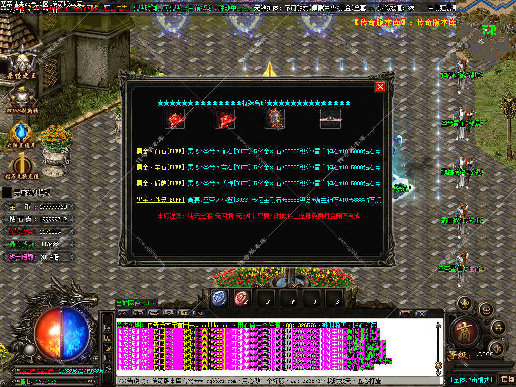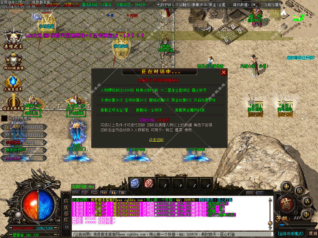 传奇版本库_传奇服务端_传奇版本下载_cqbbku.com » 02-132独家圣帝迷失超变无限刀单职业客户端智能假人陪玩高爆高攻速稳定流畅迷失爽玩