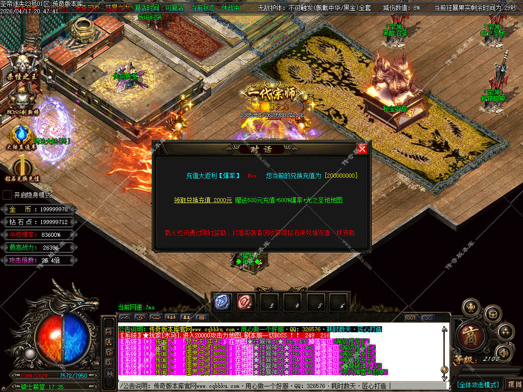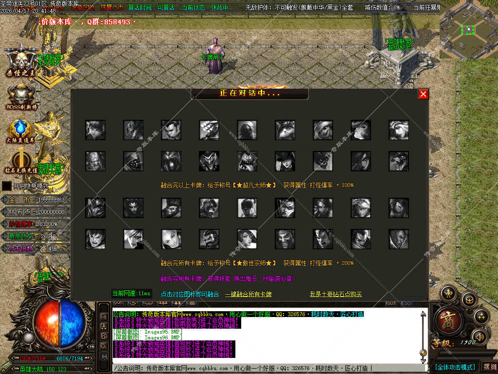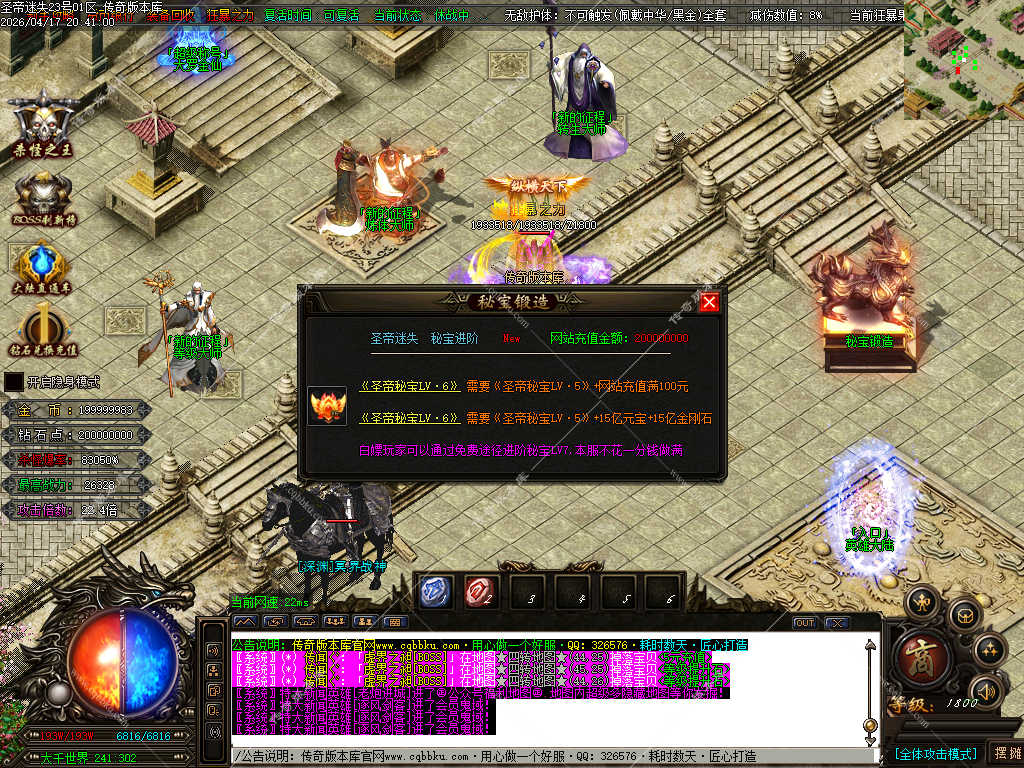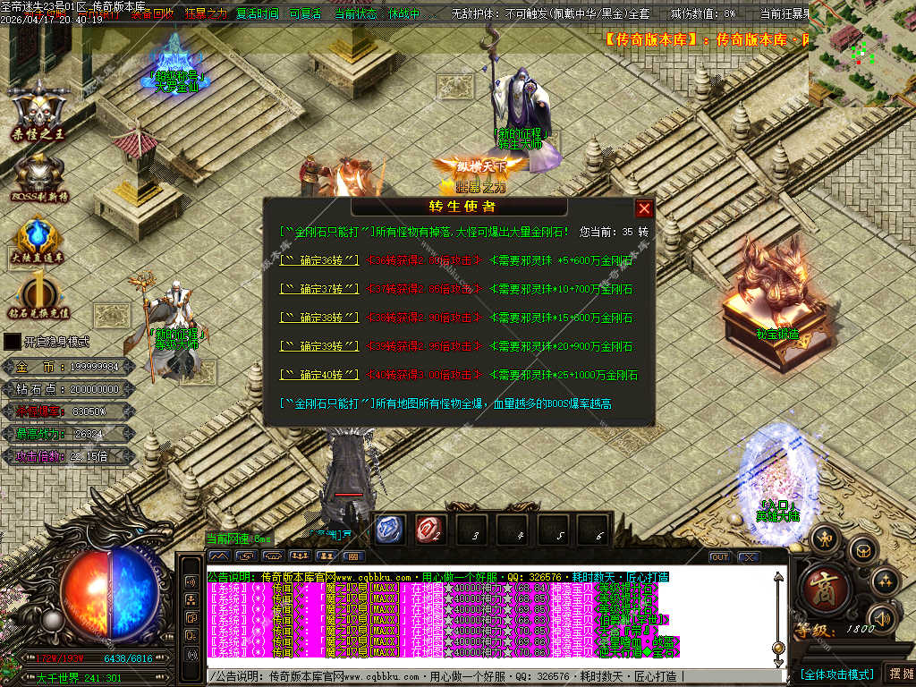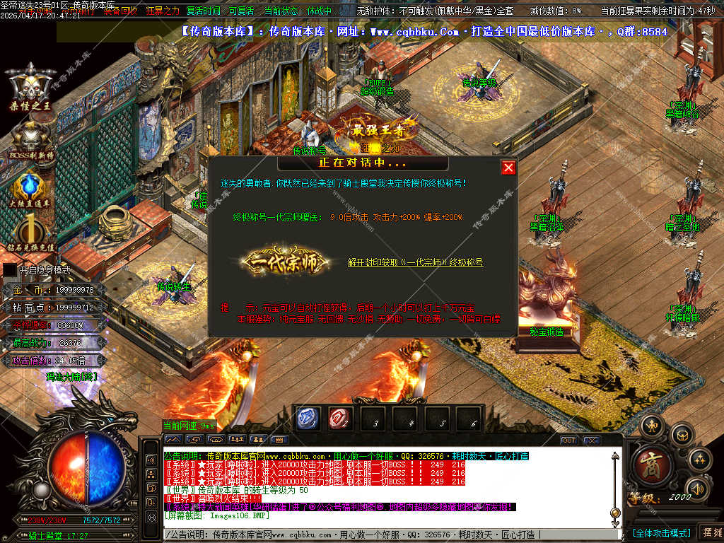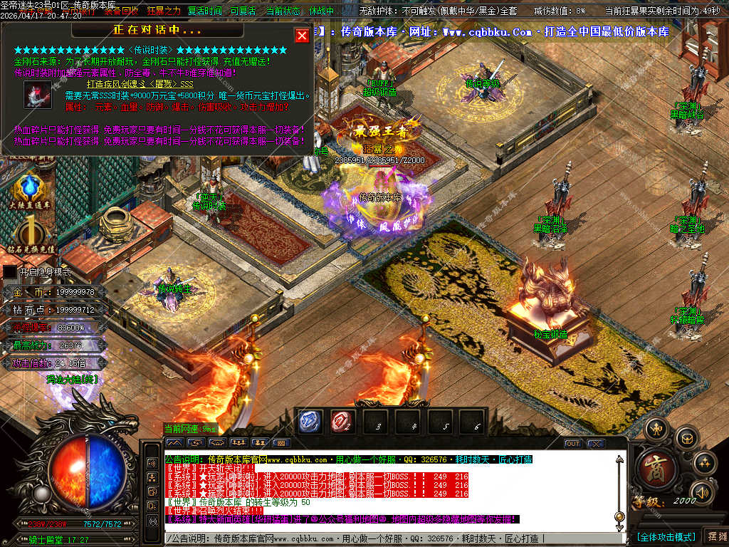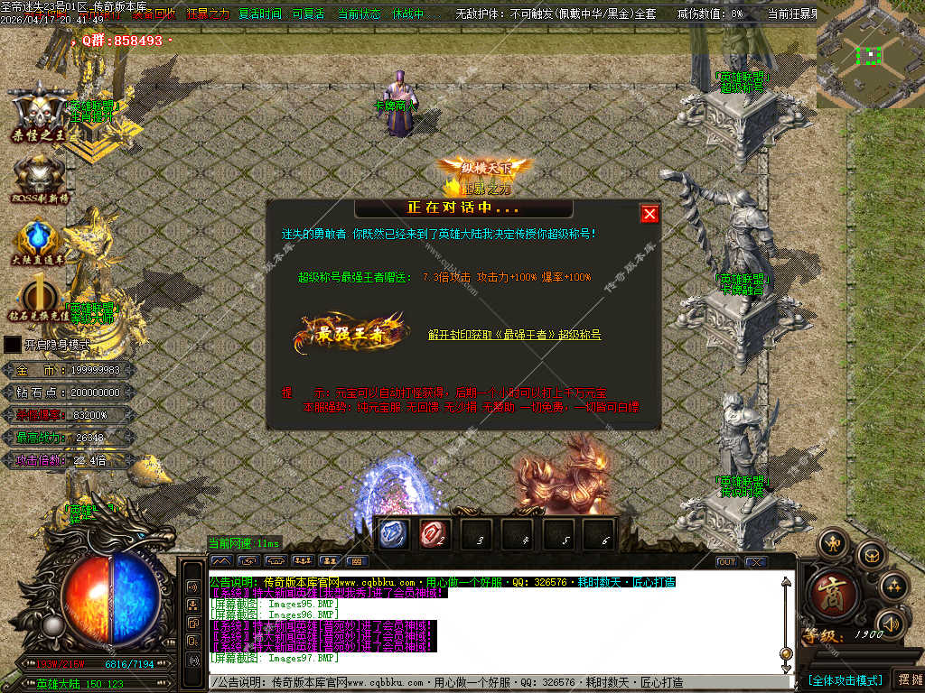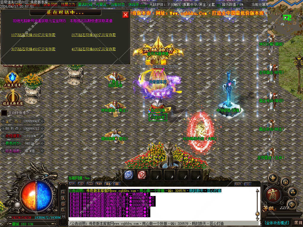 传奇版本库_传奇服务端_传奇版本下载_cqbbku.com » 02-132独家圣帝迷失超变无限刀单职业客户端智能假人陪玩高爆高攻速稳定流畅迷失爽玩