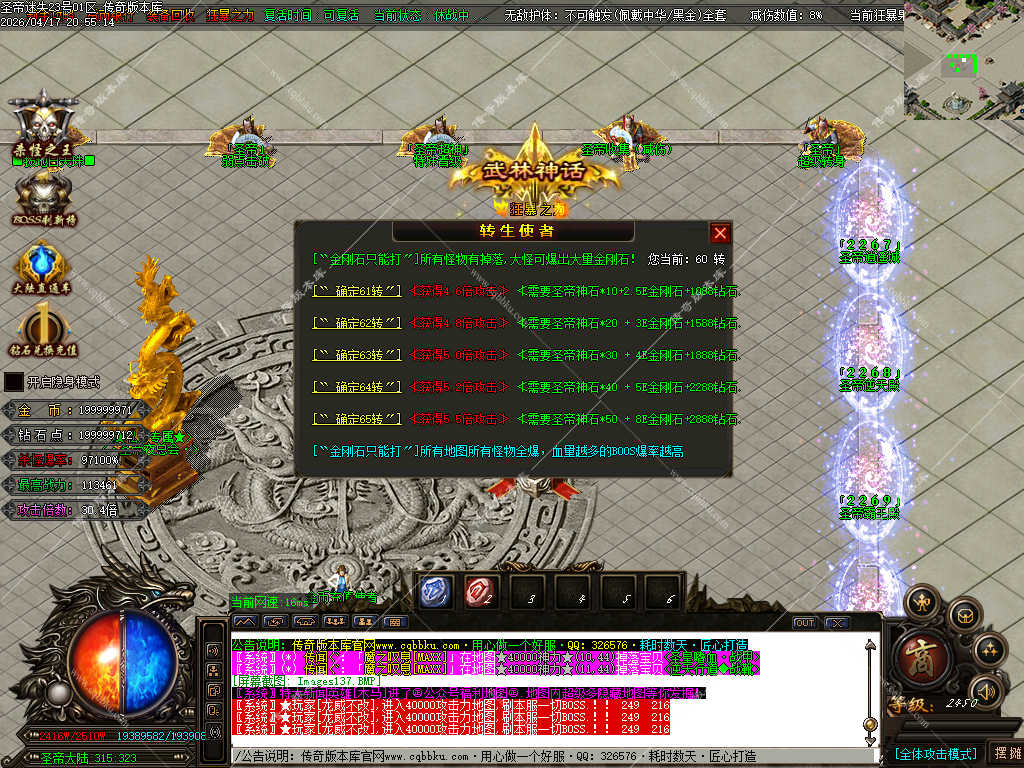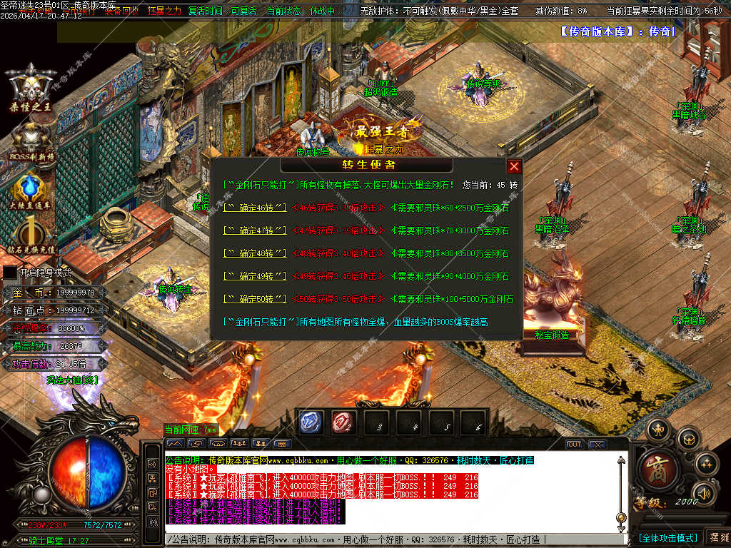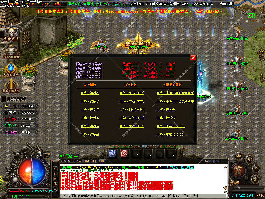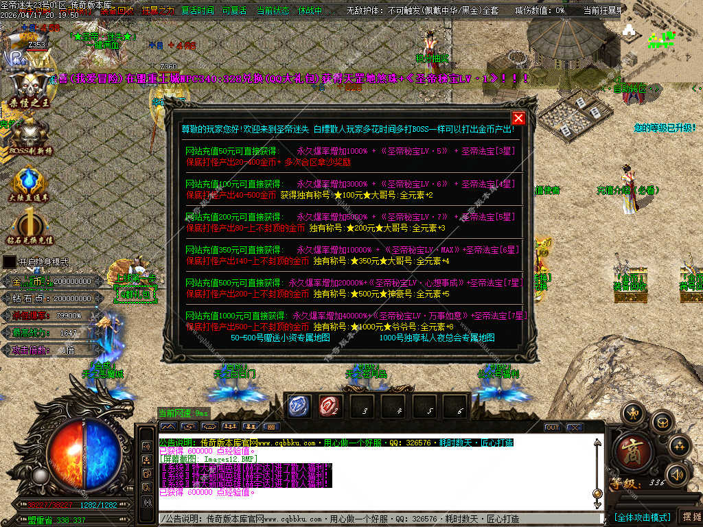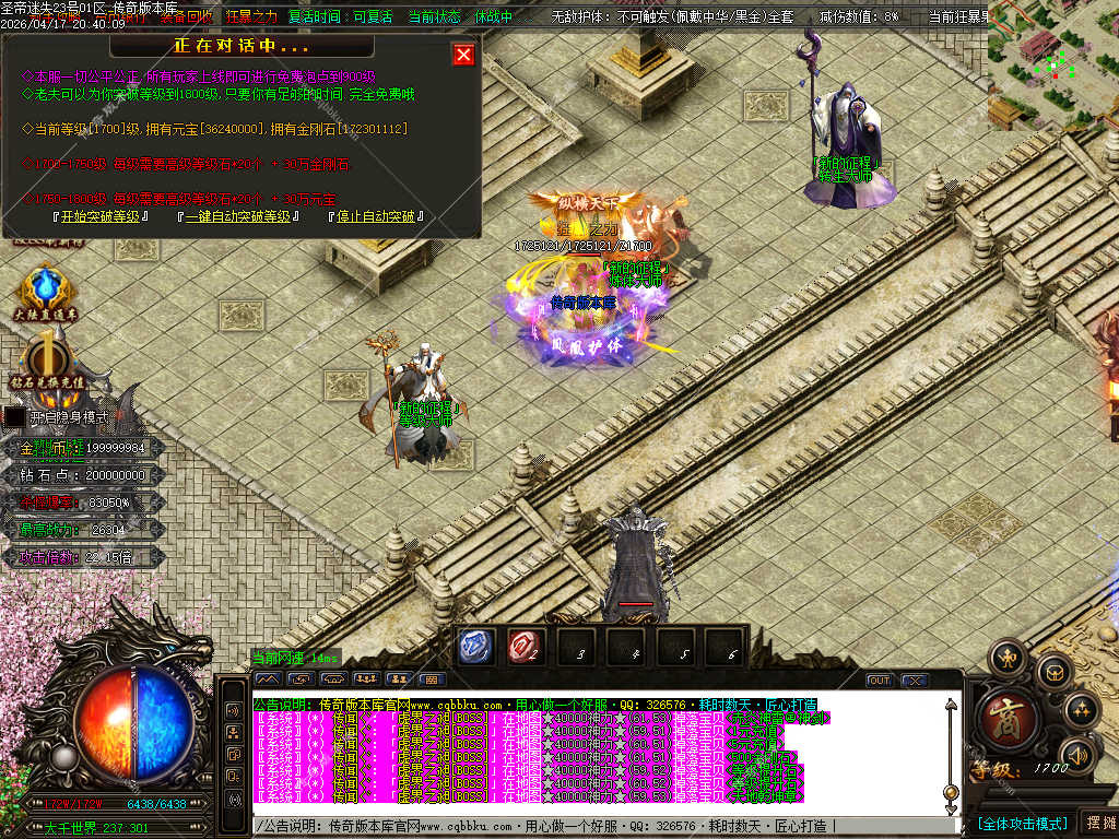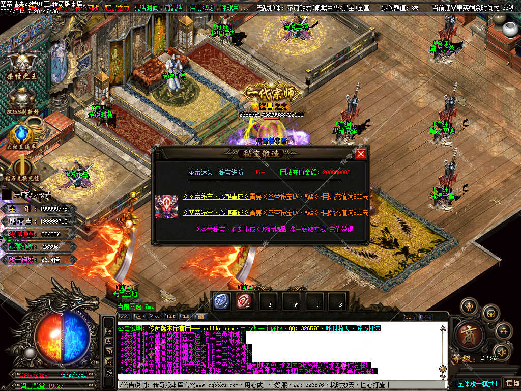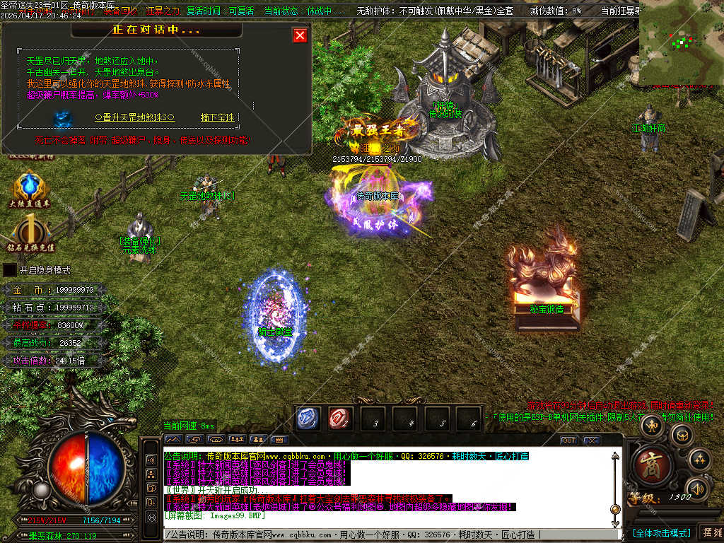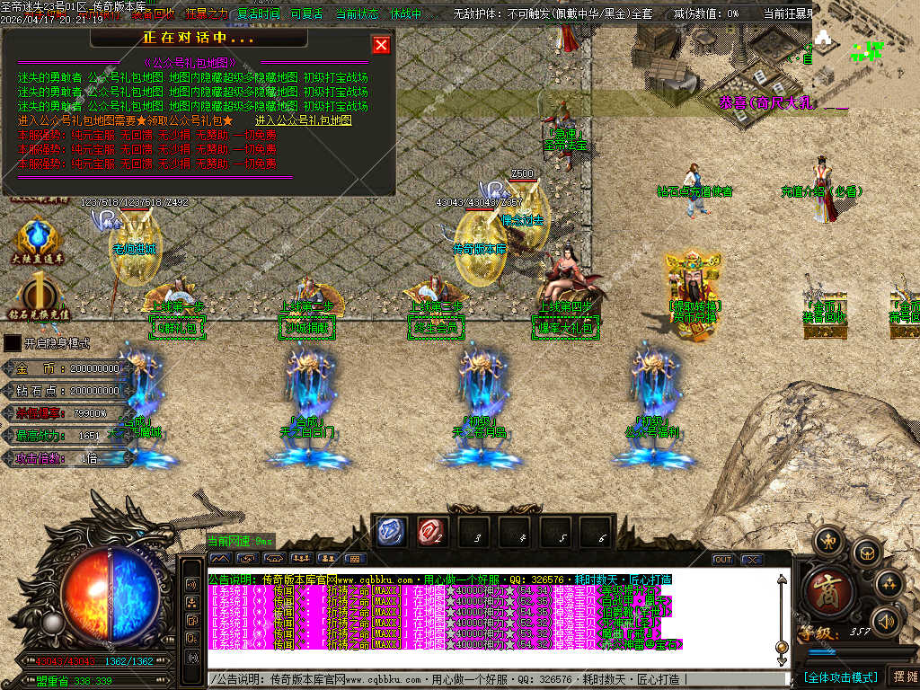 传奇版本库_传奇服务端_传奇版本下载_cqbbku.com » 02-132独家圣帝迷失超变无限刀单职业客户端智能假人陪玩高爆高攻速稳定流畅迷失爽玩