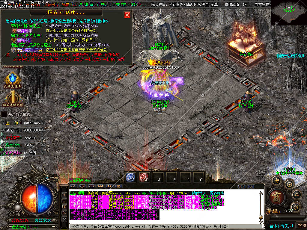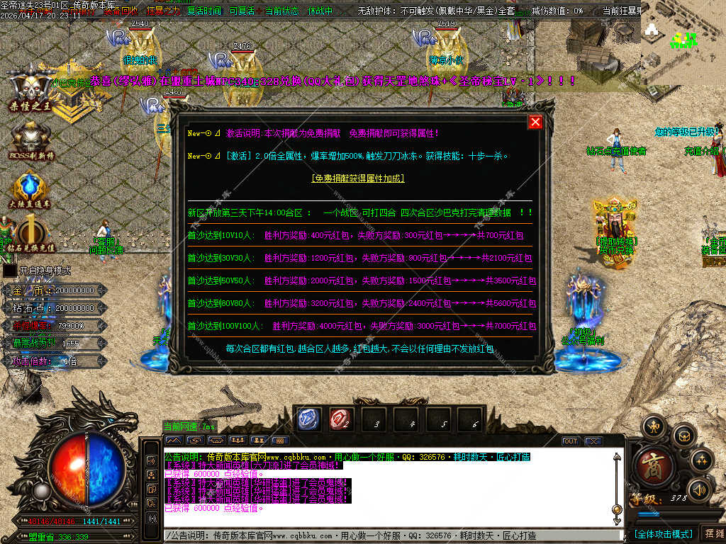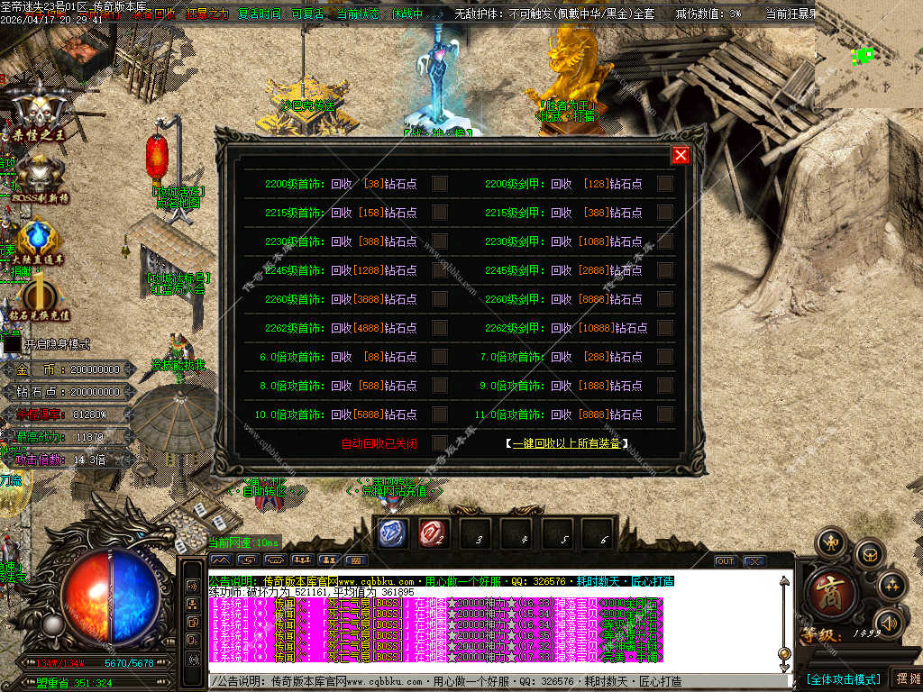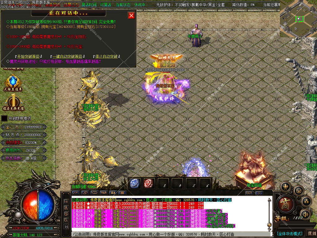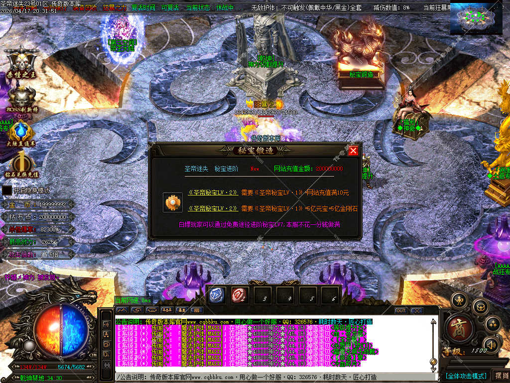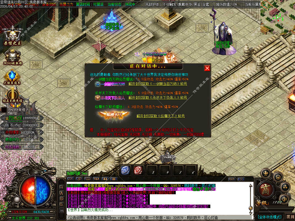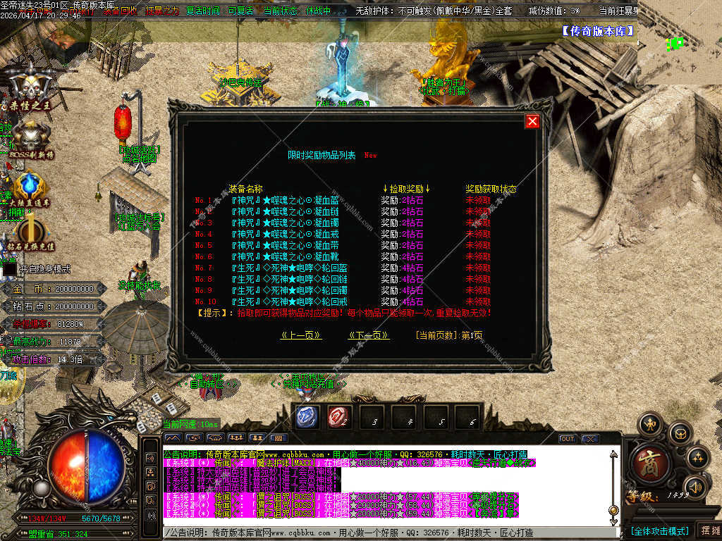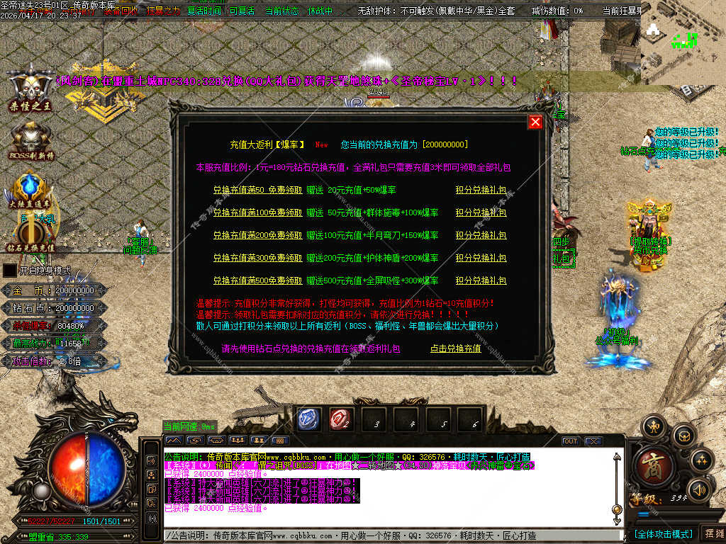 传奇版本库_传奇服务端_传奇版本下载_cqbbku.com » 02-132独家圣帝迷失超变无限刀单职业客户端智能假人陪玩高爆高攻速稳定流畅迷失爽玩