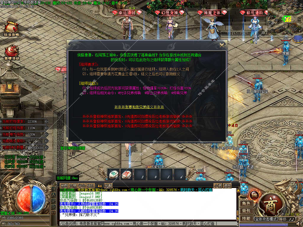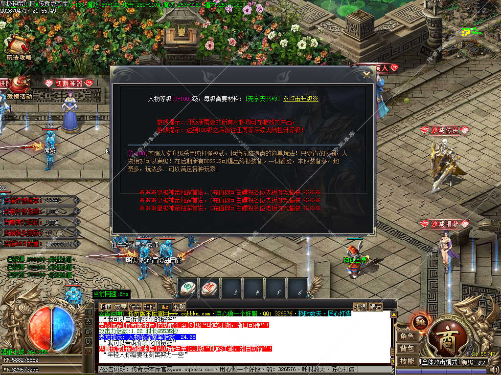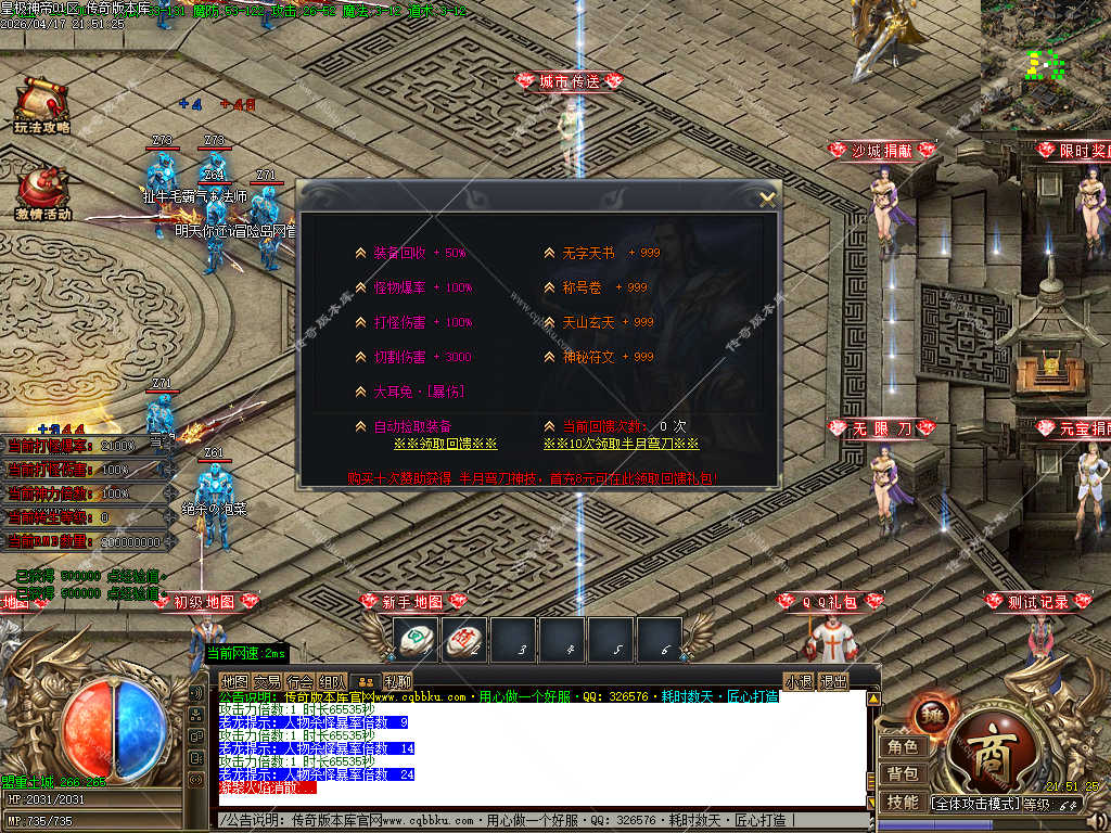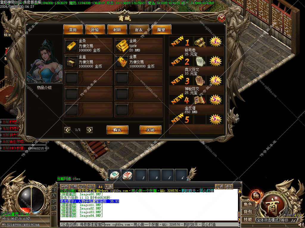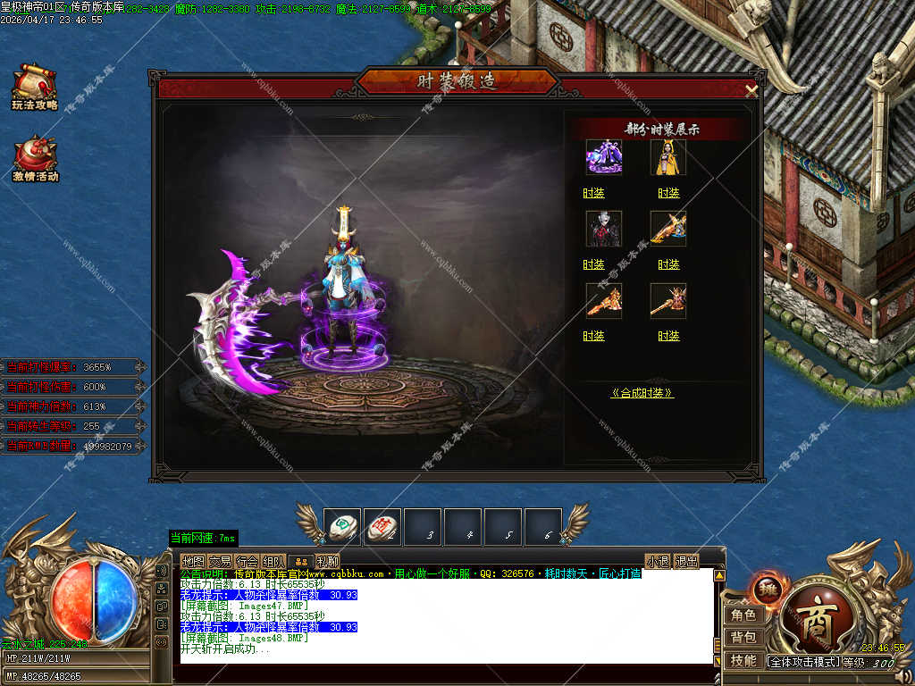 传奇版本库_传奇服务端_传奇版本下载_cqbbku.com » 02-133独家皇极神帝专属神器攻速无限刀单职业传奇客户端带假人陪玩超多大陆