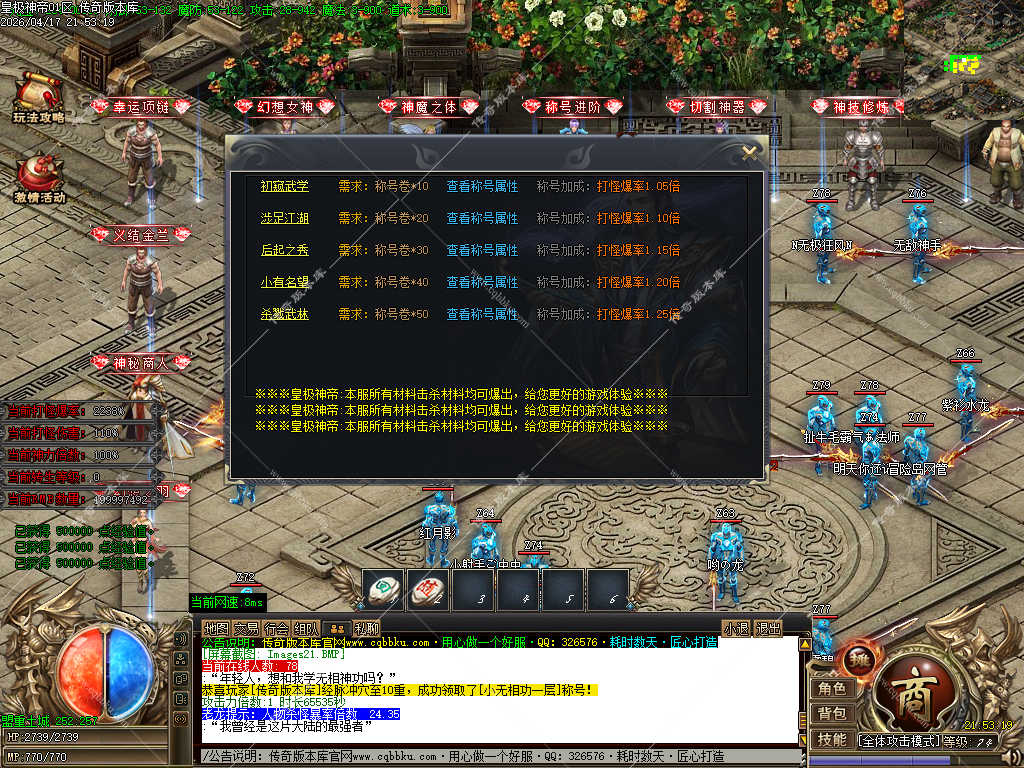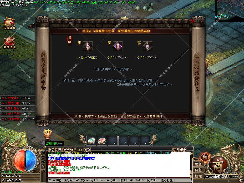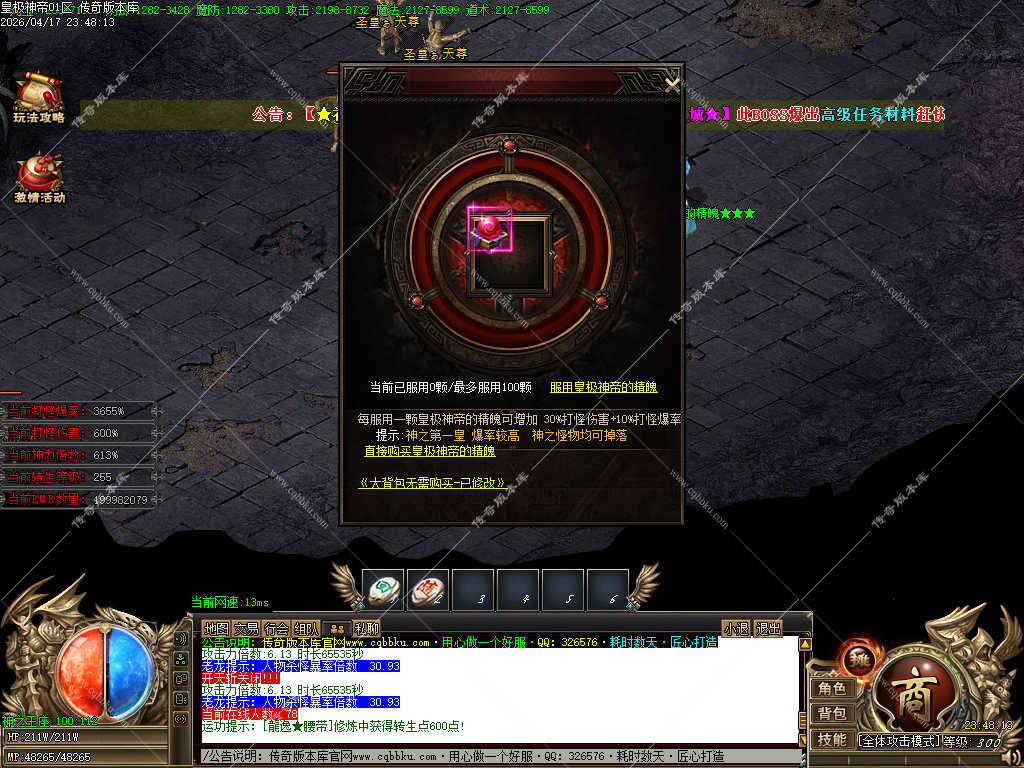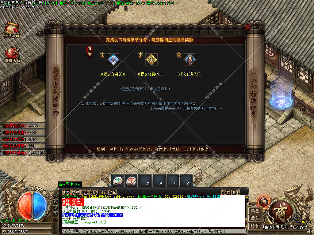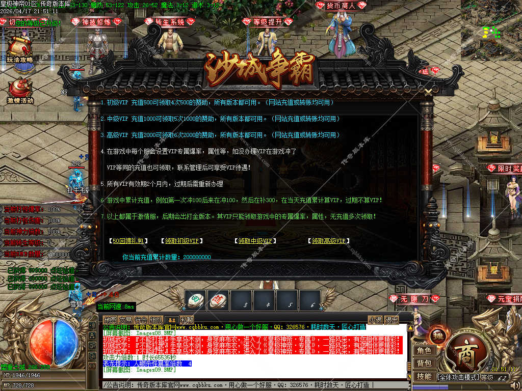 传奇版本库_传奇服务端_传奇版本下载_cqbbku.com » 02-133独家皇极神帝专属神器攻速无限刀单职业传奇客户端带假人陪玩超多大陆
