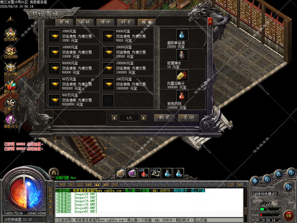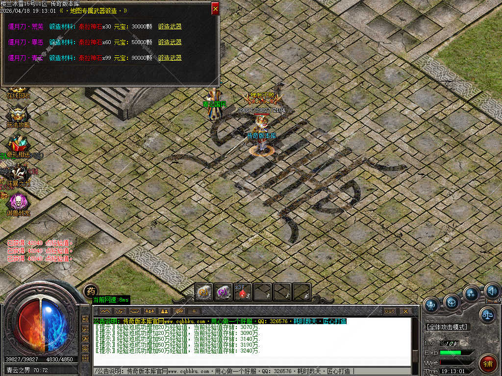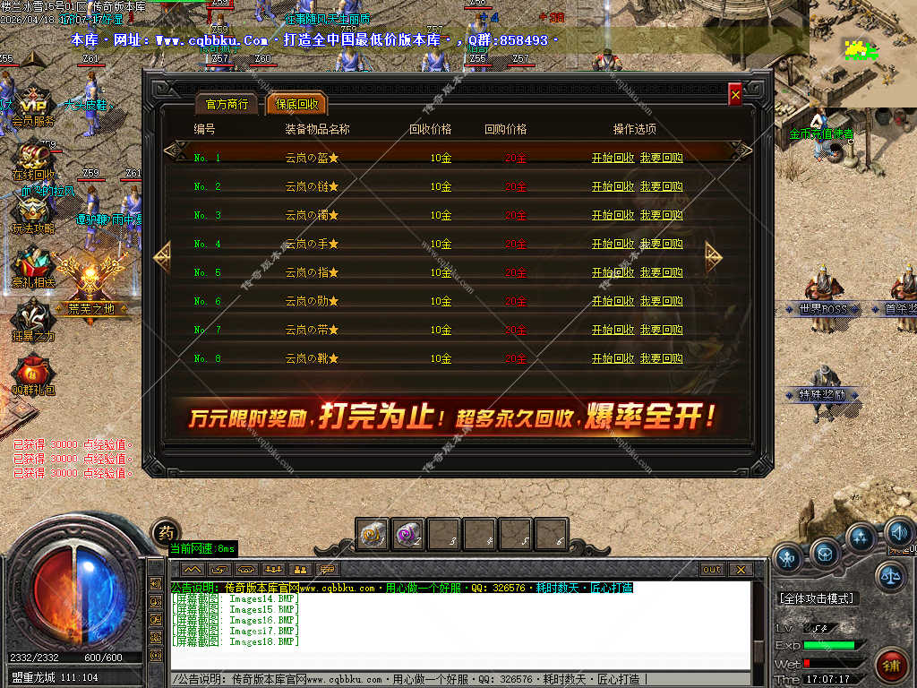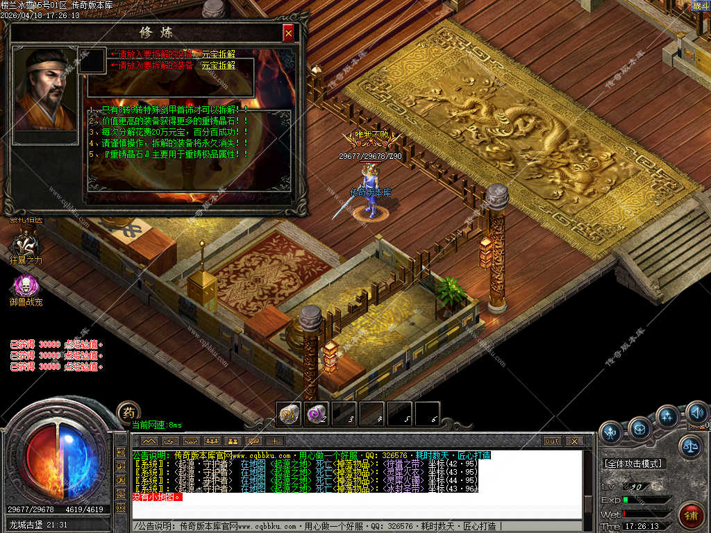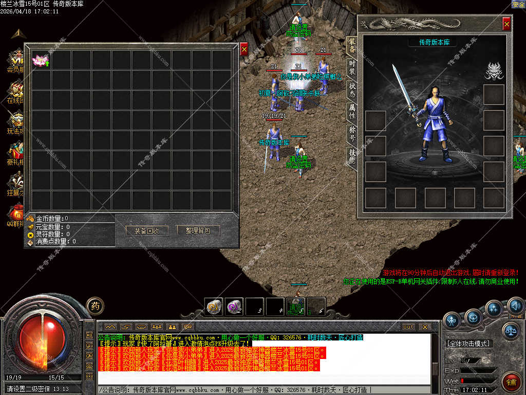 传奇版本库_传奇服务端_传奇版本下载_cqbbku.com » 02-134独家楼兰冰雪神器单职业高爆激情智能假人陪玩服务端