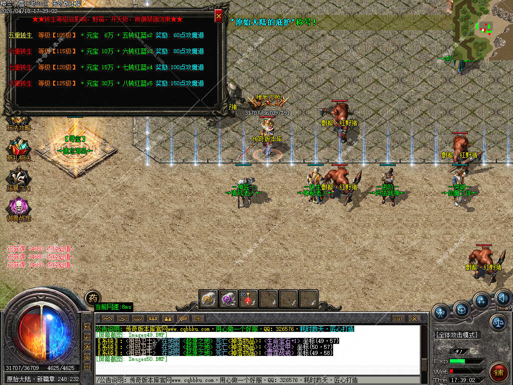 前期推荐在新手专属地图挂机升级,积累基础装备与元宝,快速提升转生等级。
