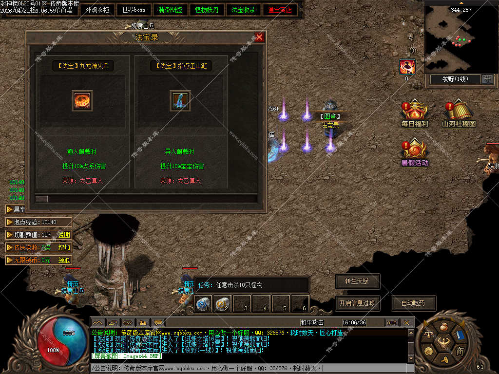 装备方面,精英怪掉卓越装备,BOSS会掉套装和单件;人形怪能掉专属法宝,收集起来能增加特殊属性。