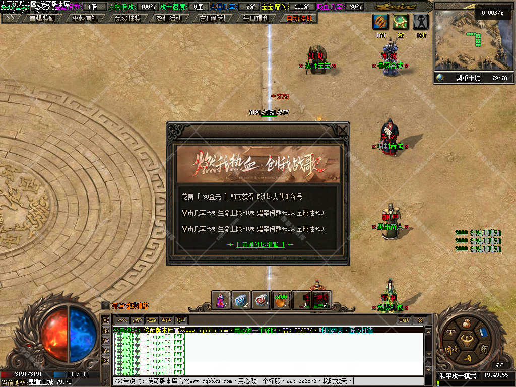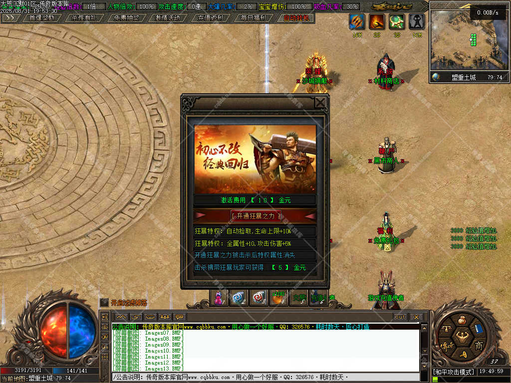 传奇版本库,传奇版本下载,传奇单机资源站,热门传奇版本库,热门传奇私服版本推荐-最全最新游戏版本下载基地 » 01-731独家大荒沉默微变三职业客户端-自动回收-职业进阶-会员赞助