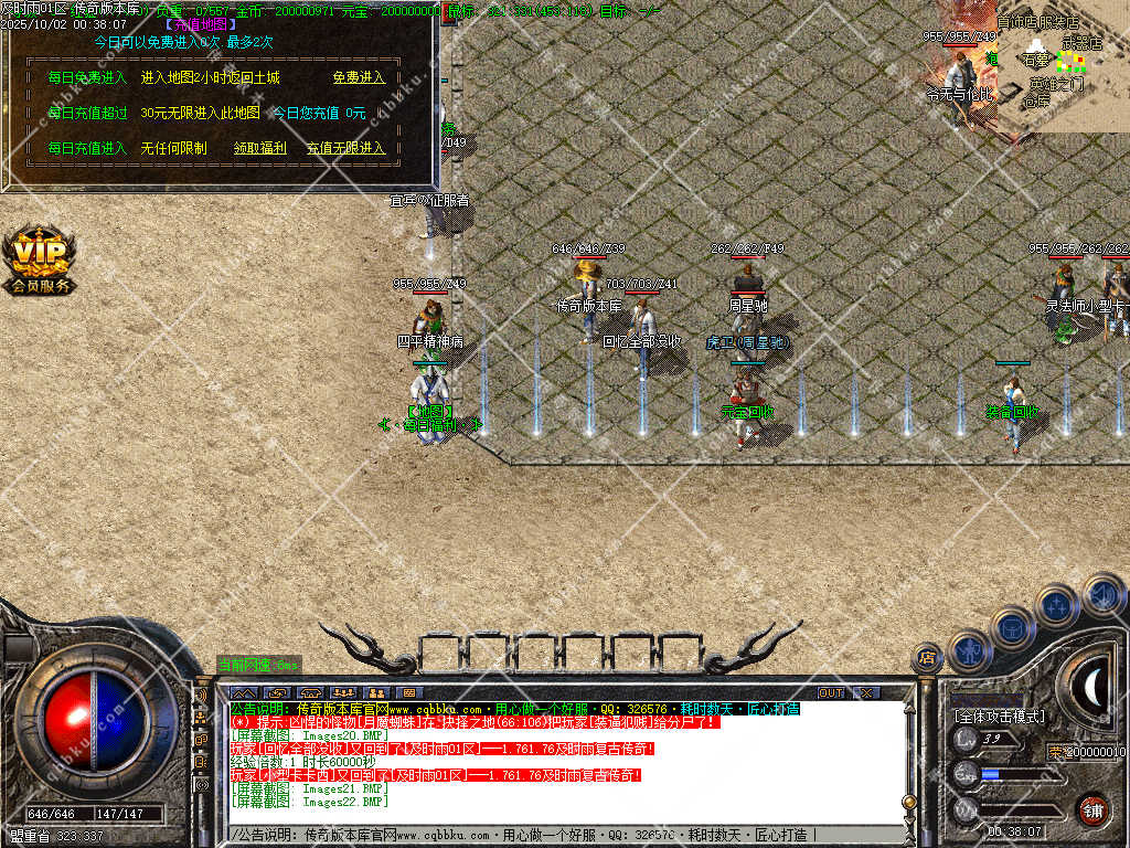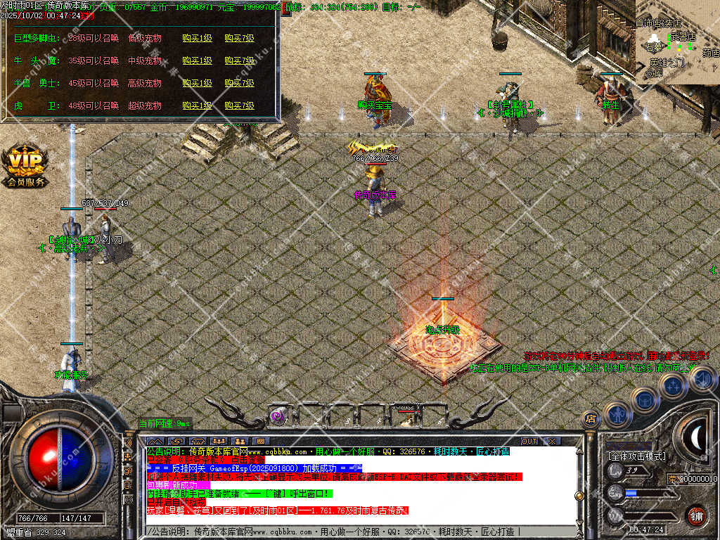 公告:本服大BOSS为2-3小时刷新一次,小BOSS为半小时刷新一次。法师玩家可以到未知暗殿召唤巨多、900半兽勇士。