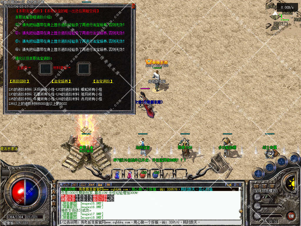 法宝(斗笠)=上线领取QQ群礼包码就送,进阶的材料请看土城左下角本职法宝NPC说明。