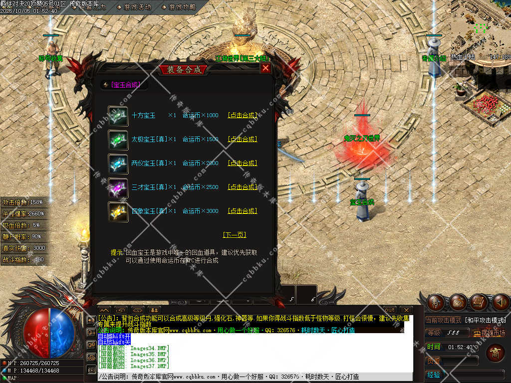 3.宝石系统【增强手套.镶嵌】每颗初级宝石可以增强无限手套1000点伤害10颗同类型的宝石能合成更高级的宝石.可以镶嵌在专属装备上
