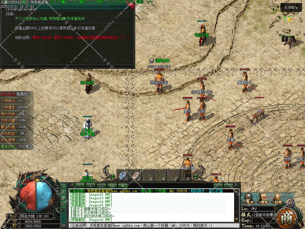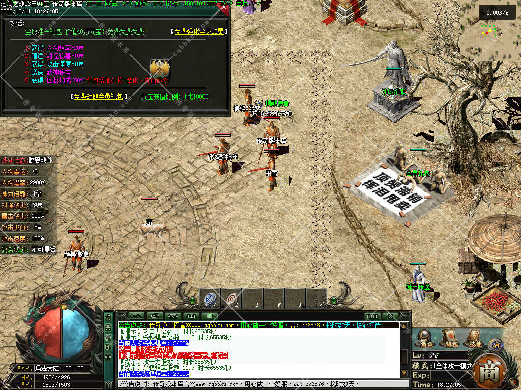 官方承诺:本服属于长久散人服,公平公正,经典耐玩,无任何充值地图所有地图全部免费,装备全爆无隐藏,爆率永久开放!