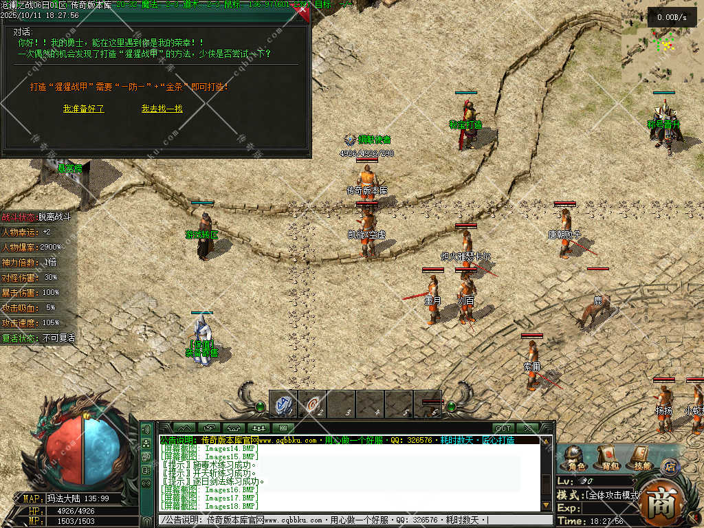 游戏提示:越级打怪只会降低发育速度,各种装备对打怪相辅相成,PK靠装备搭配及手法操作!