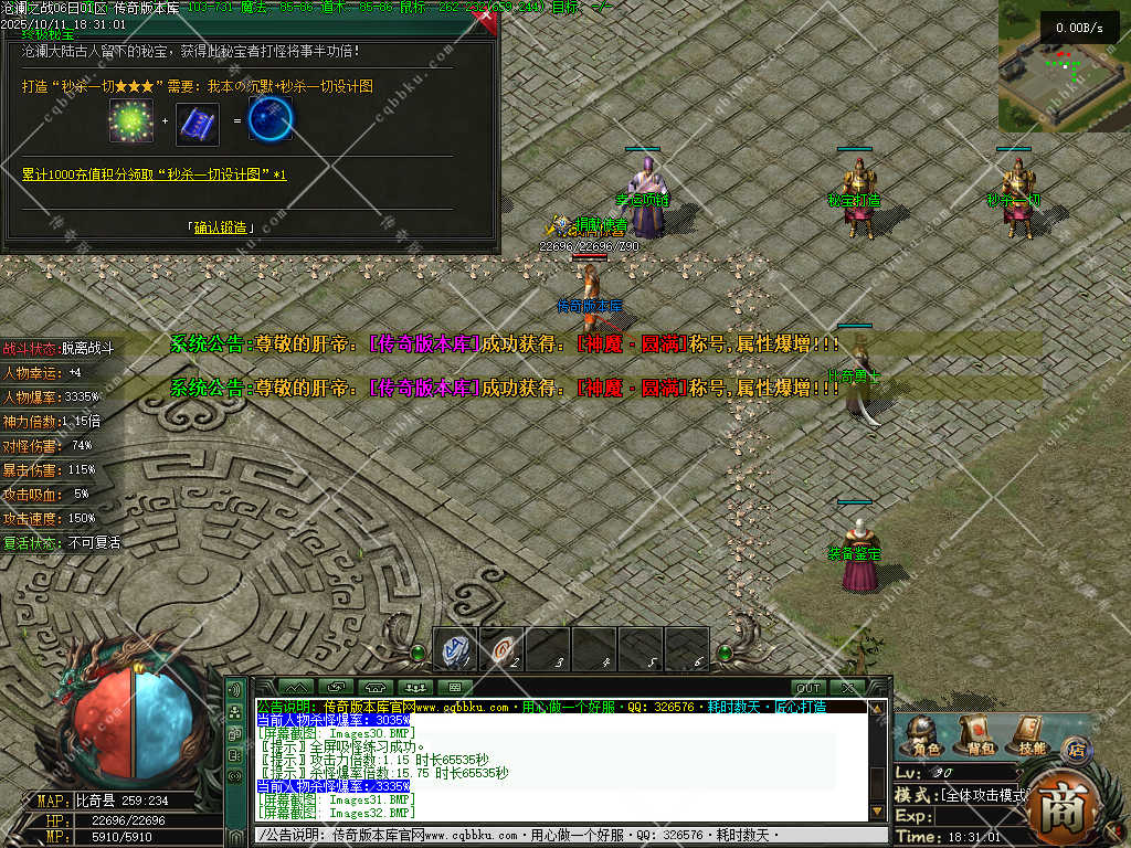 传奇版本库,传奇版本下载,传奇单机资源站,热门传奇版本库,热门传奇私服版本推荐-最全最新游戏版本下载基地 » 01-802独家沧澜之战高爆版沉默专属单职业客户端-带假人-光柱-自动回收-大背包